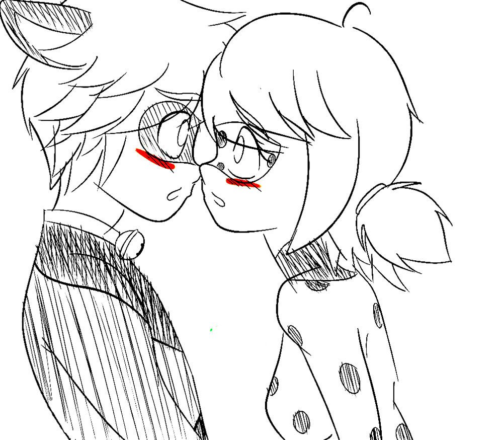 Леди баг и супер кот для срисовки поцелуй