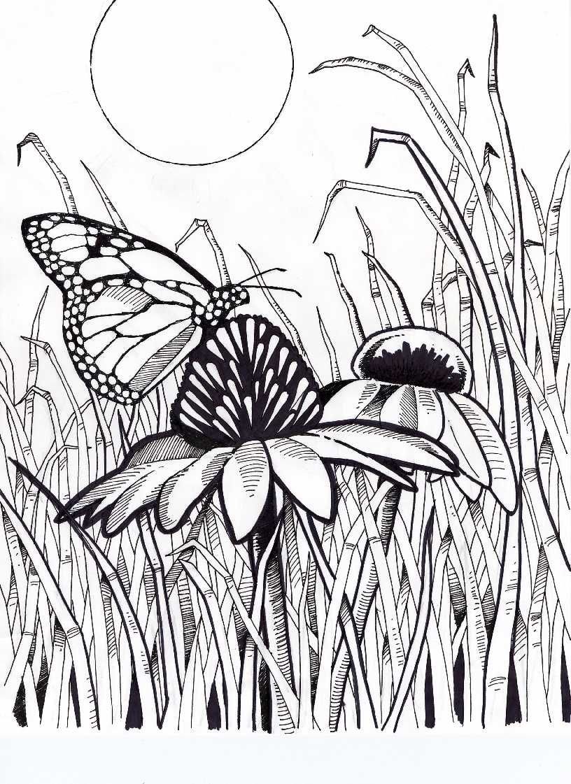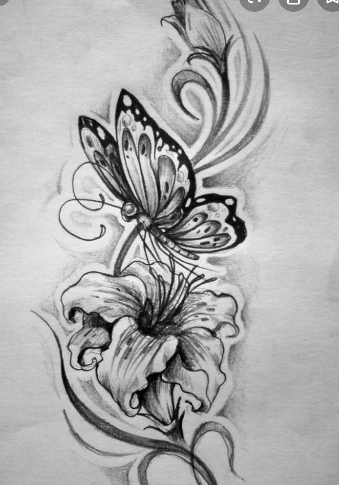 Рисунки для срисовки цветы бабочки