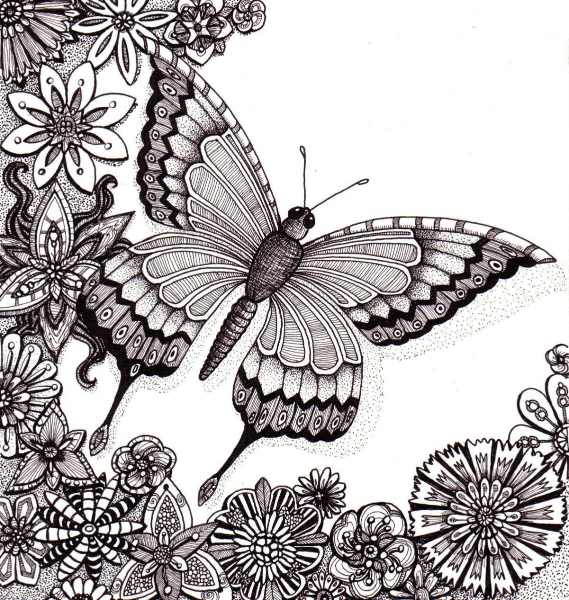 Раскраска антистресс орнамент бабочка цветы