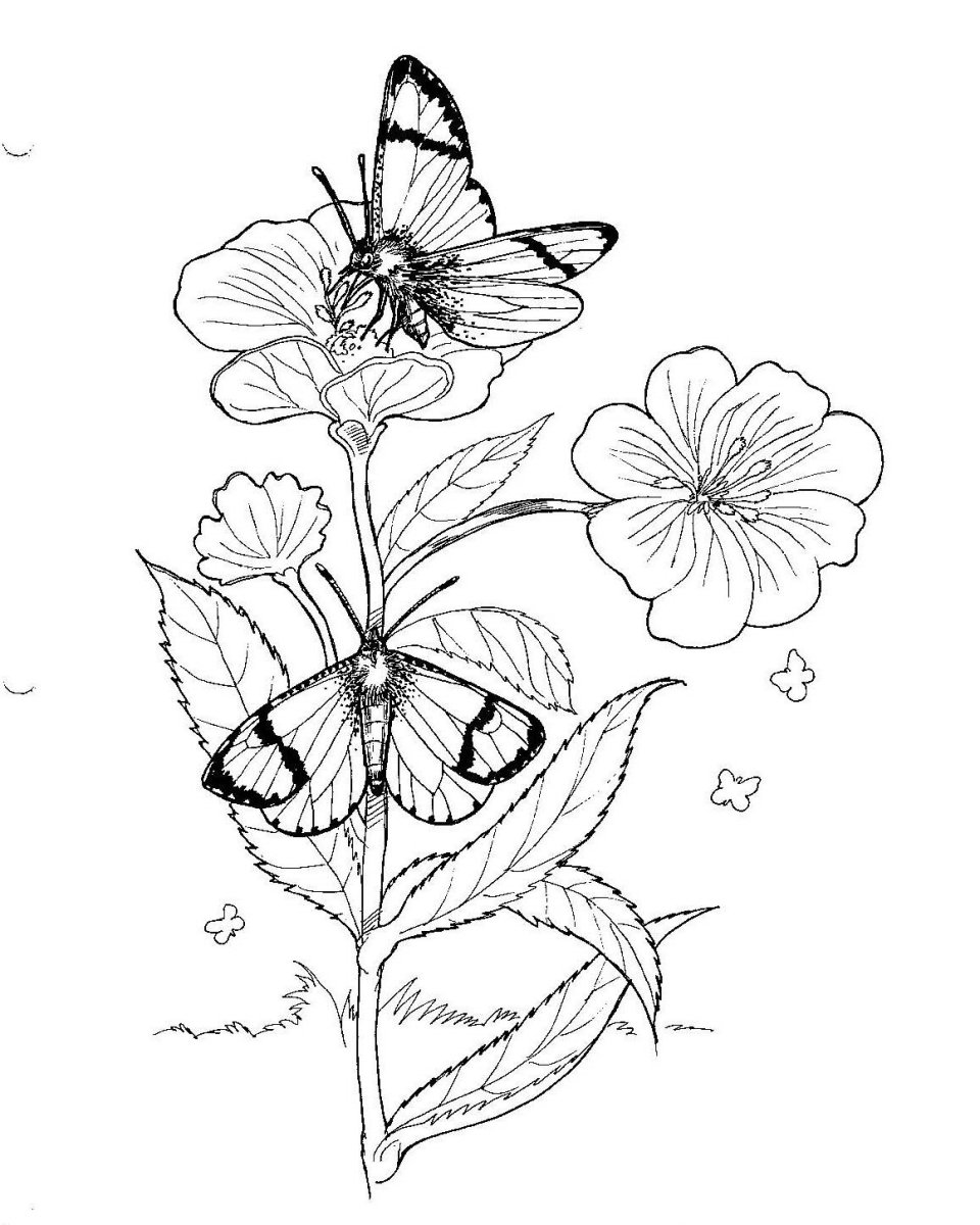 Раскраски цветов и бабочек