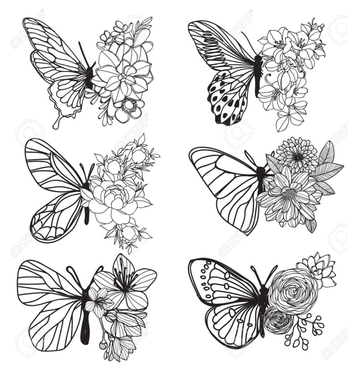 Эскизы бабочек и цветов