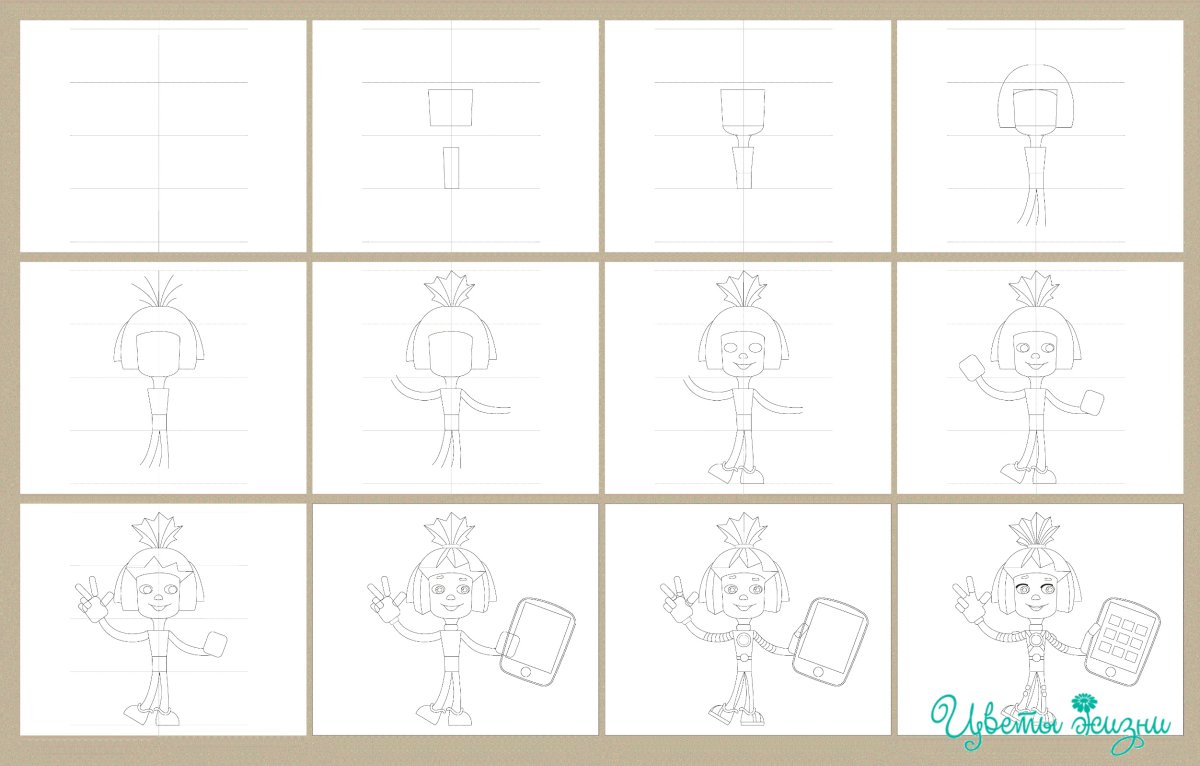 Как нарисовать Фиксиков поэтапно карандашом для начинающих детей