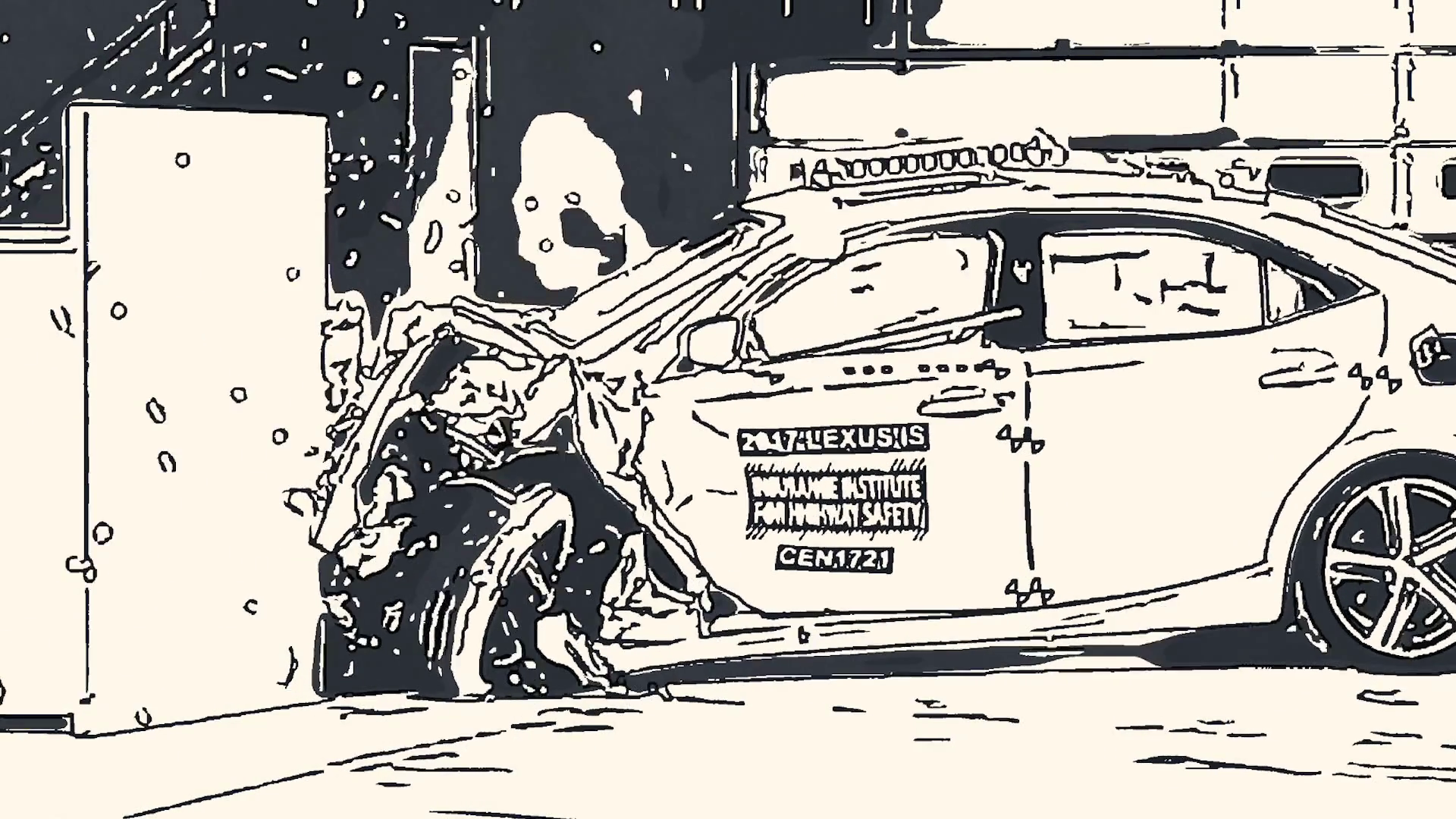 Автомобиль врезается в стену рисунок