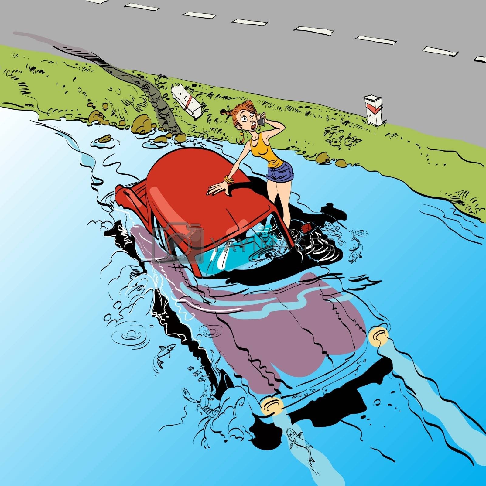 Авто тонет рисунок