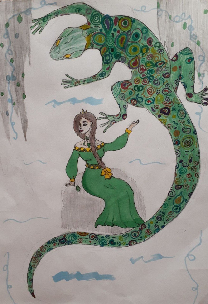 Хозяйка медной горы ящерица рисунок