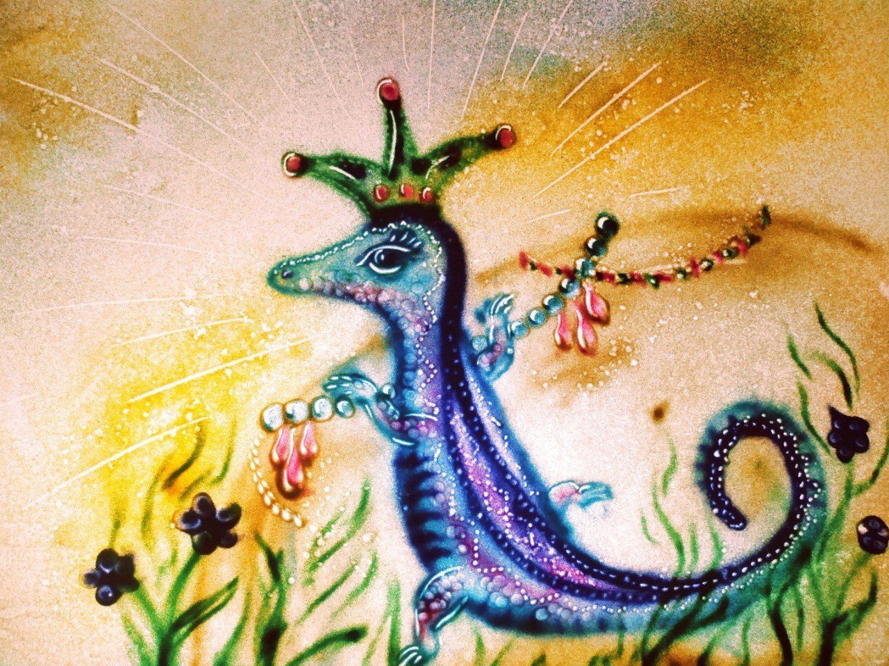 Ящерица с короной рисунок