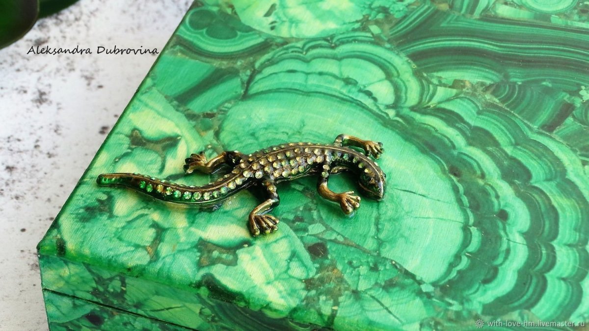 Малахитовая шкатулка с ящерицей