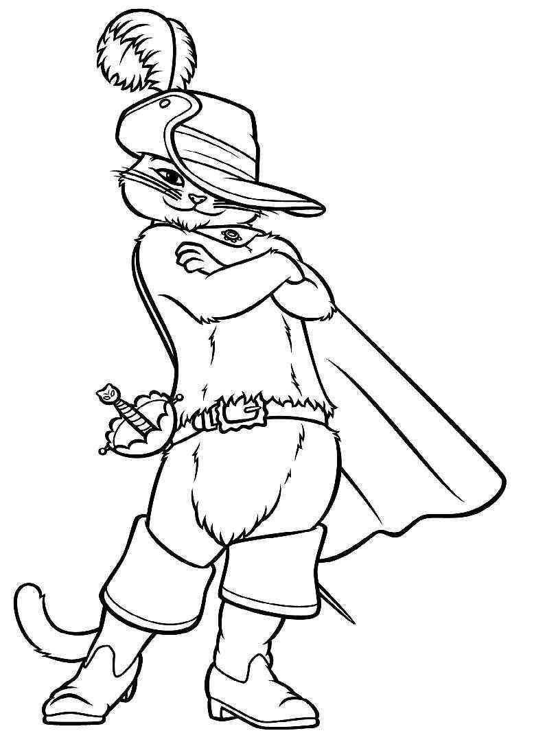 Раскраски из мультфильма кот в сапогах