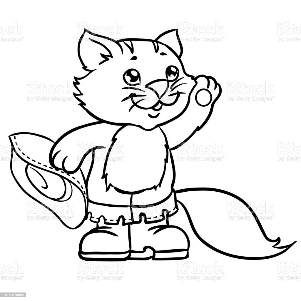 Кот в сапогах контурный рисунок