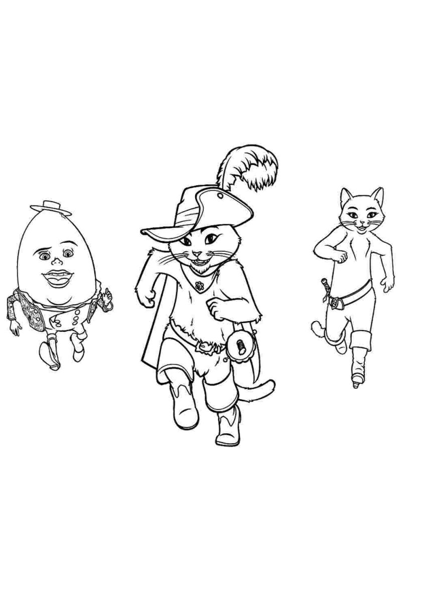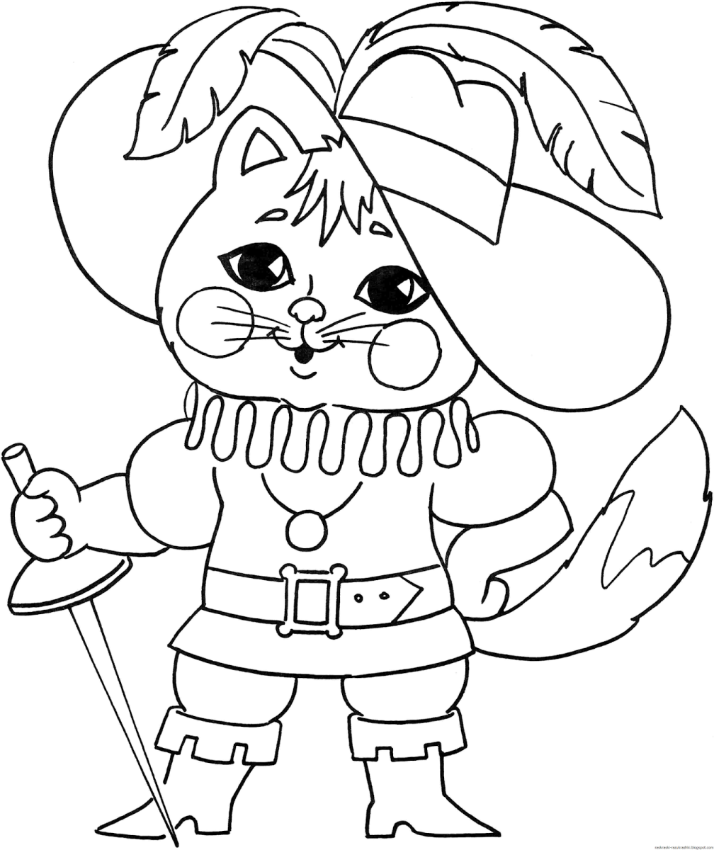 Сказочные герои кот в сапогах раскраски