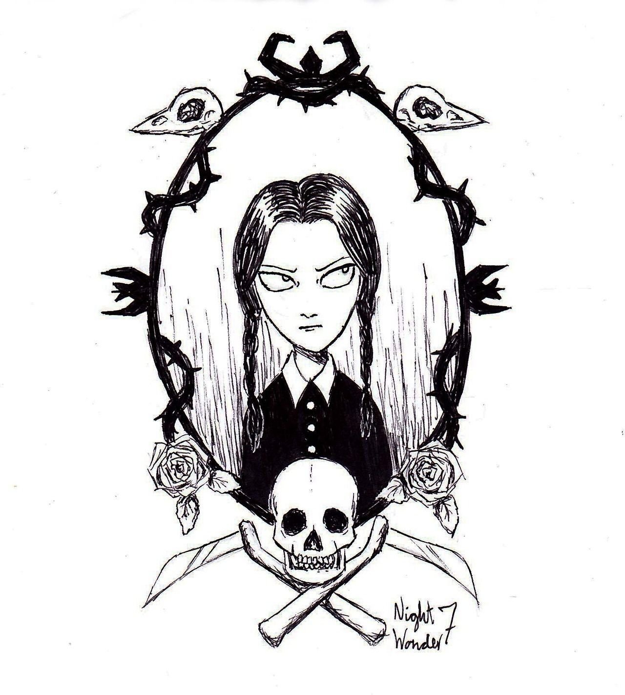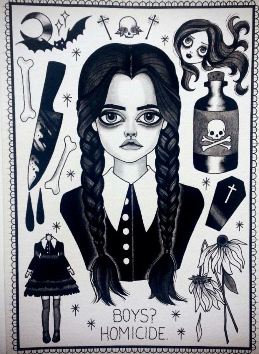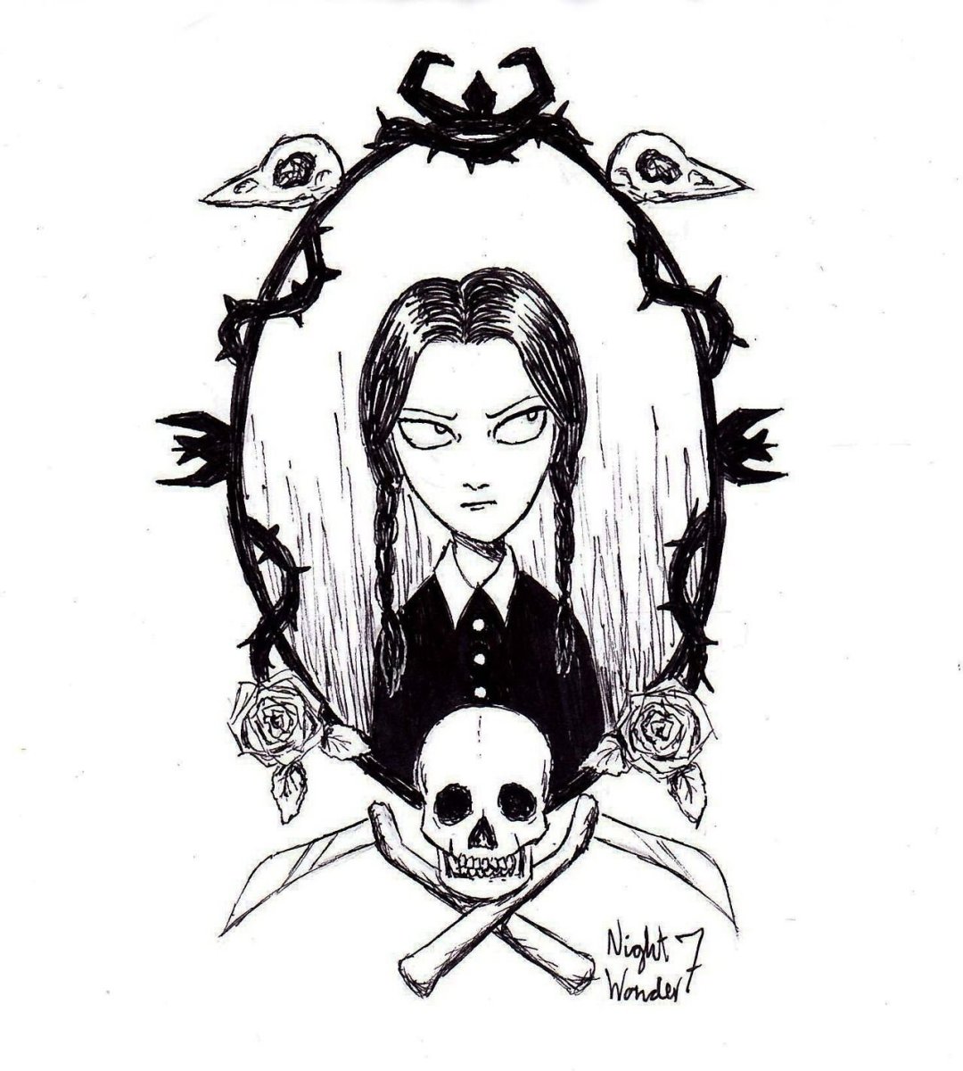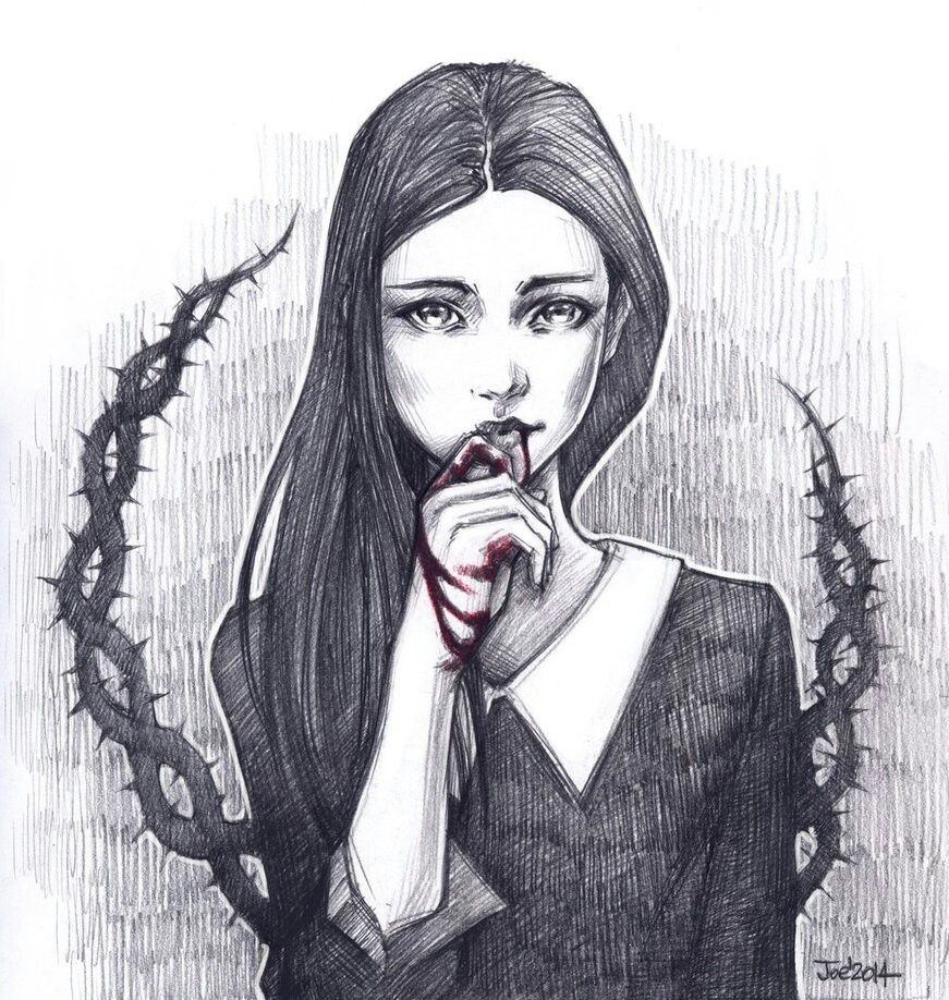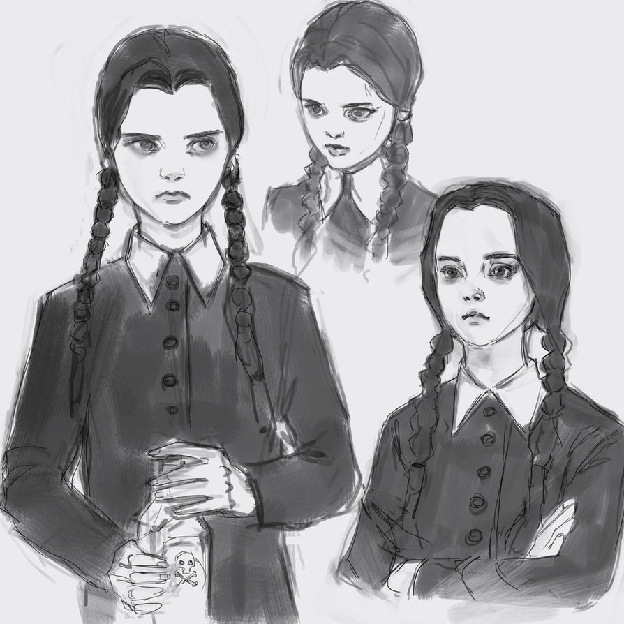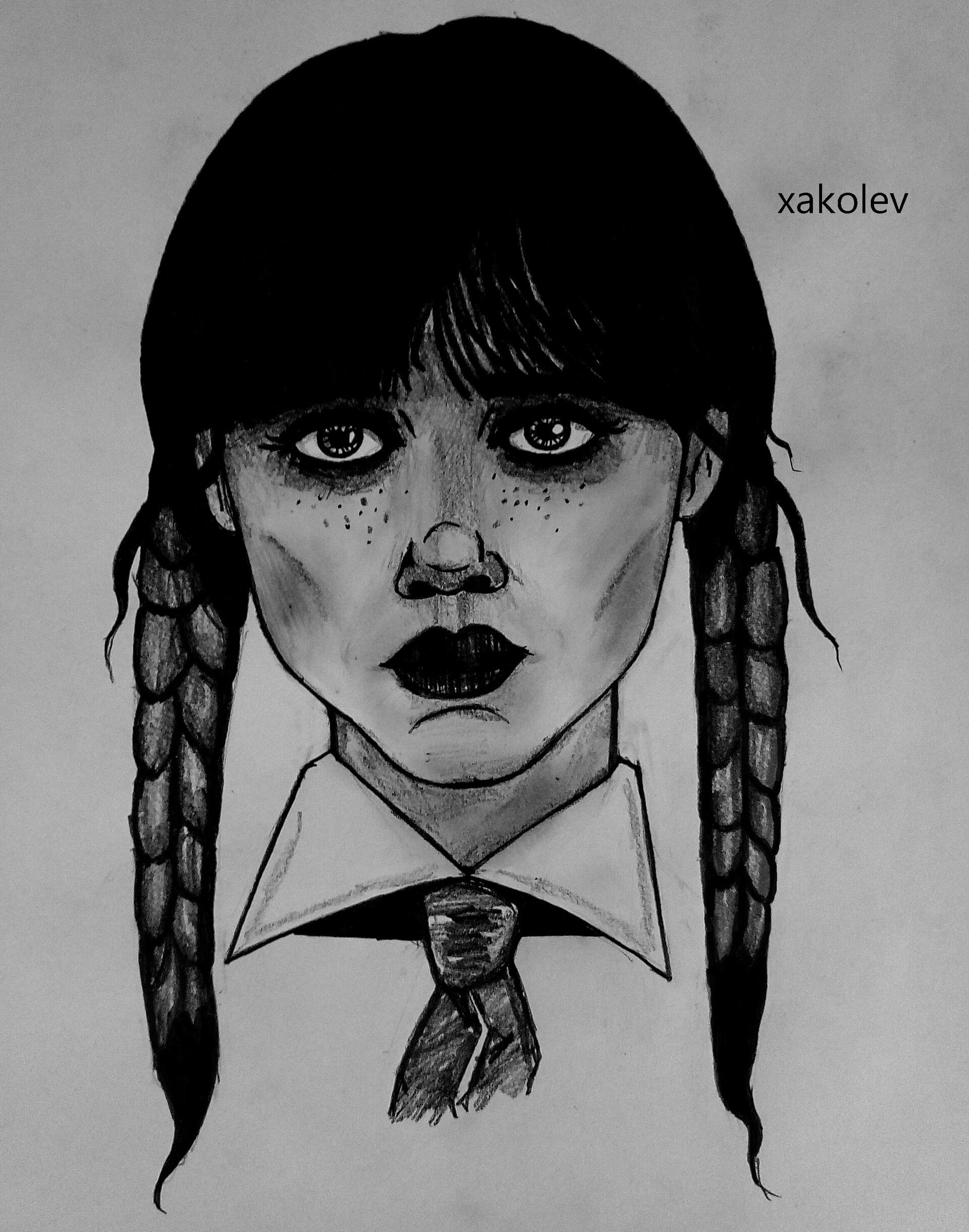 Уэнсдей Аддамс рисунок карандашом новом фильме Живая