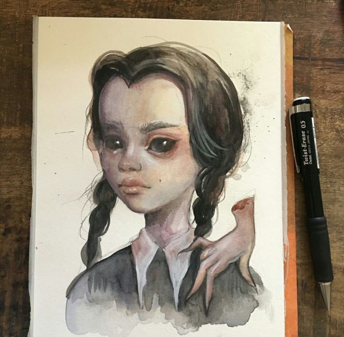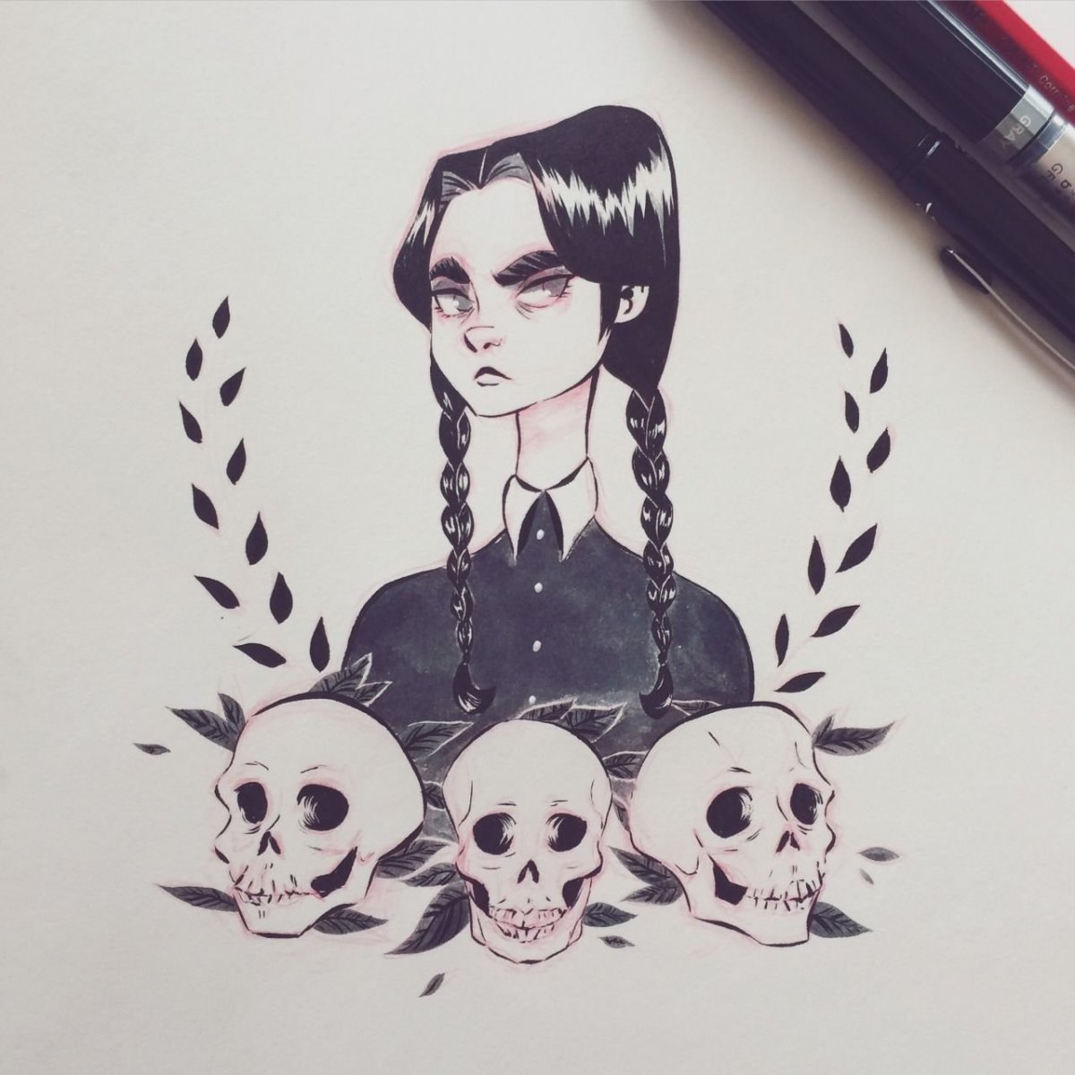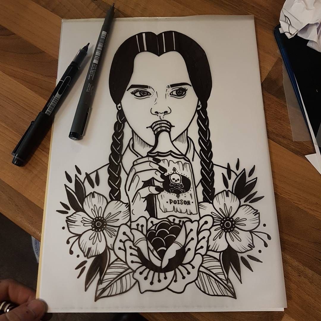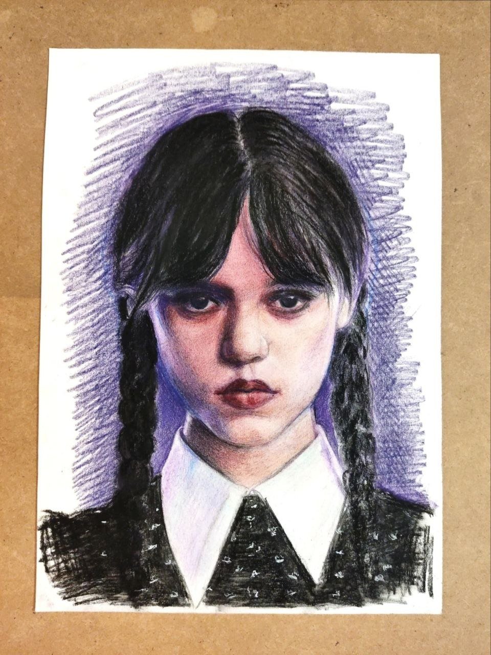 Уэнсдей Аддамс рисунок карандашом новом фильме Живая