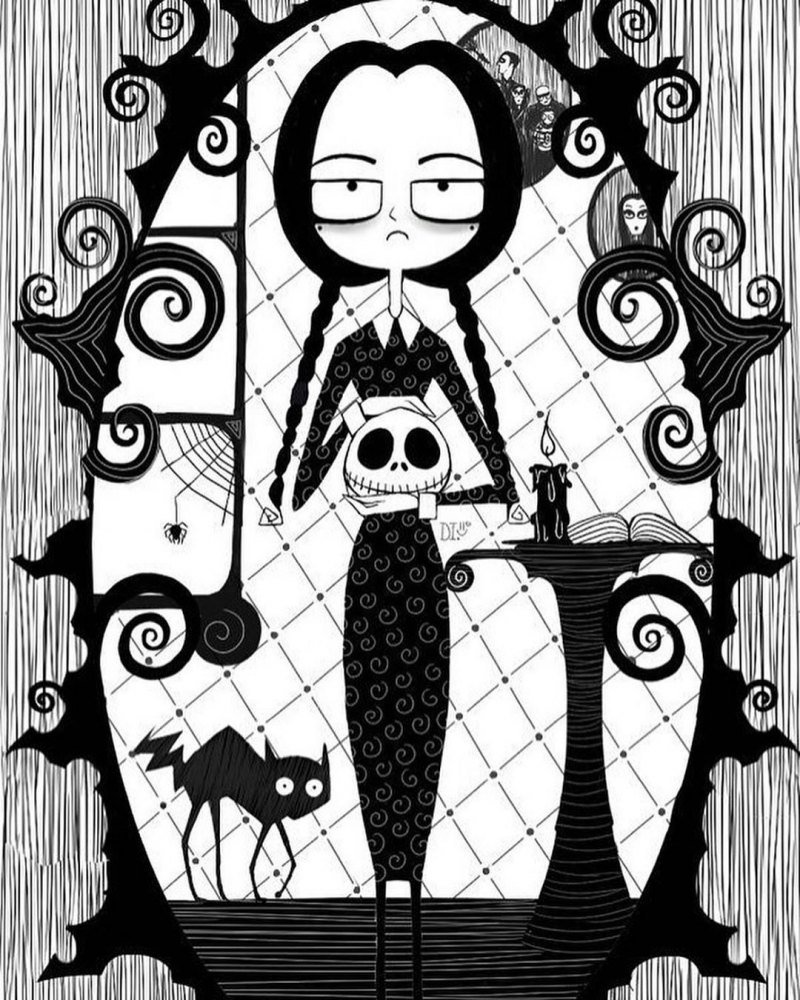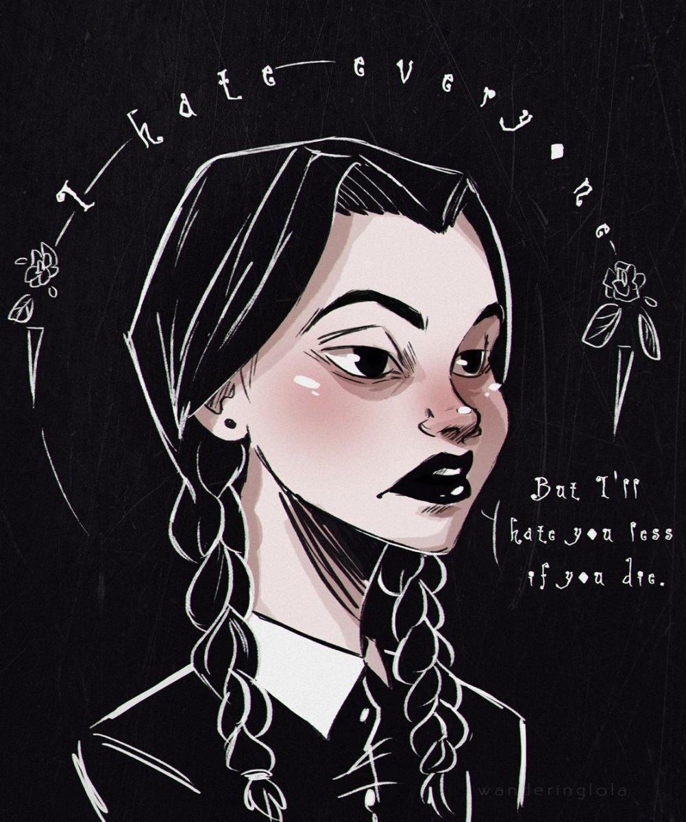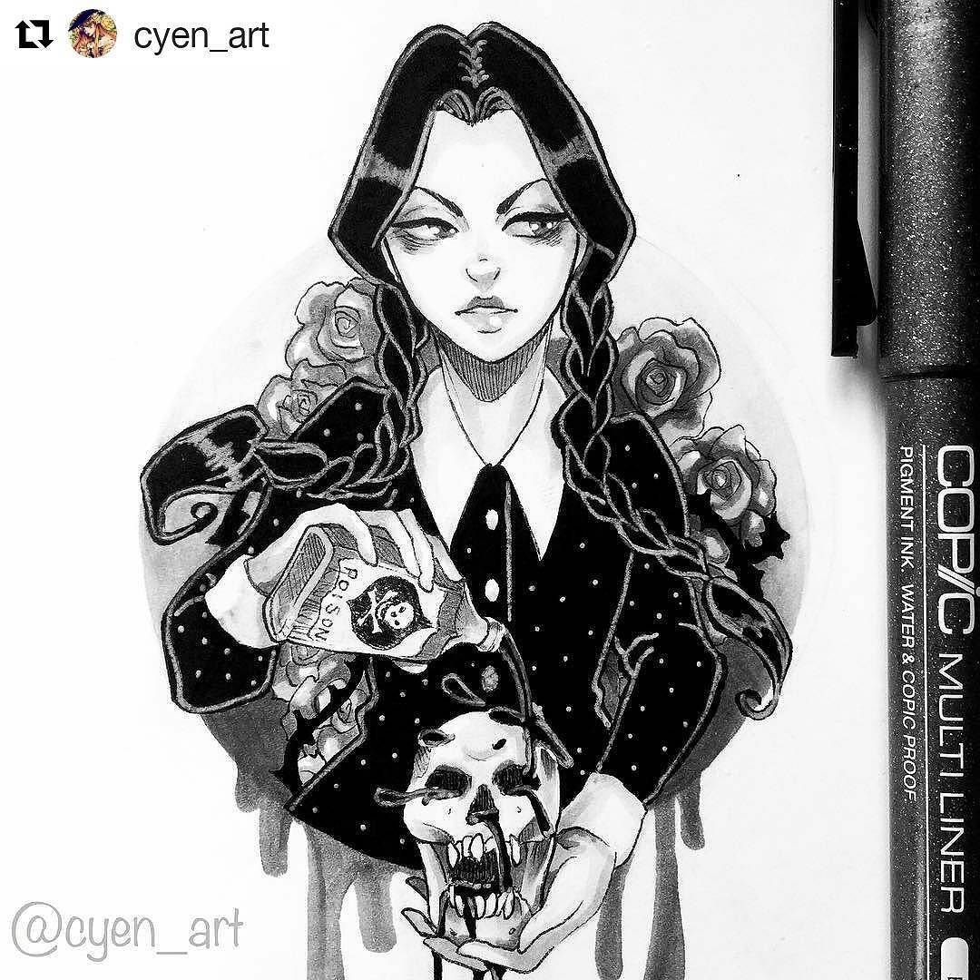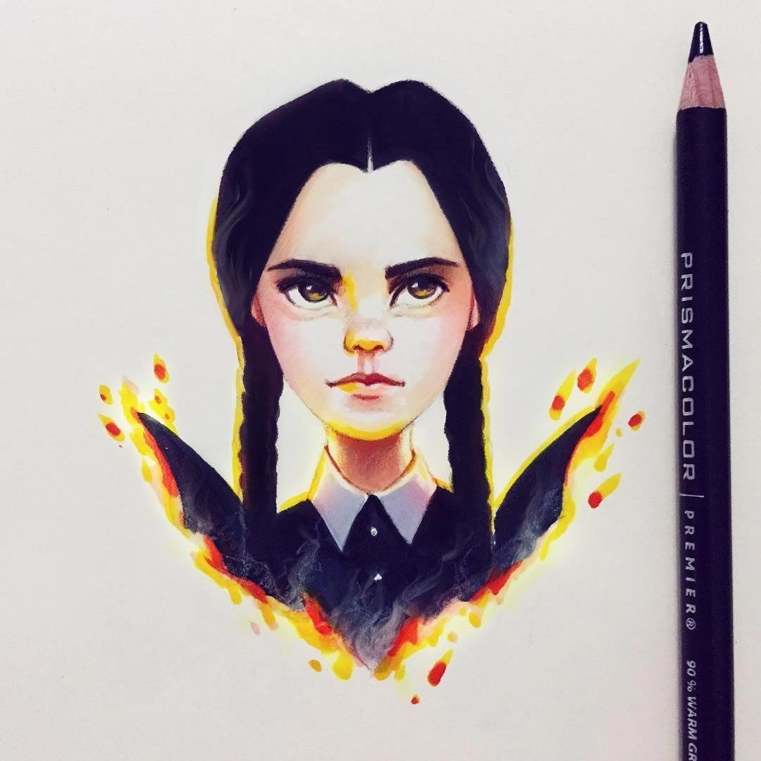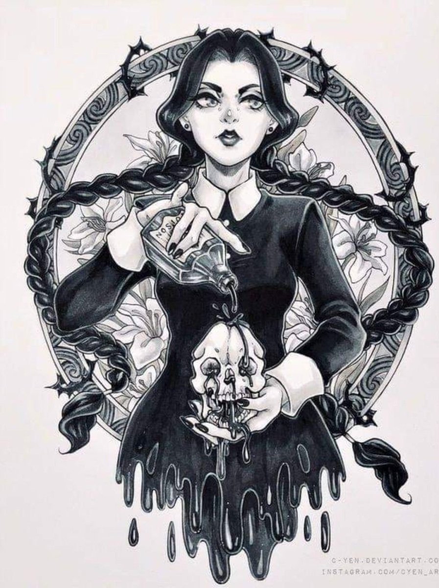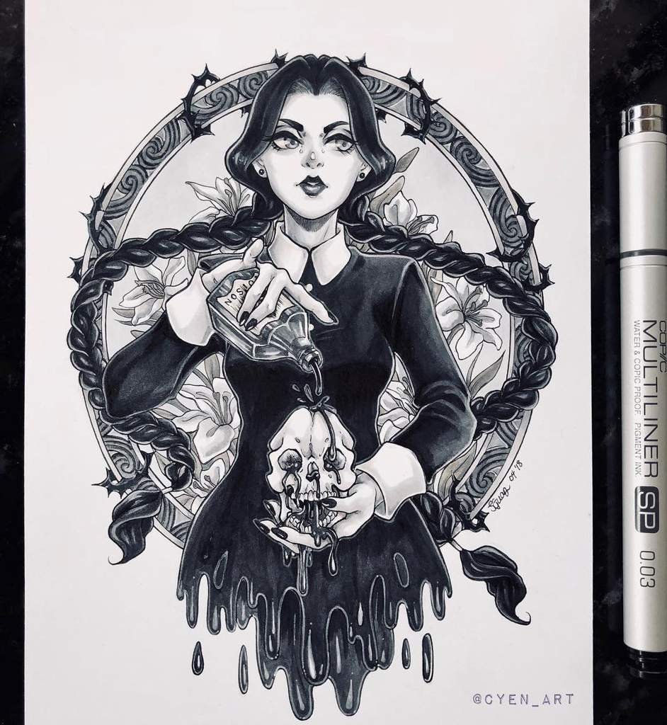 Уэнсдей Аддамс рисунок карандашом новом фильме Живая