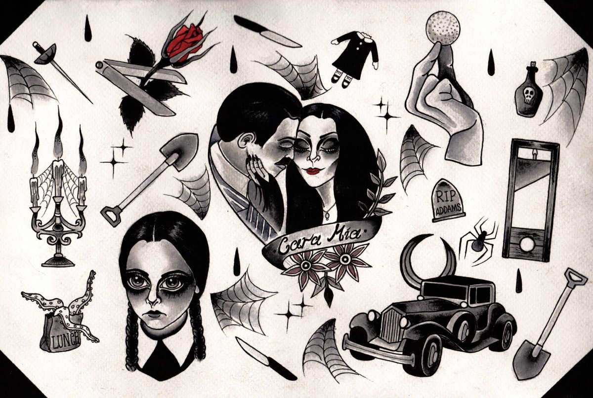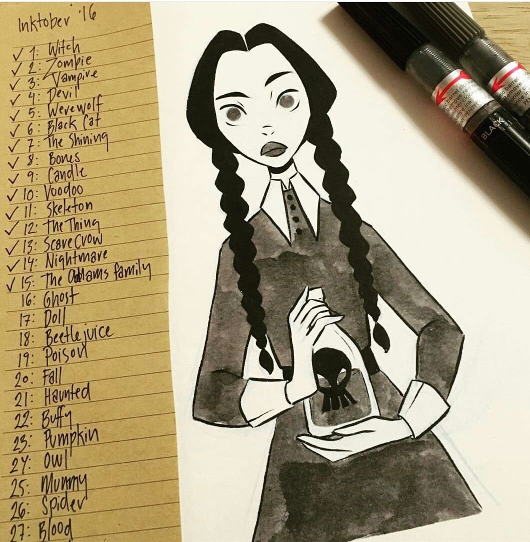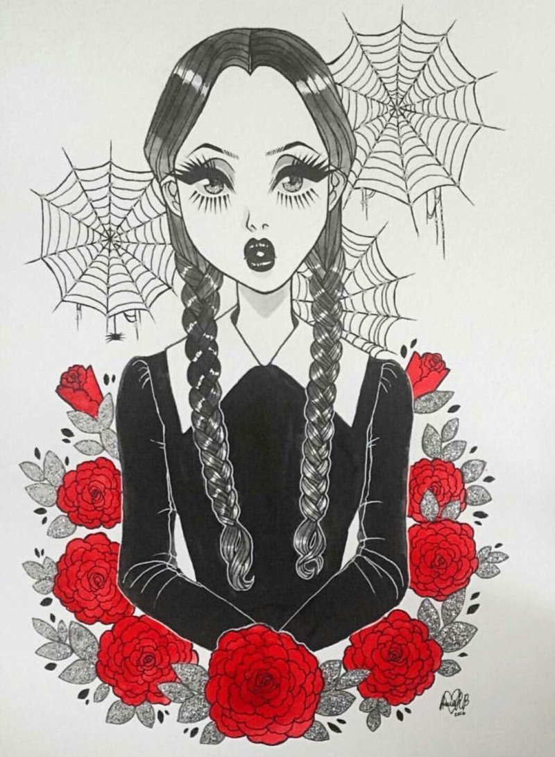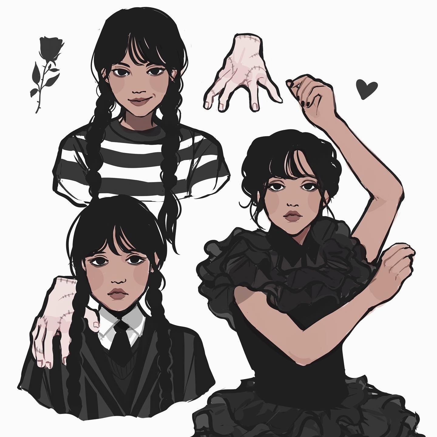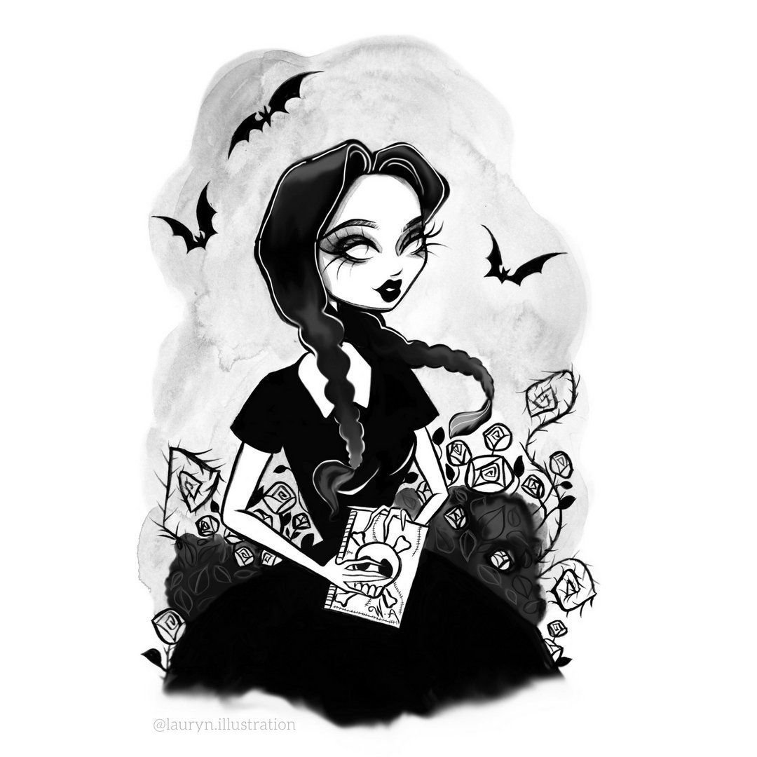 Уэнсдей Аддамс рисунок карандашом новом фильме Живая