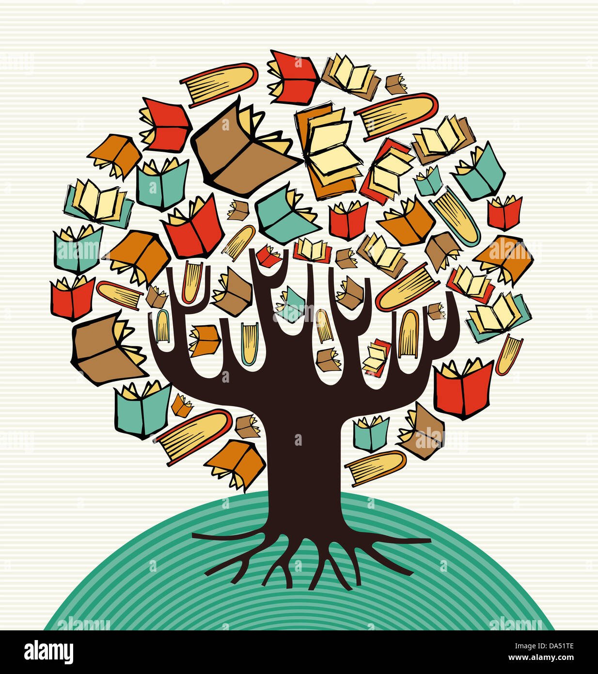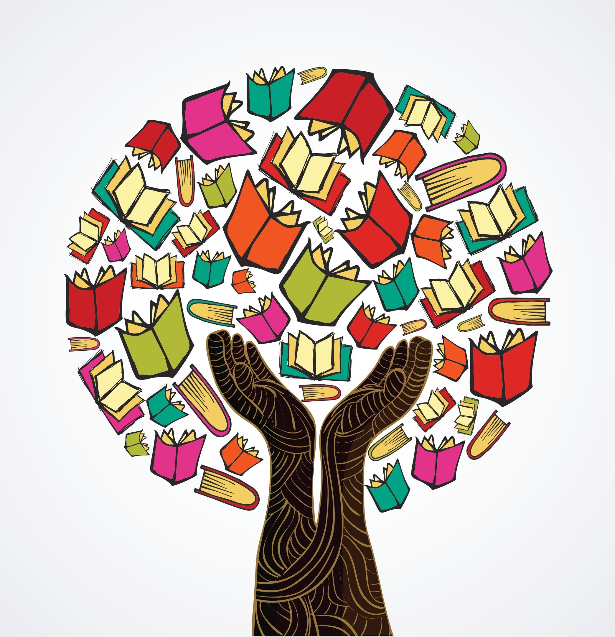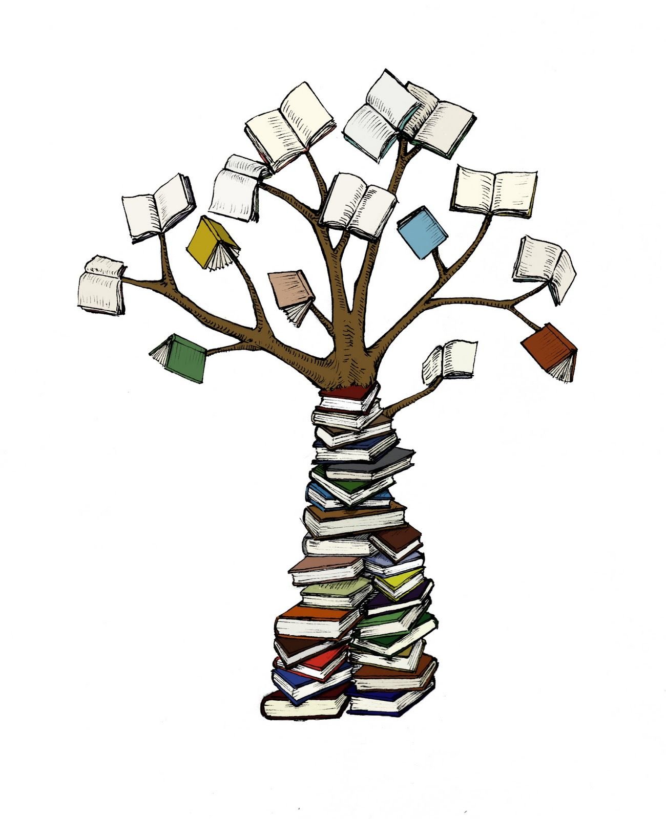Рисованное дерево знаний на книгах