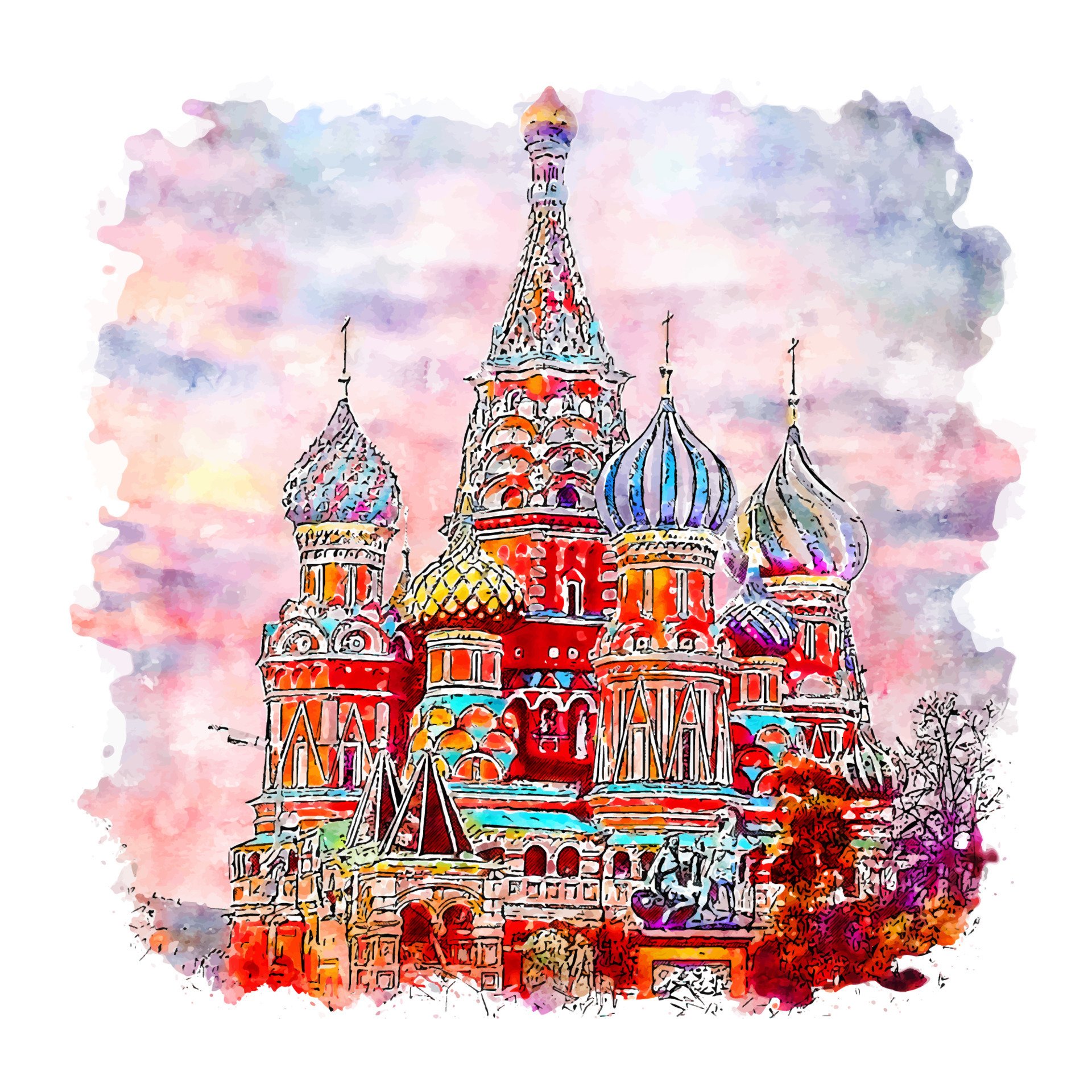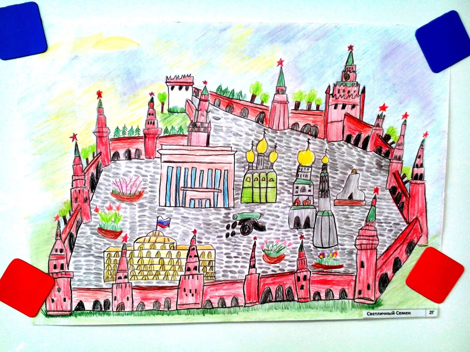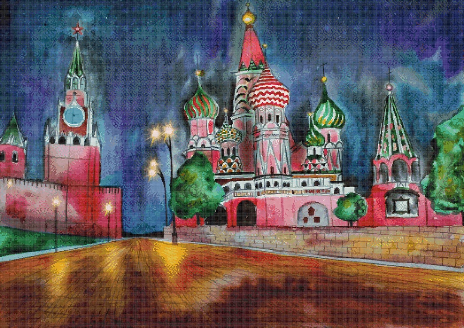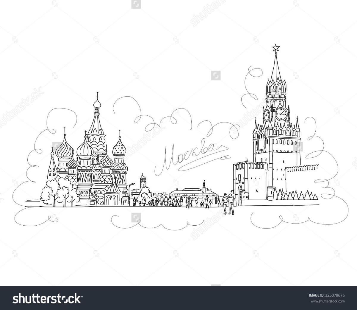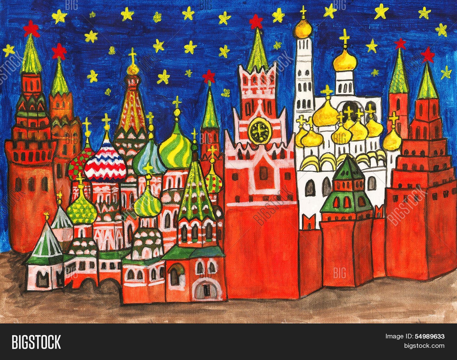 Рисунок Московский Кремль, красная площадь, собор Василия Блаженного