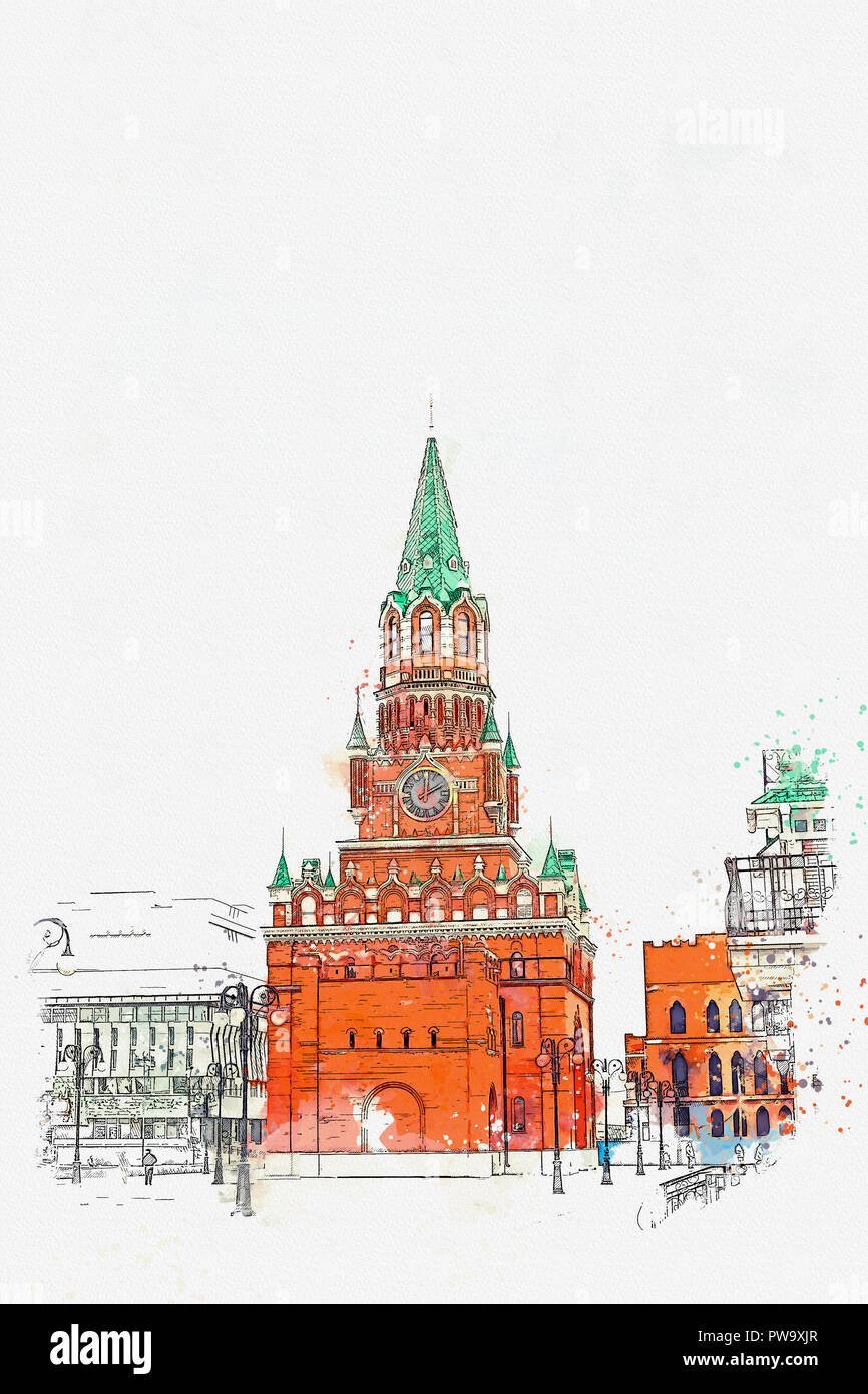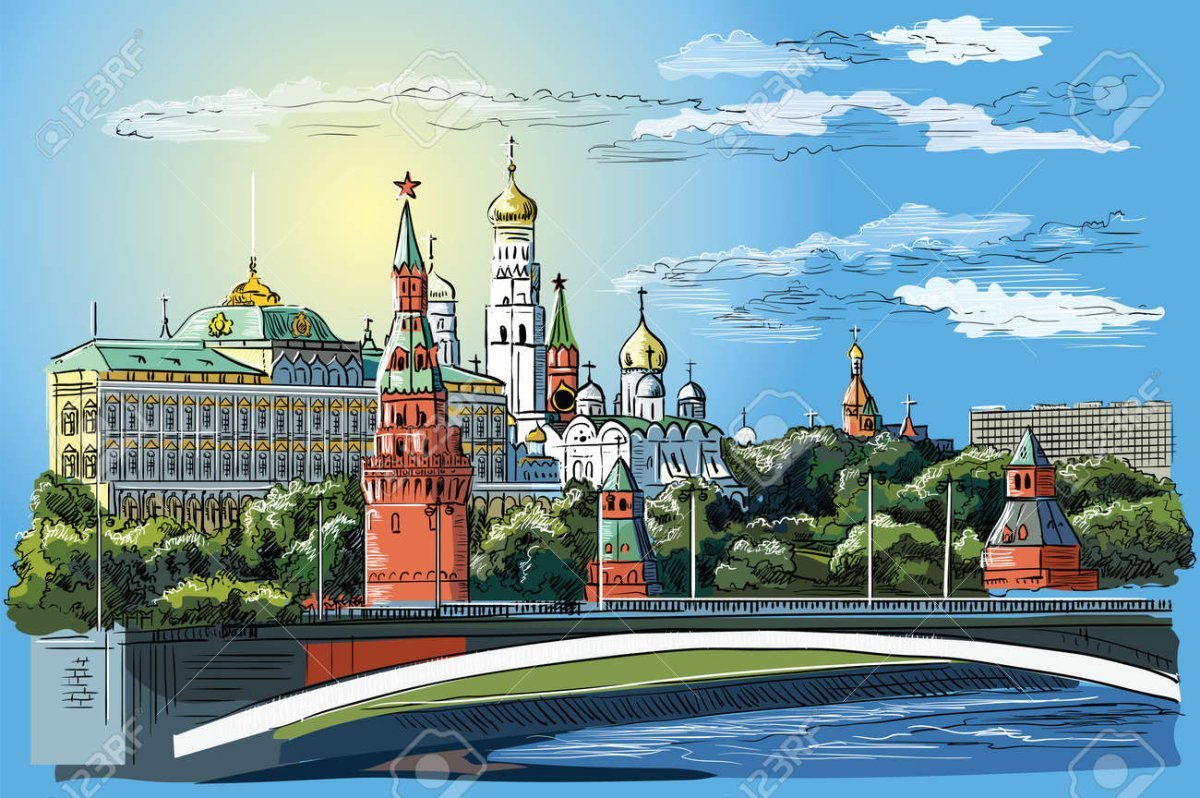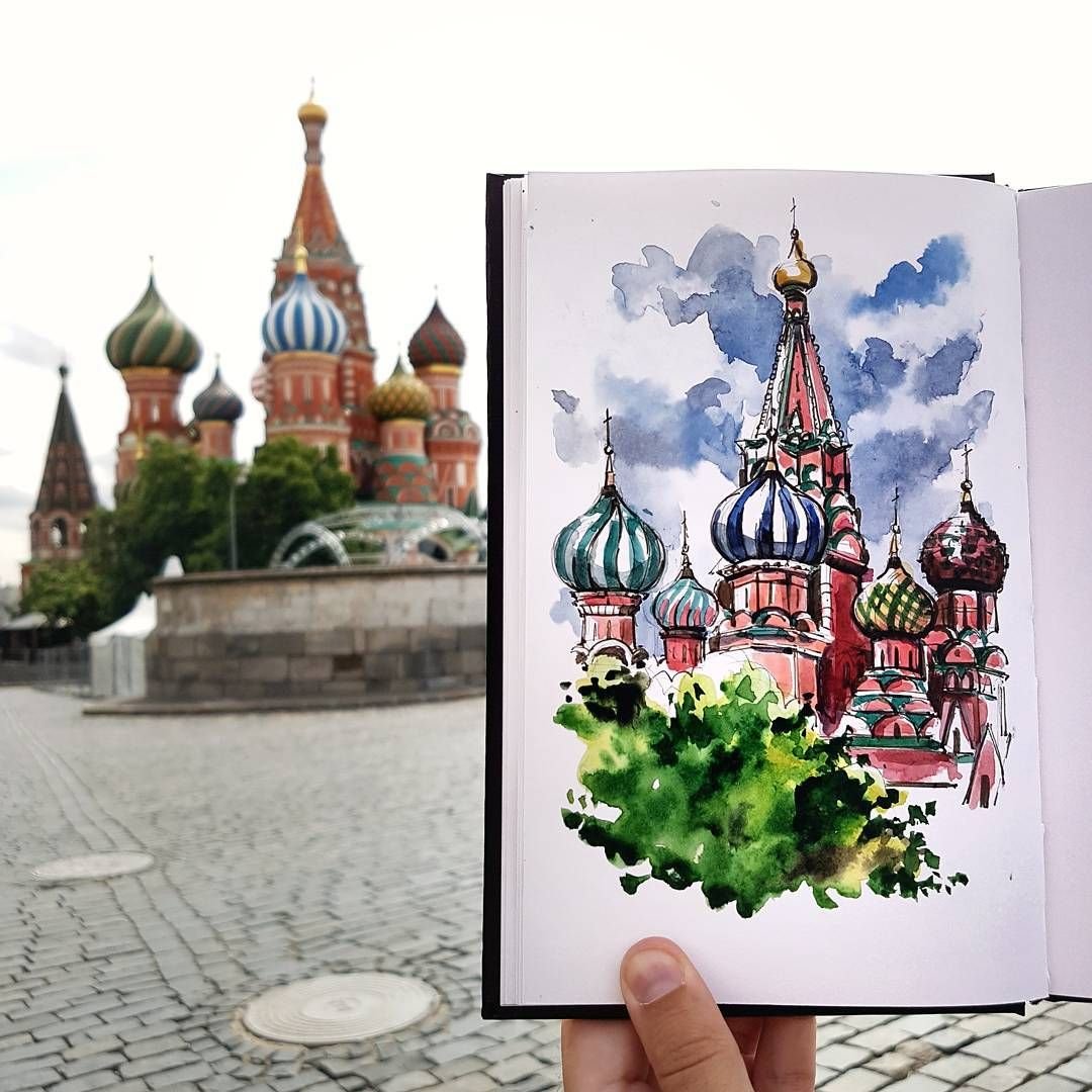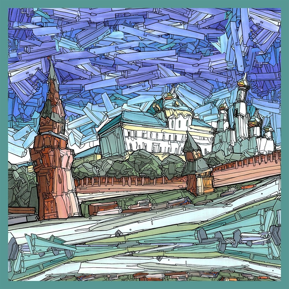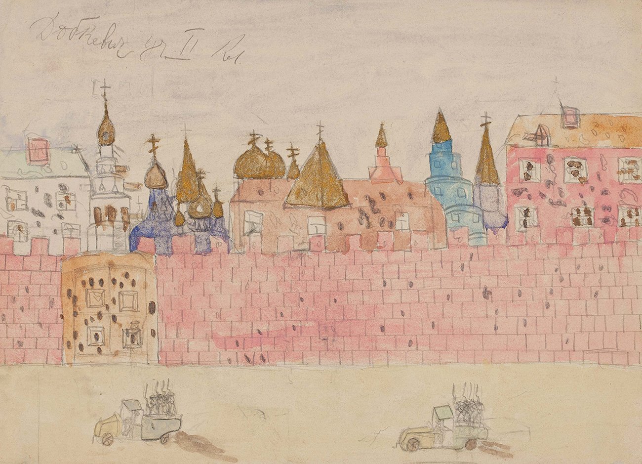 Рисунок Московский Кремль, красная площадь, собор Василия Блаженного
