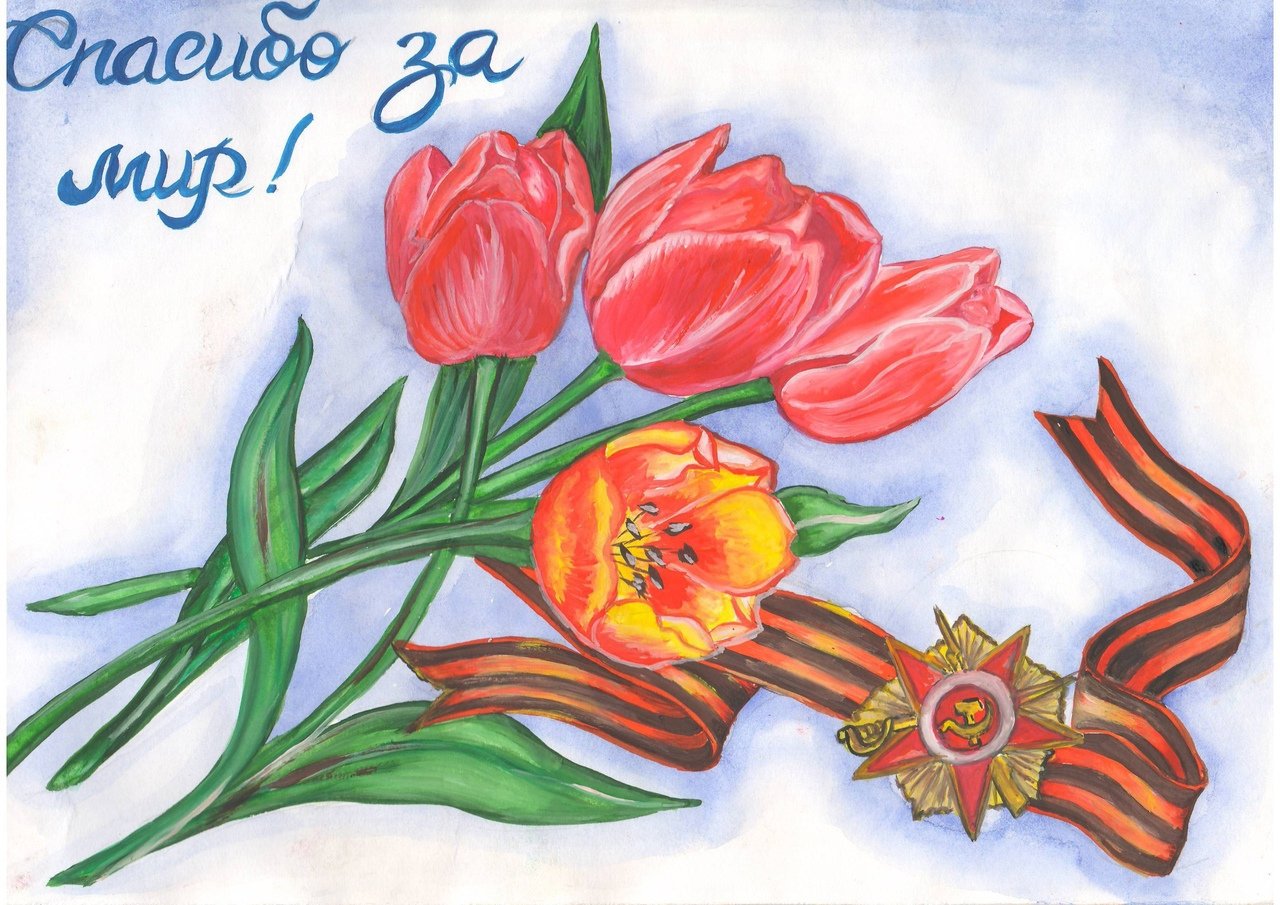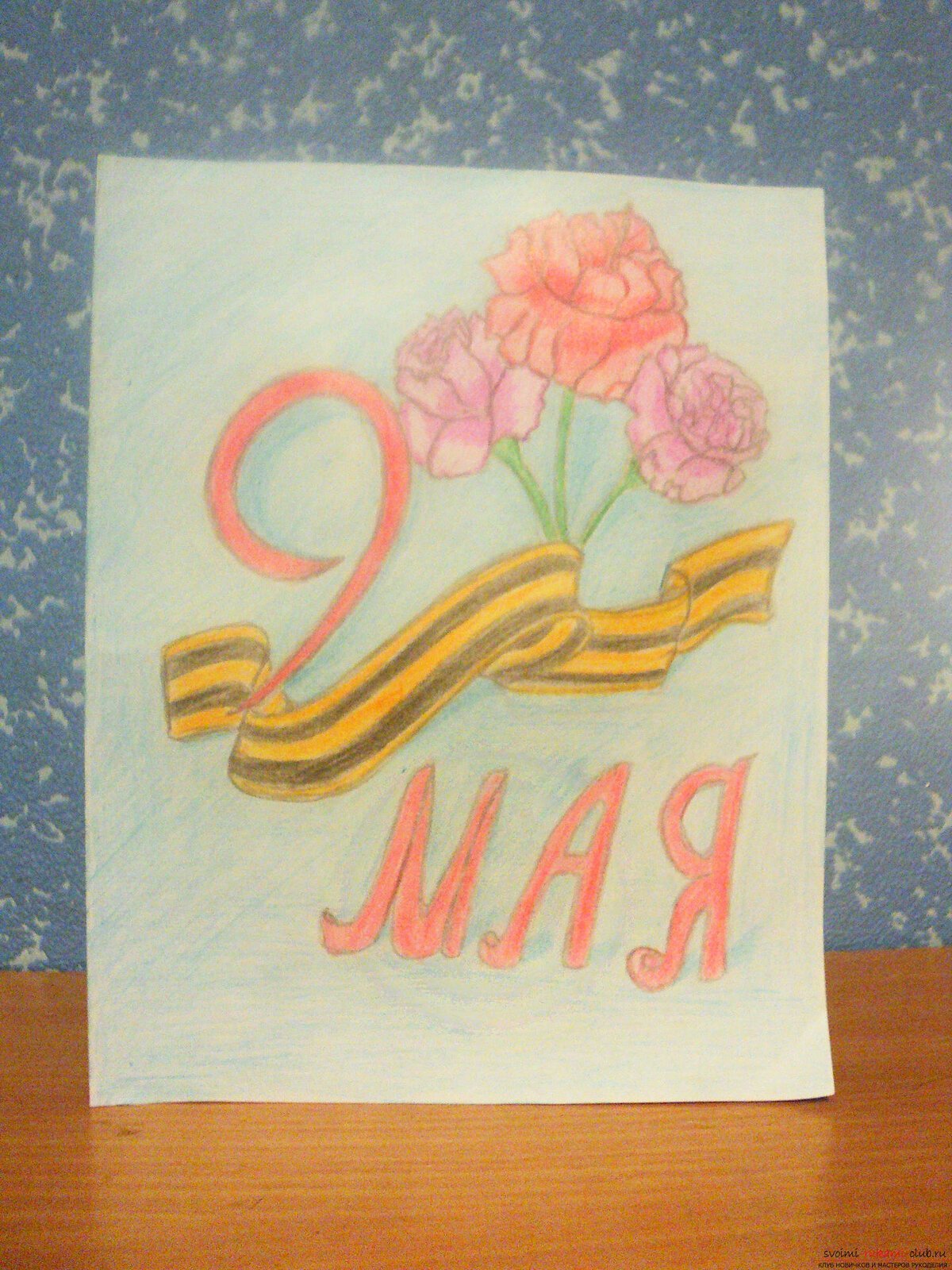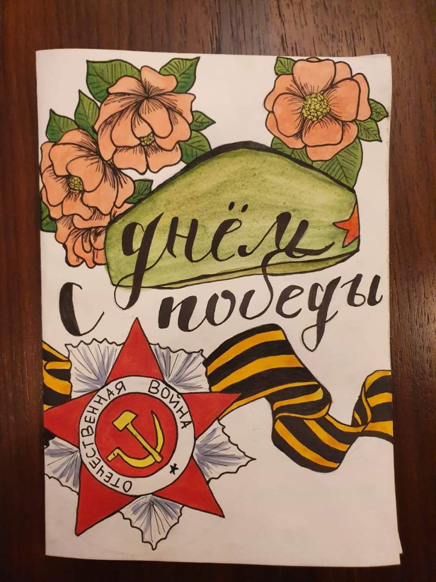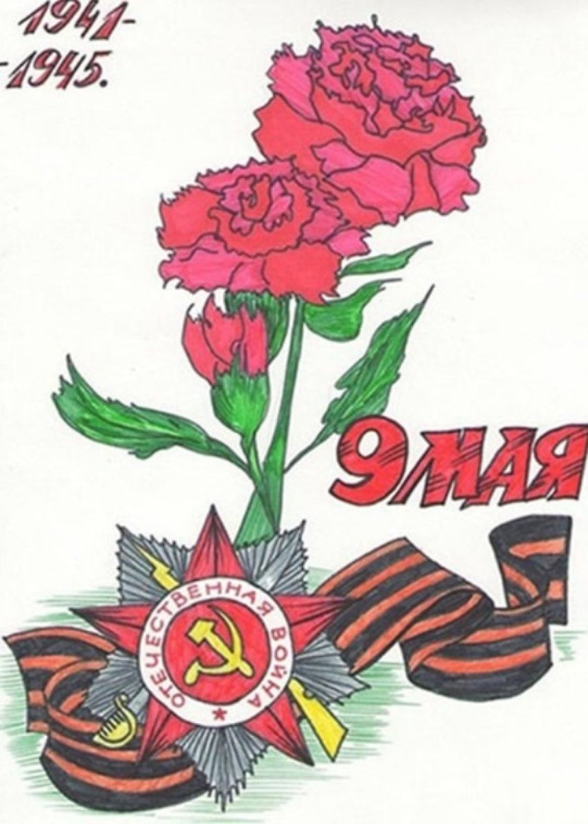 Нарисованные открытки к Дню Победы на Цветном картоне