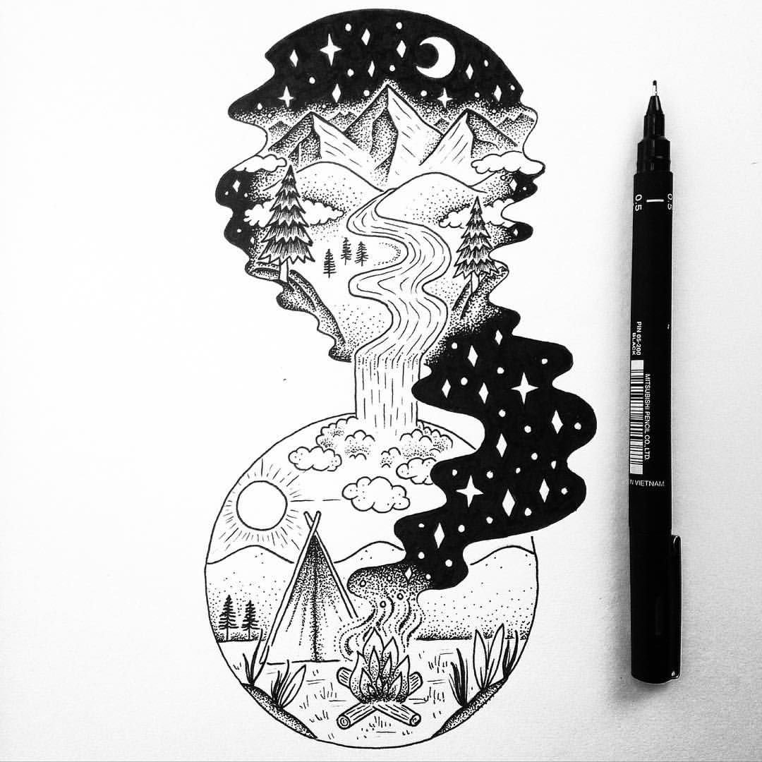 Чёрно-белые рисунки для скетчбука