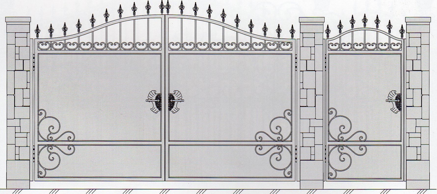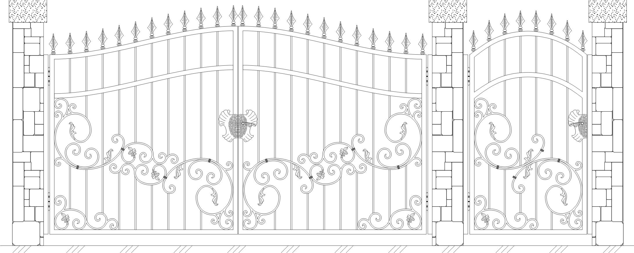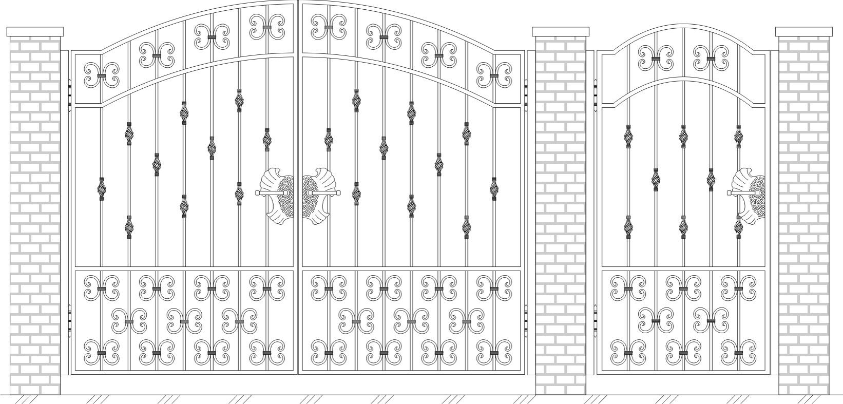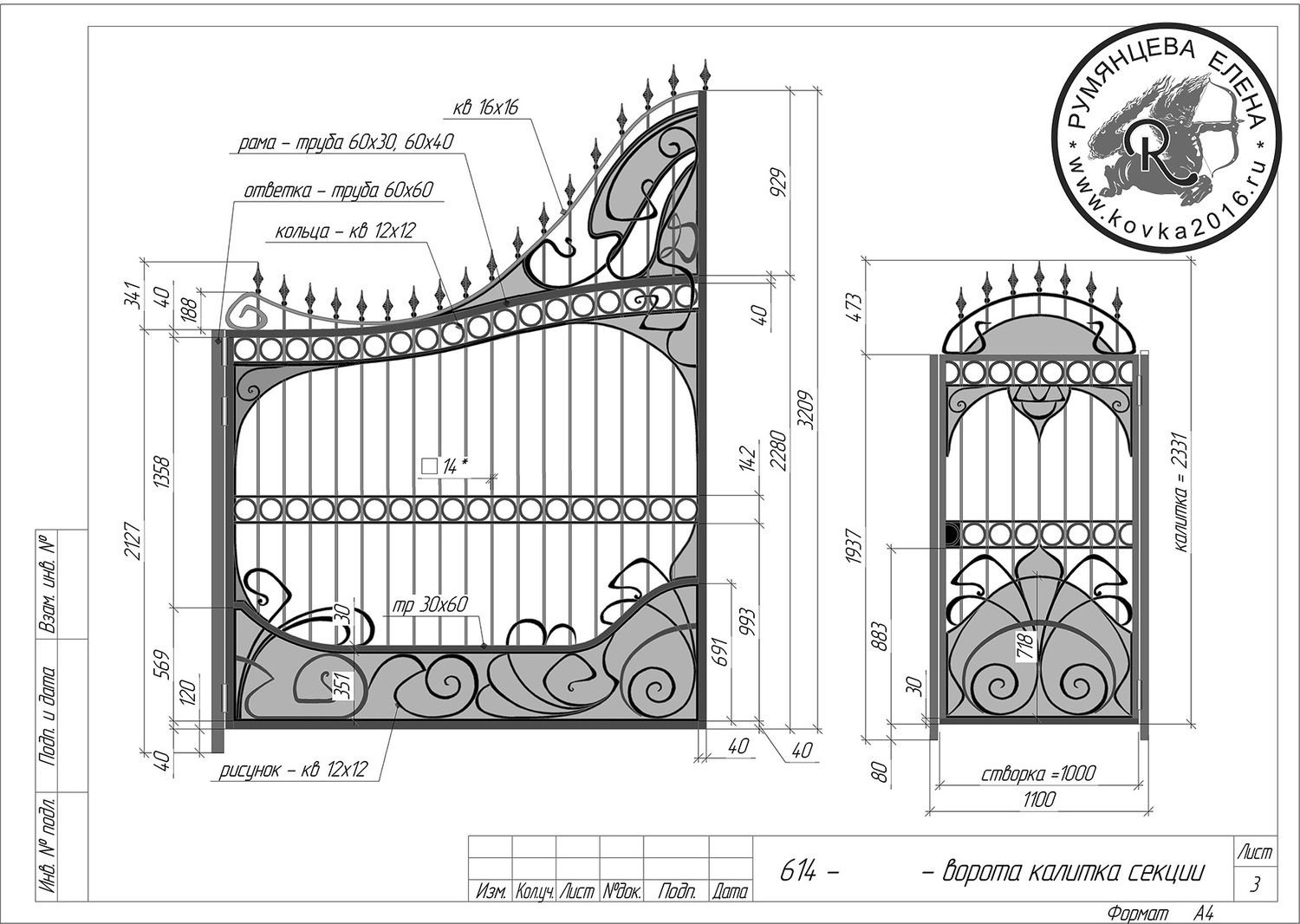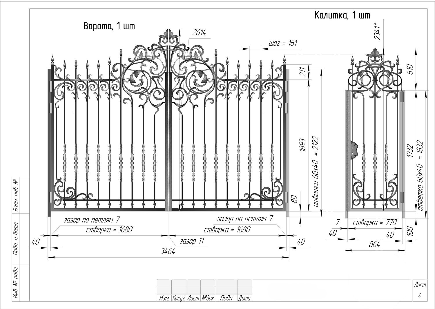 Ворота металлические распашные 4000х4300 с калиткой чертеж