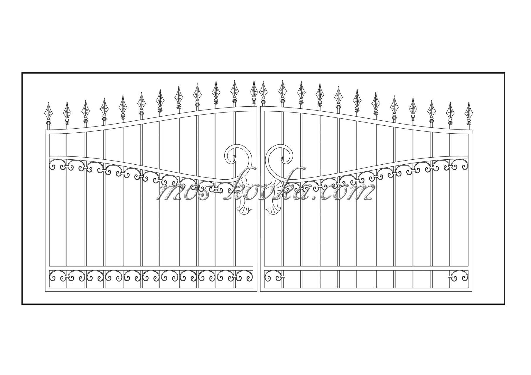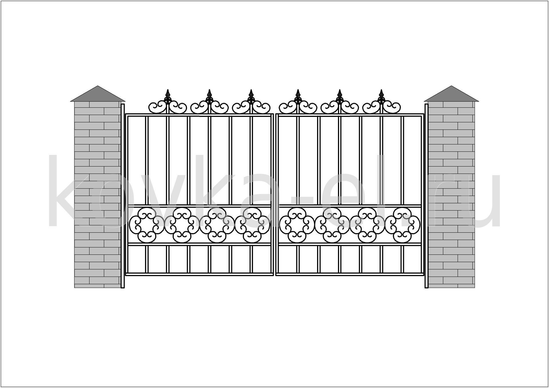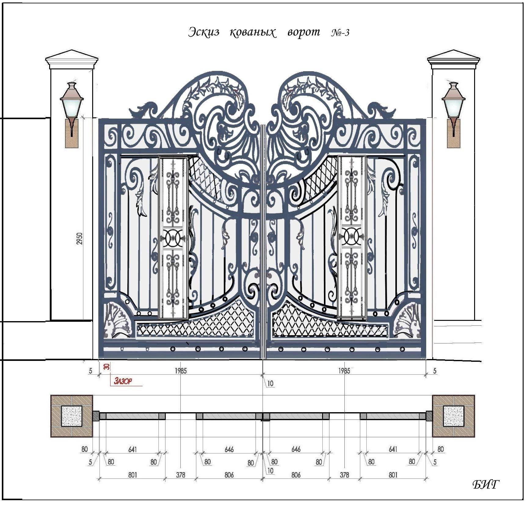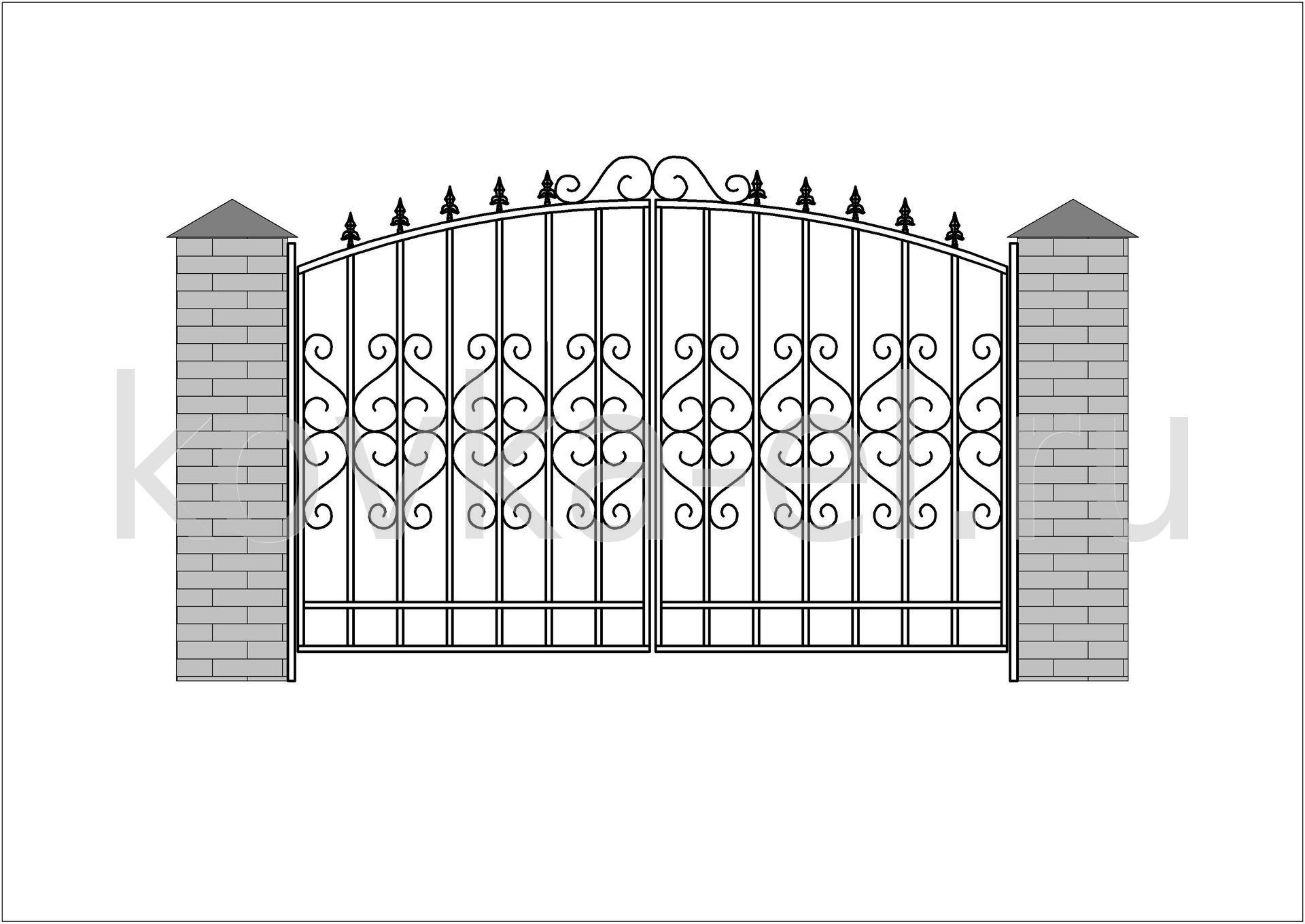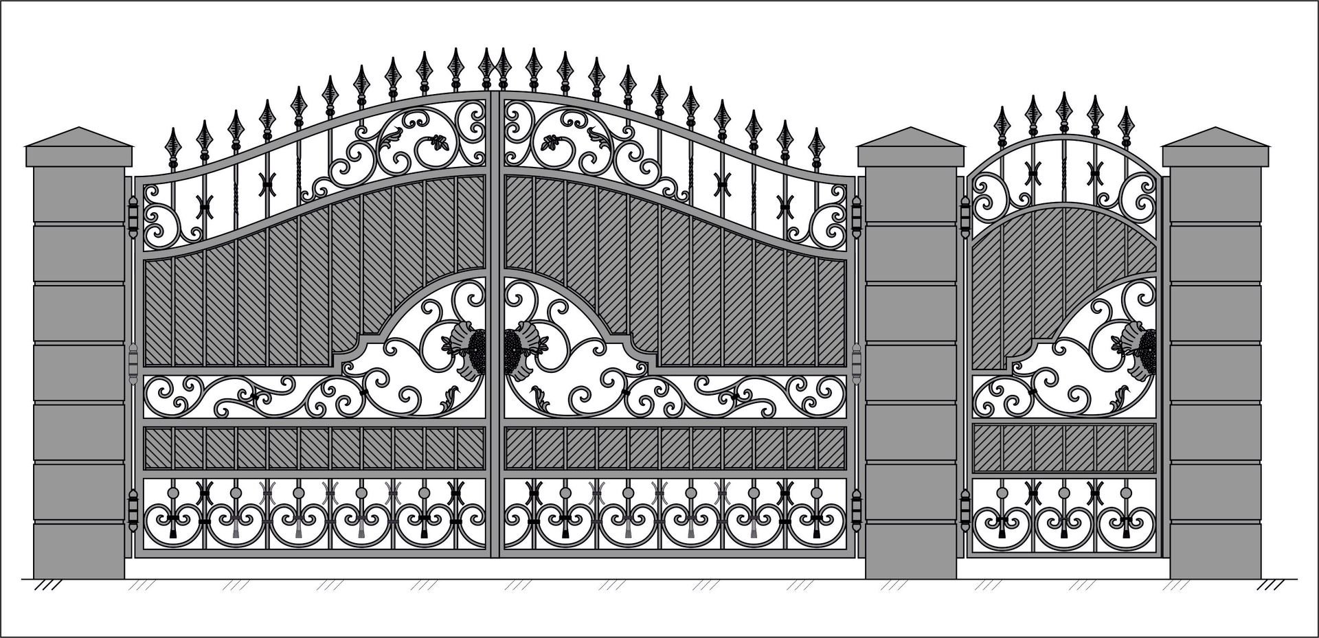 Ворота металлические распашные 4000х4300 с калиткой чертеж
