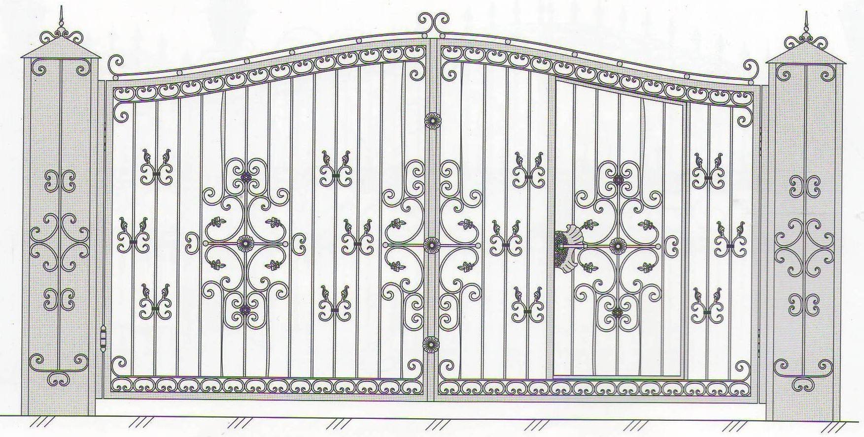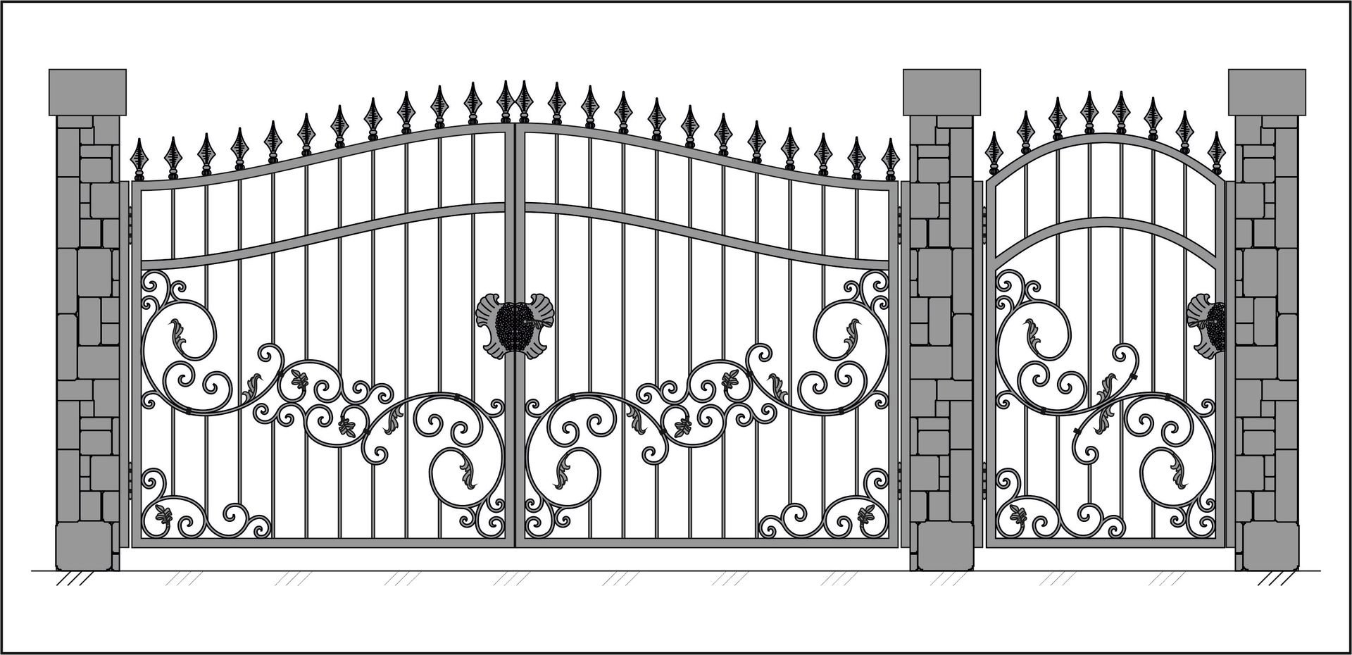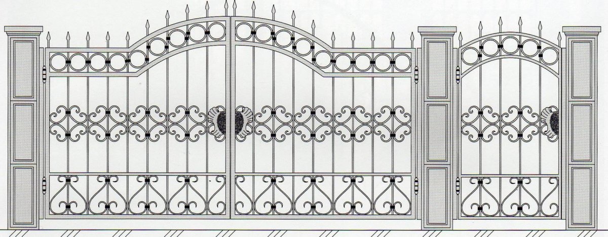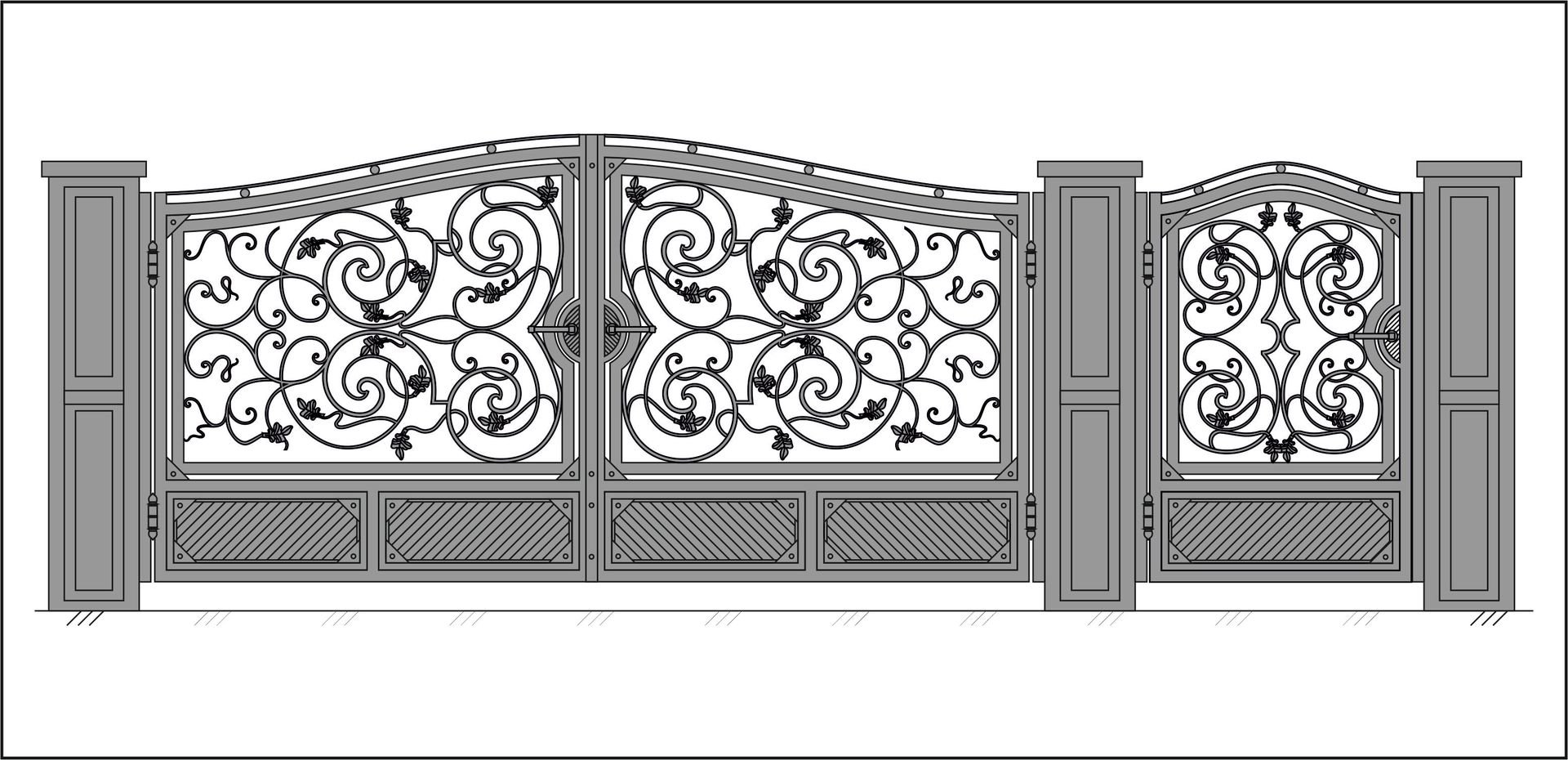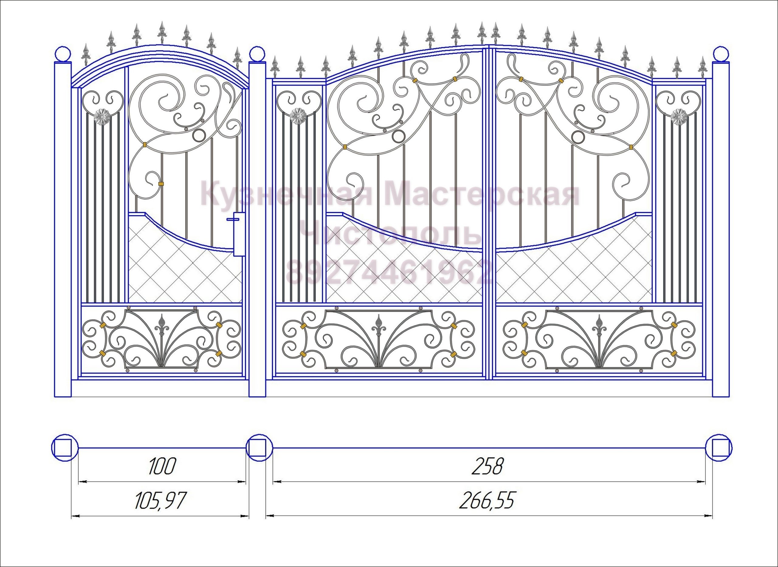 Ворота металлические распашные 4000х4300 с калиткой чертеж