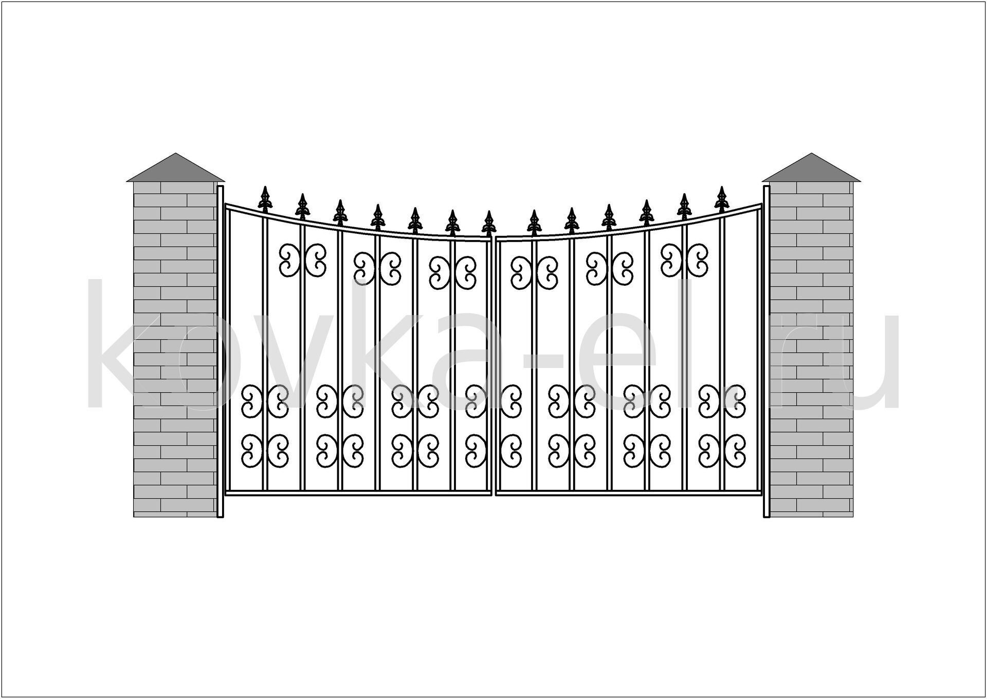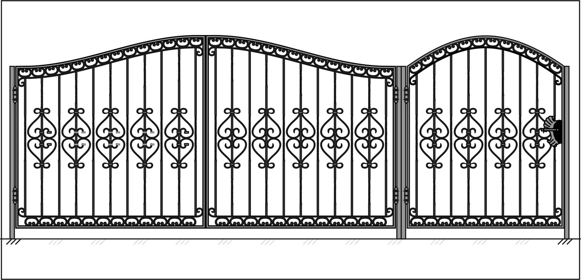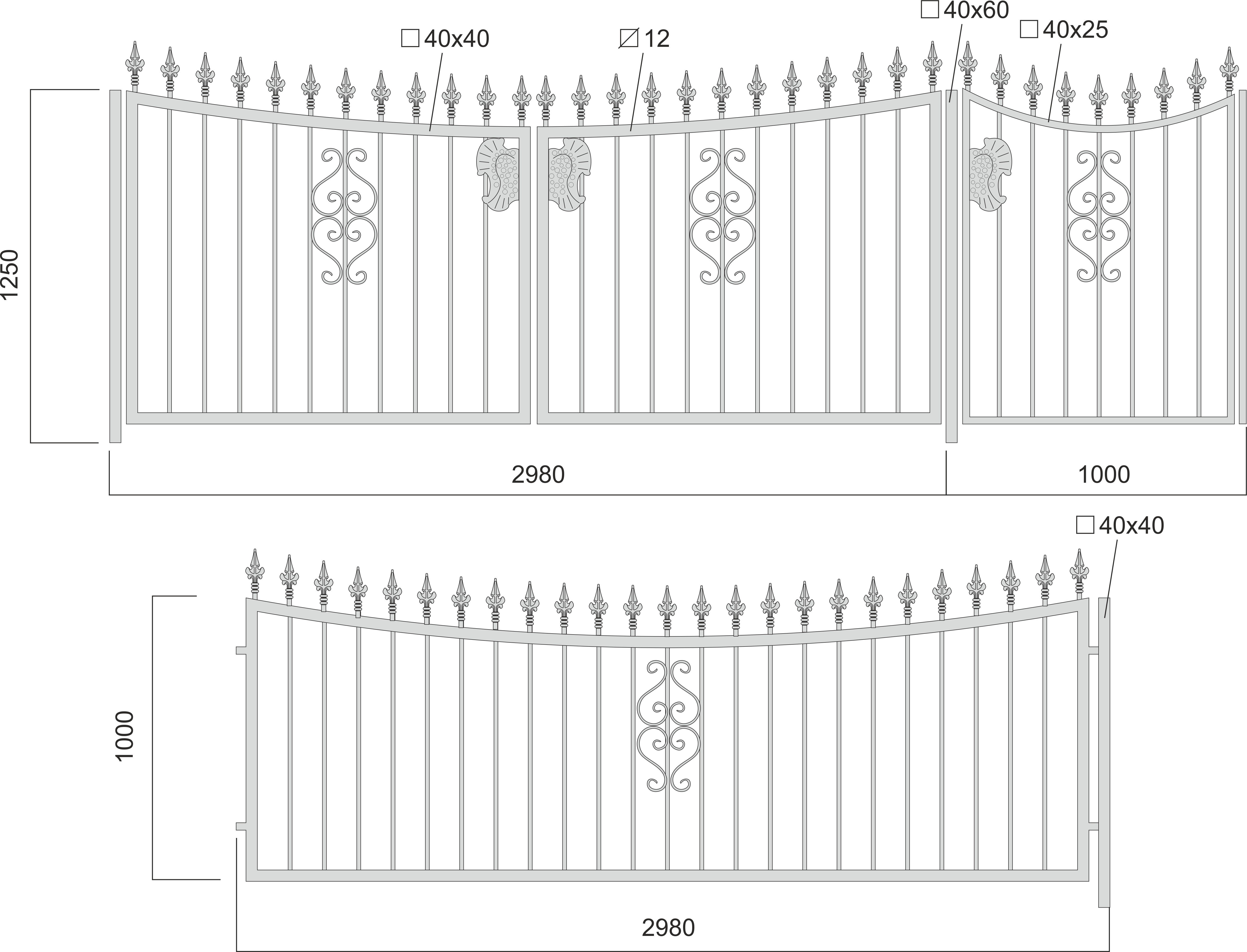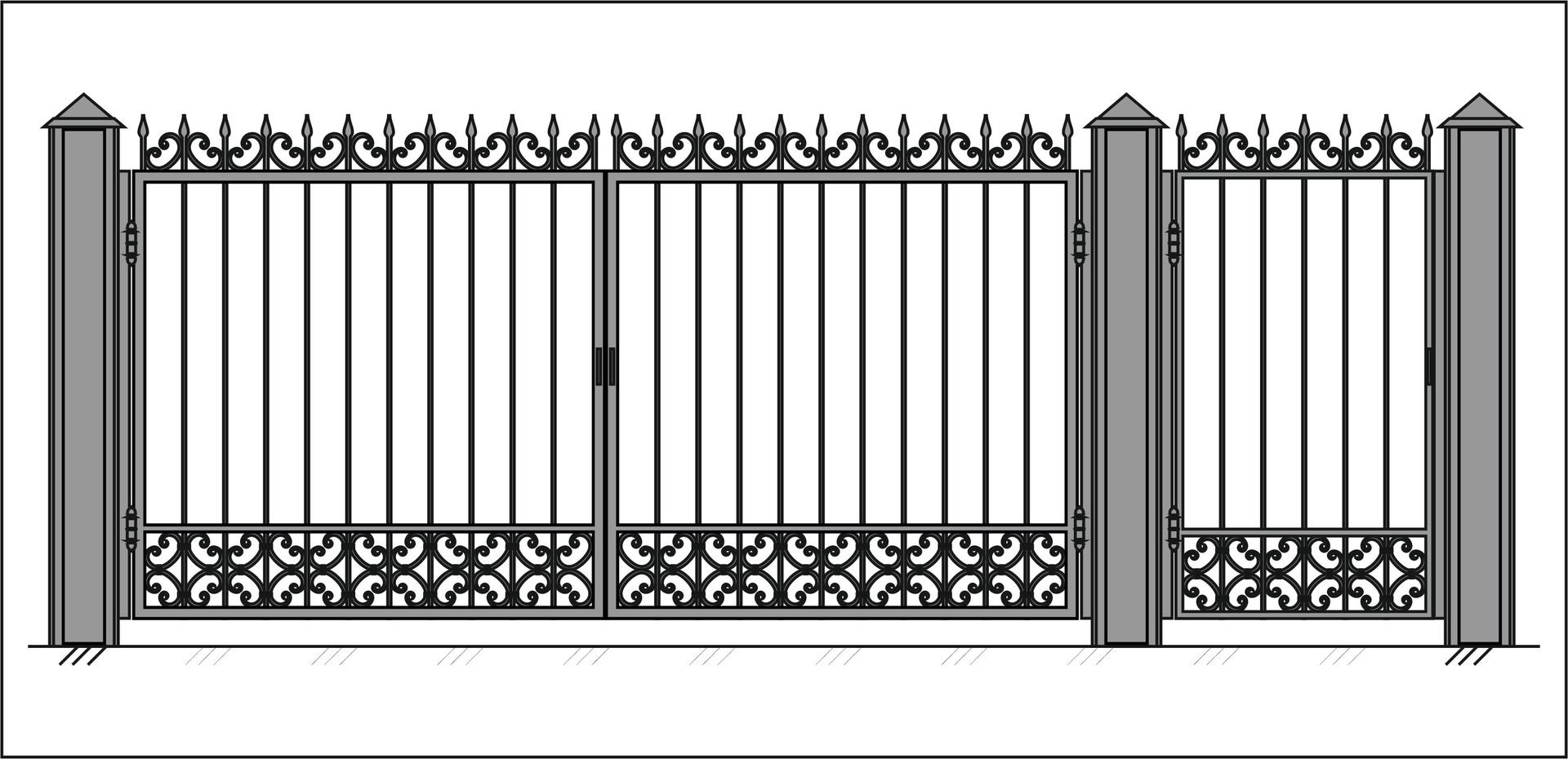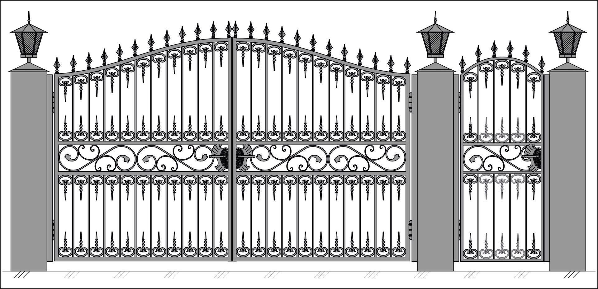 Ворота металлические распашные 4000х4300 с калиткой чертеж