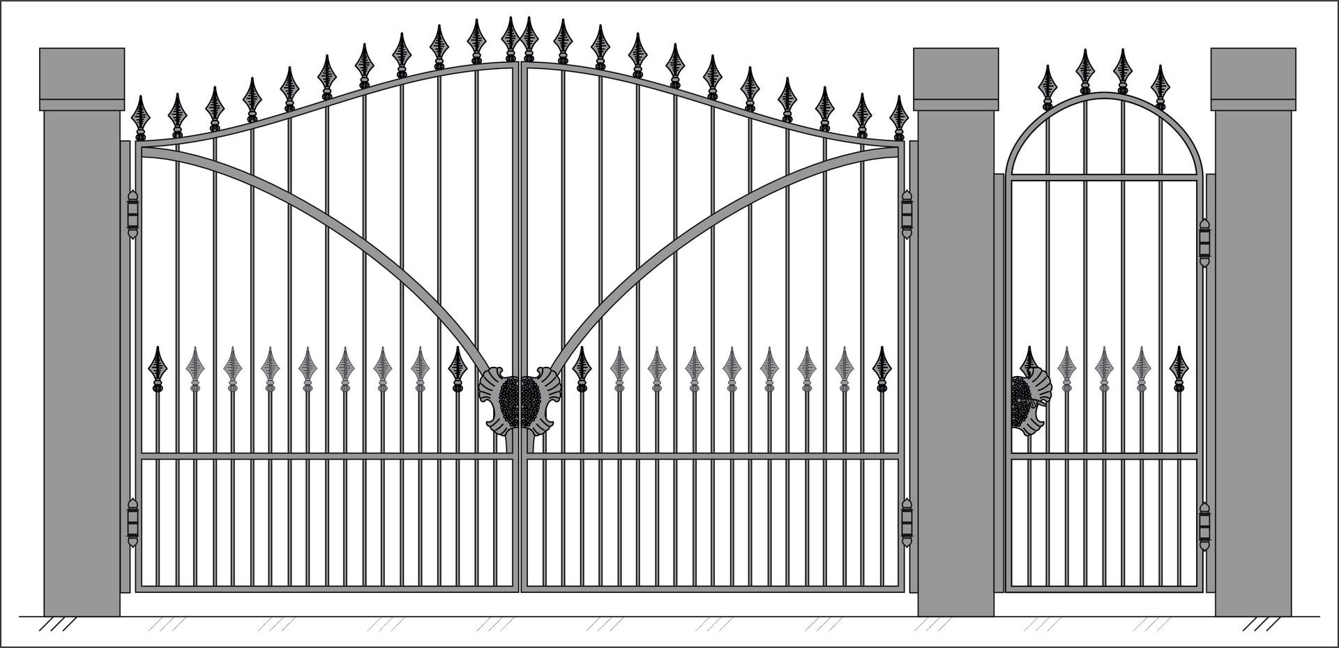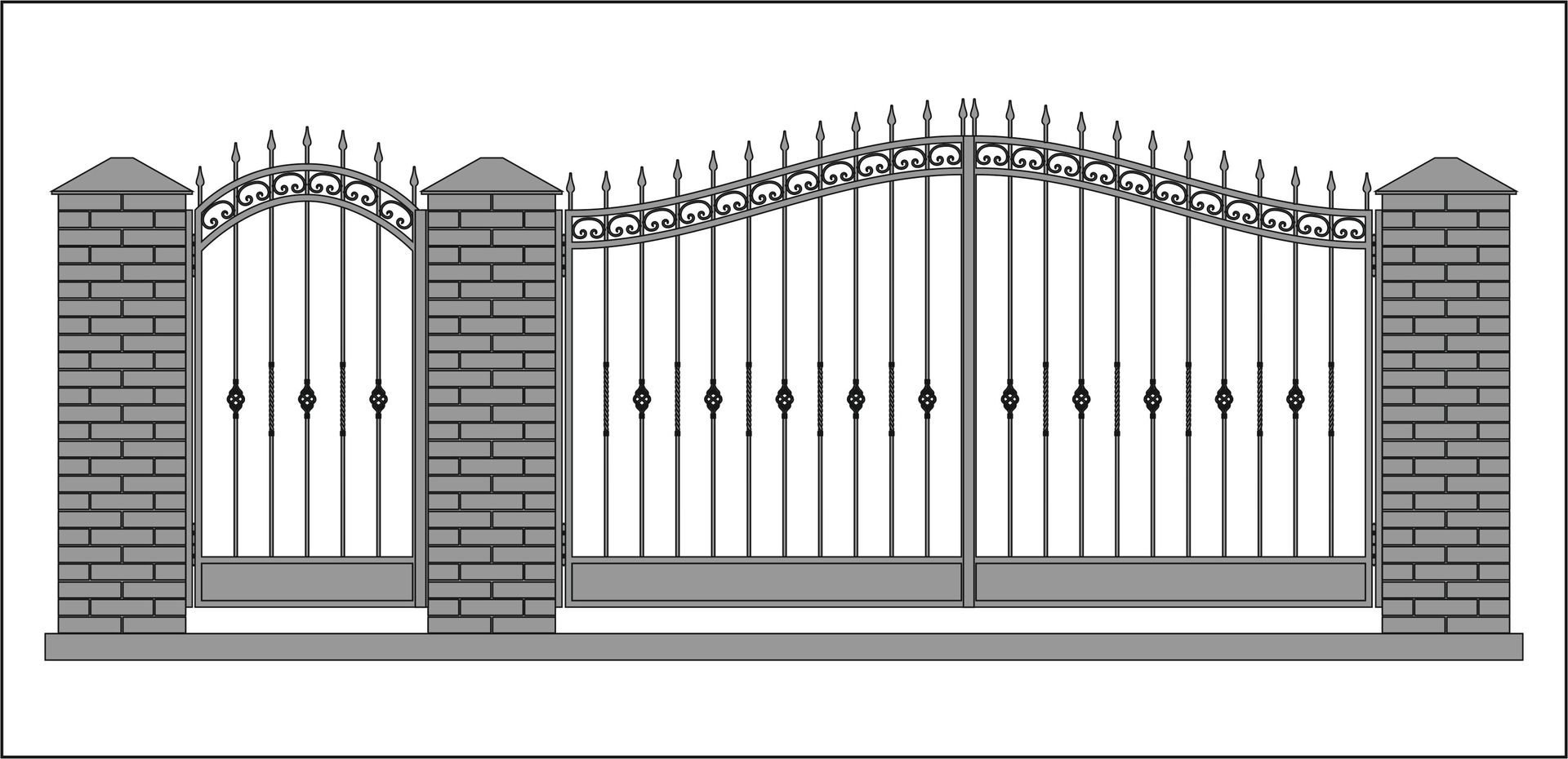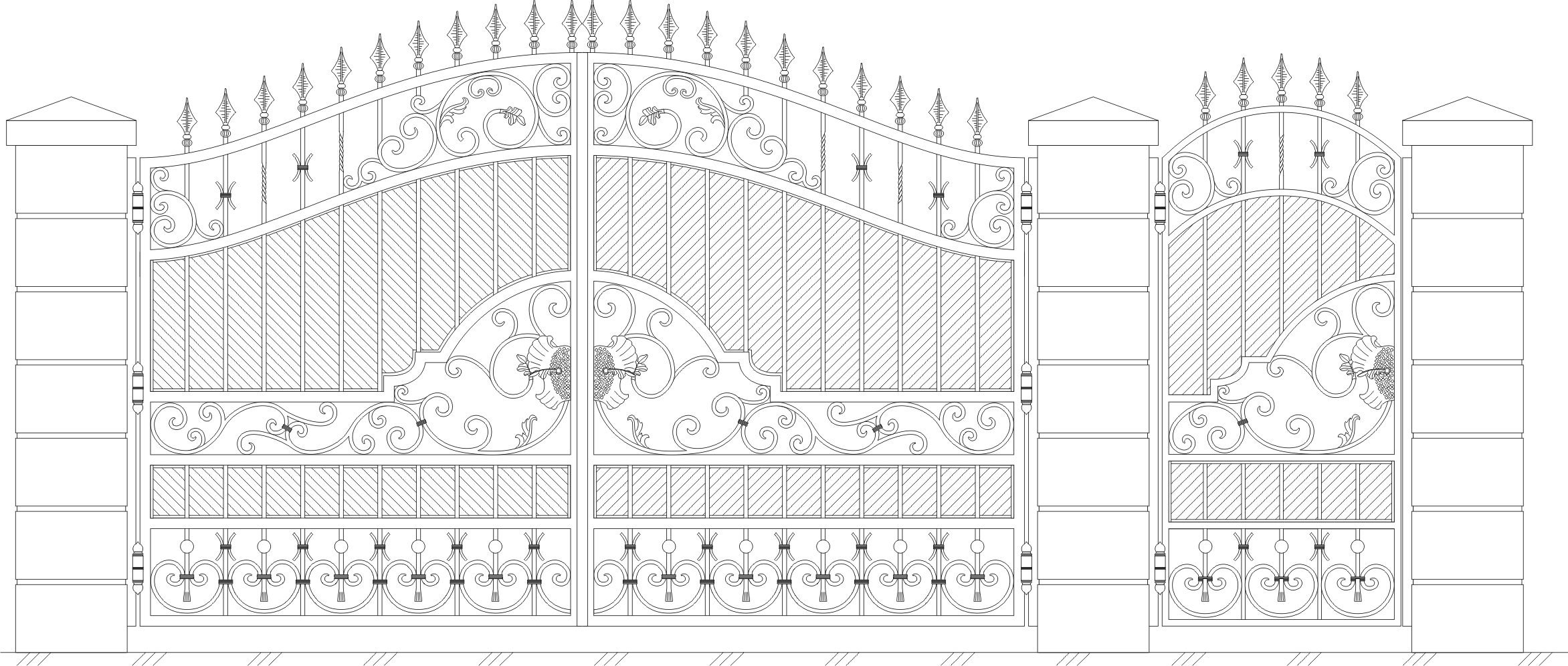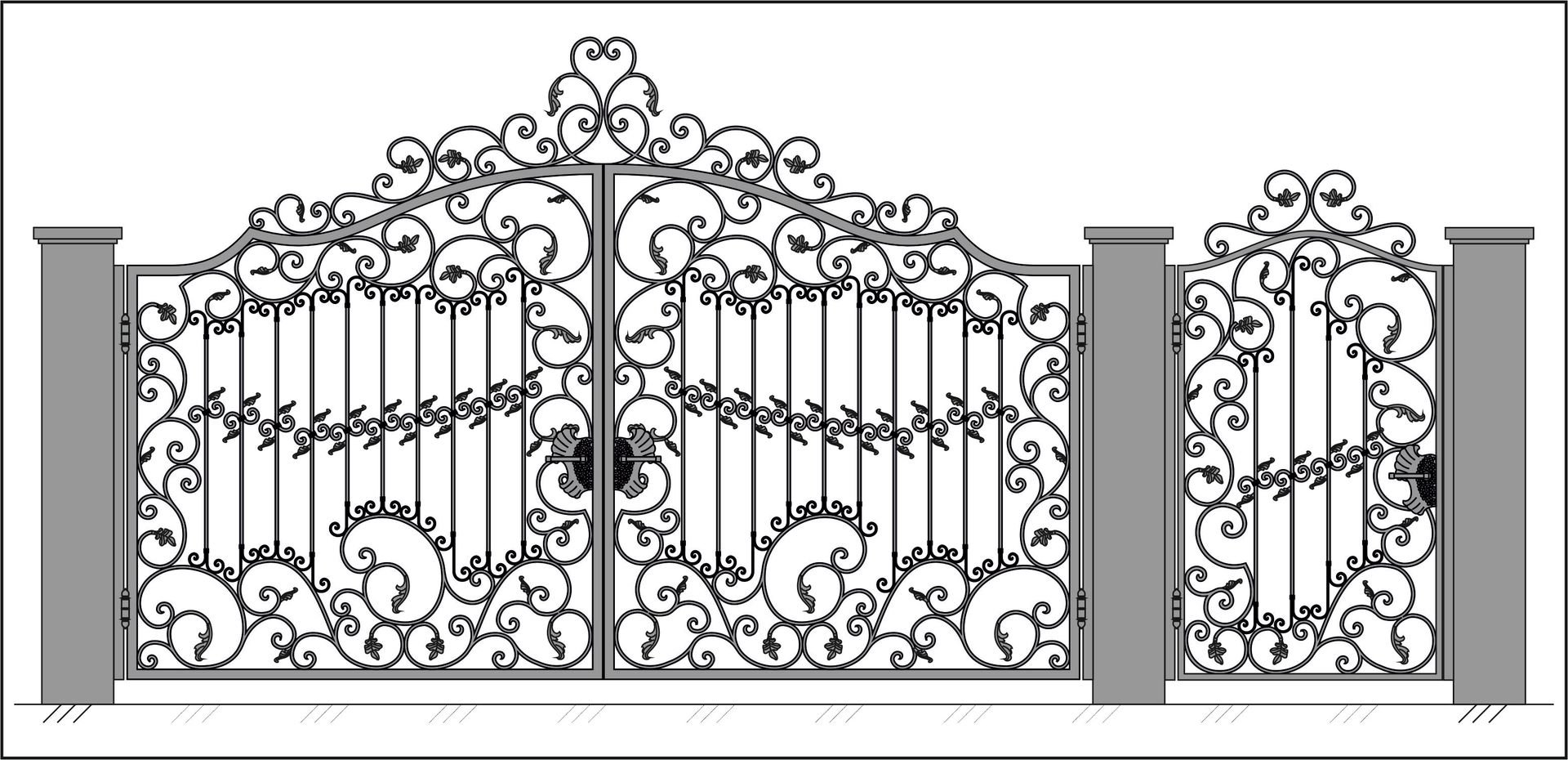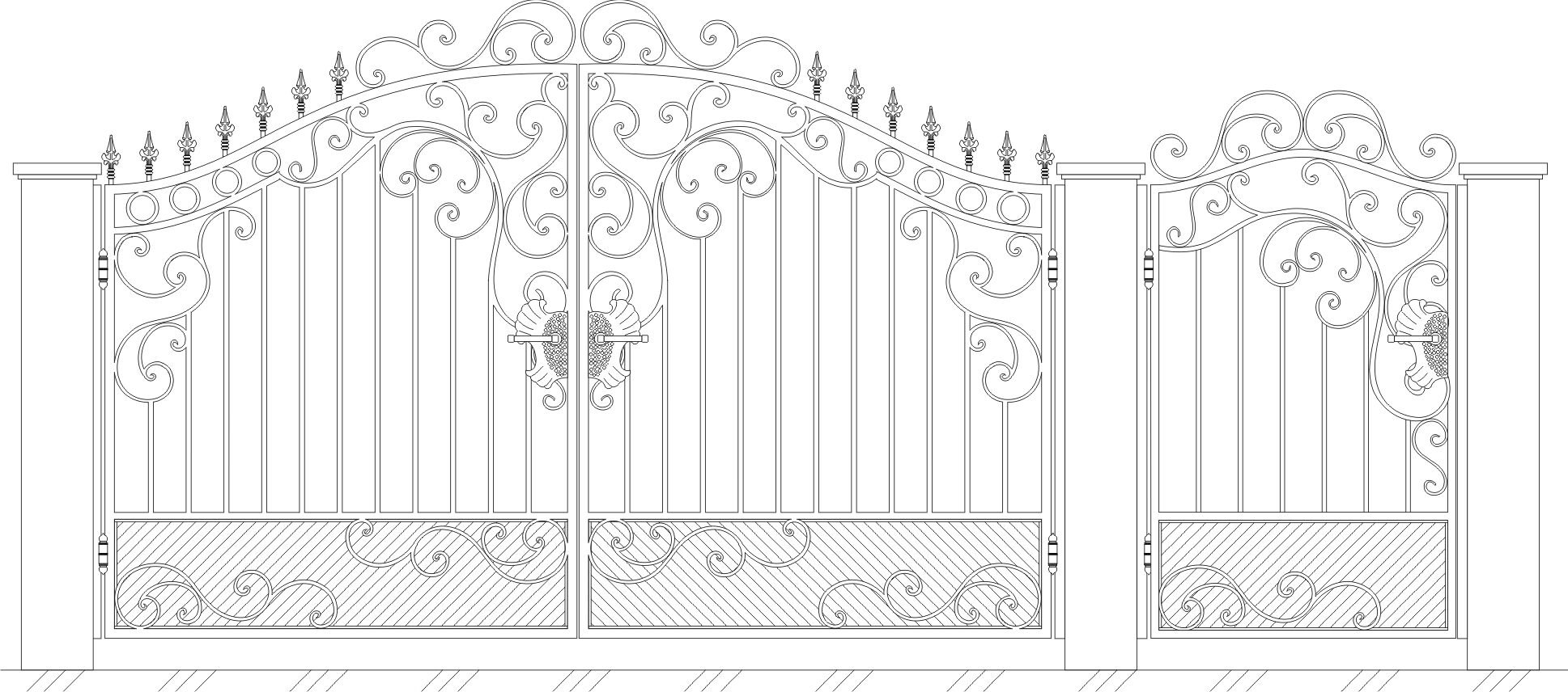 Ворота металлические распашные 4000х4300 с калиткой чертеж