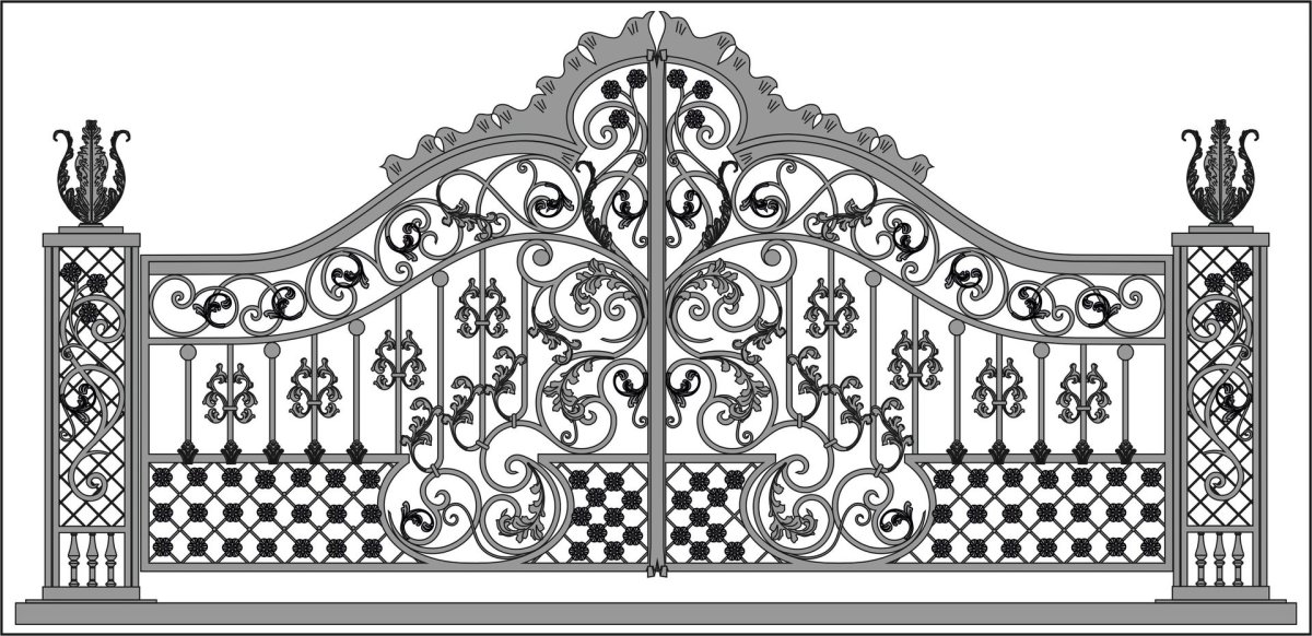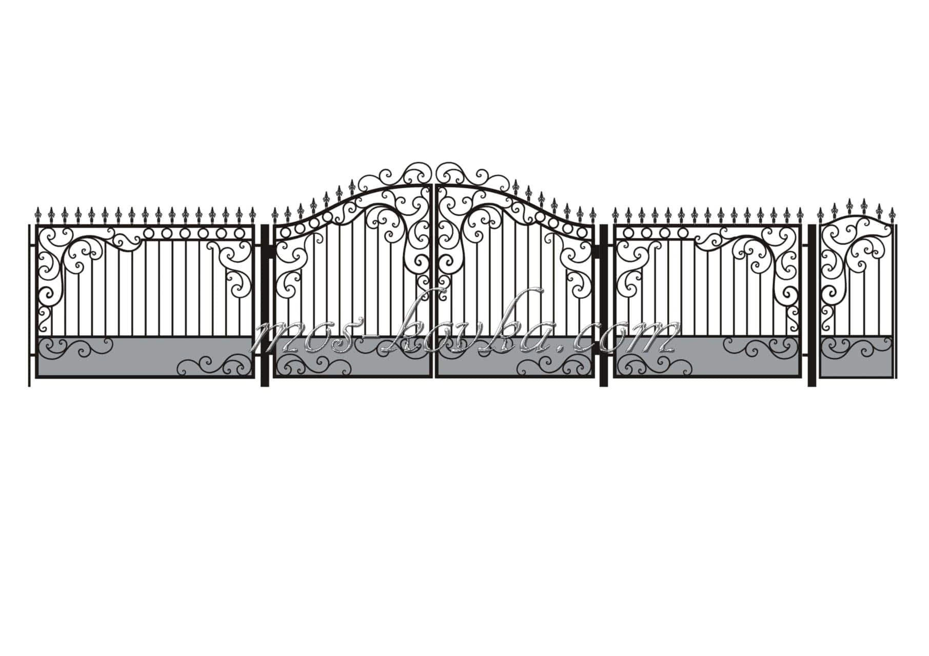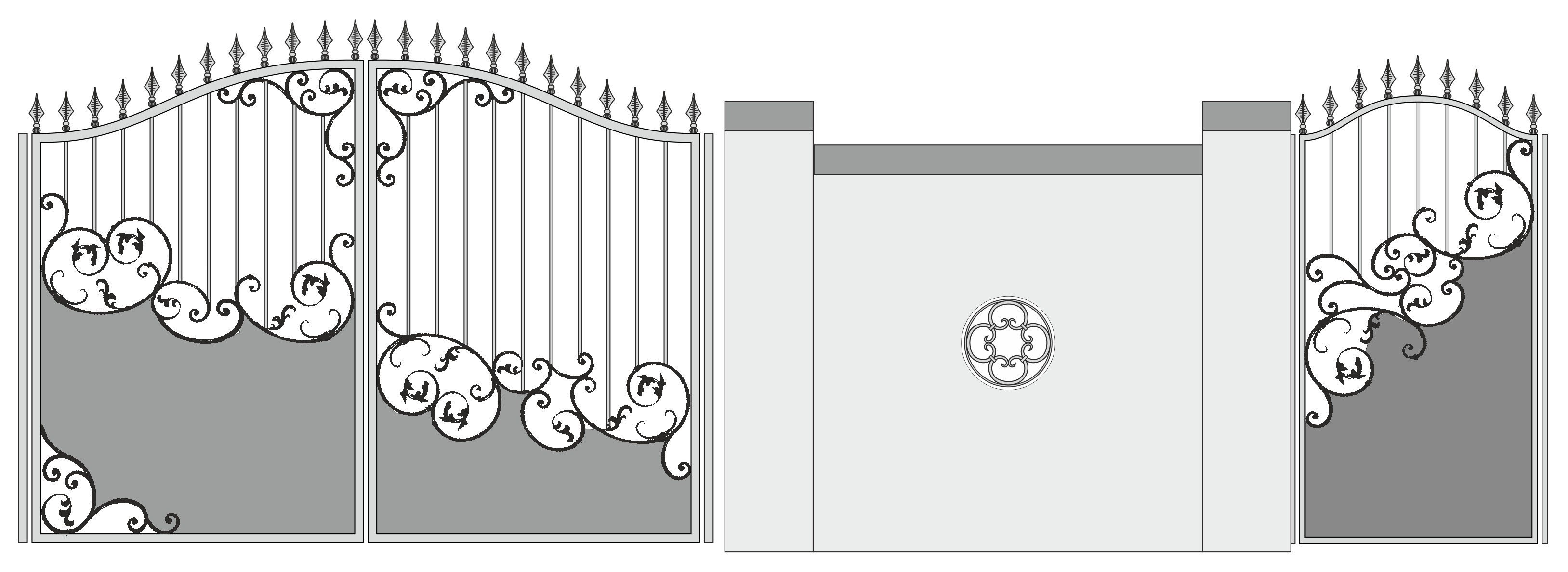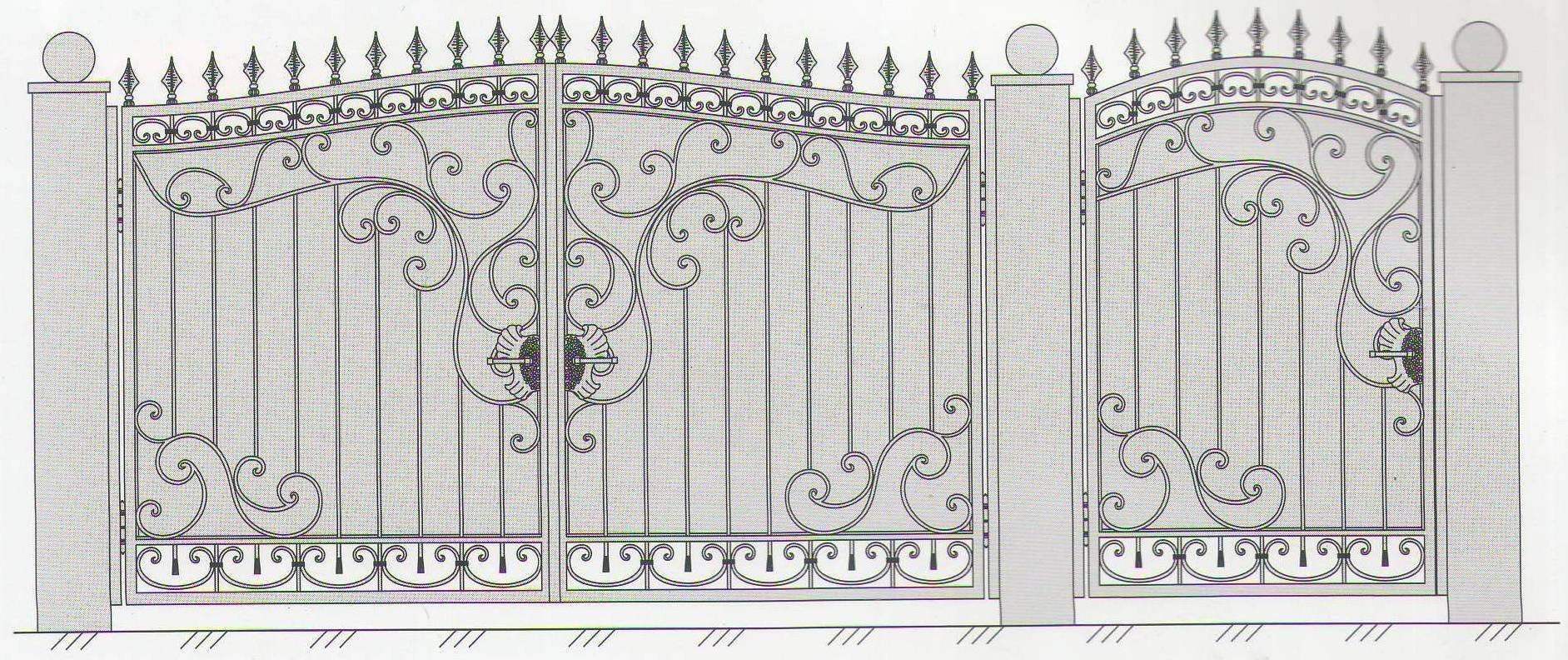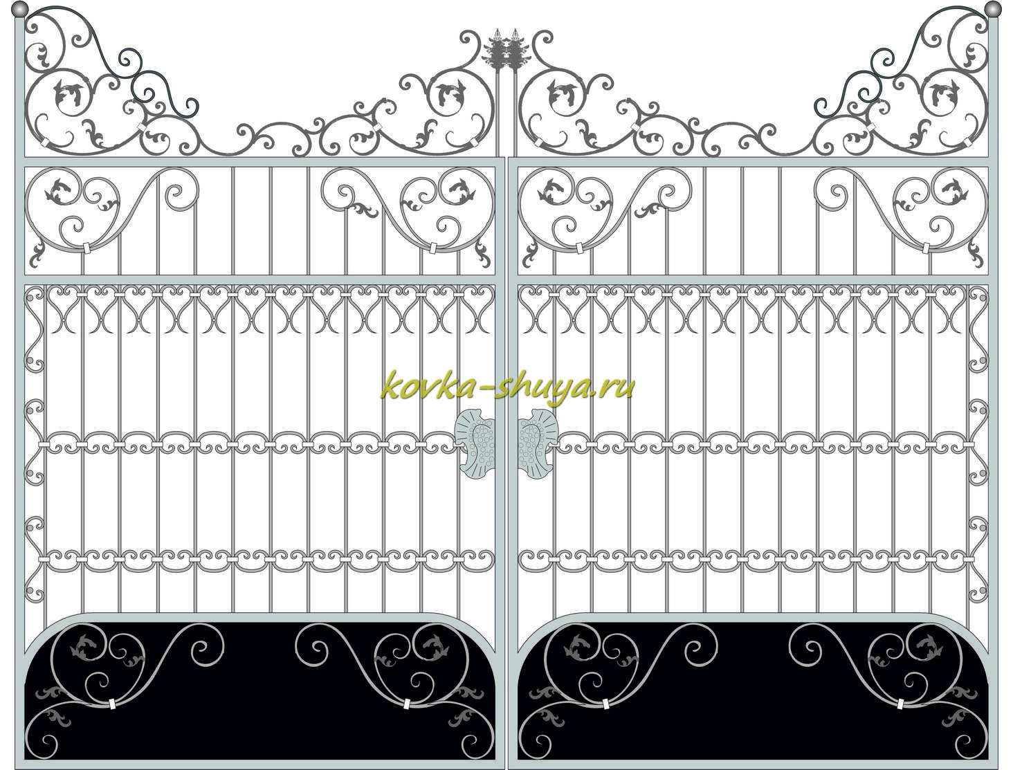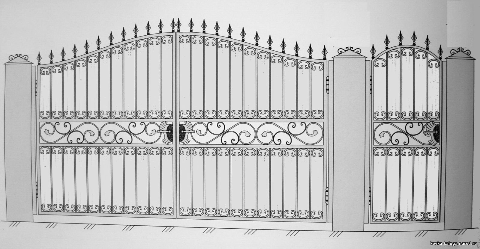 Ворота металлические распашные 4000х4300 с калиткой чертеж