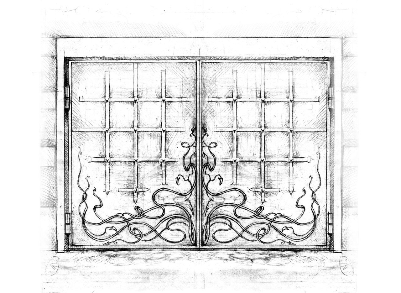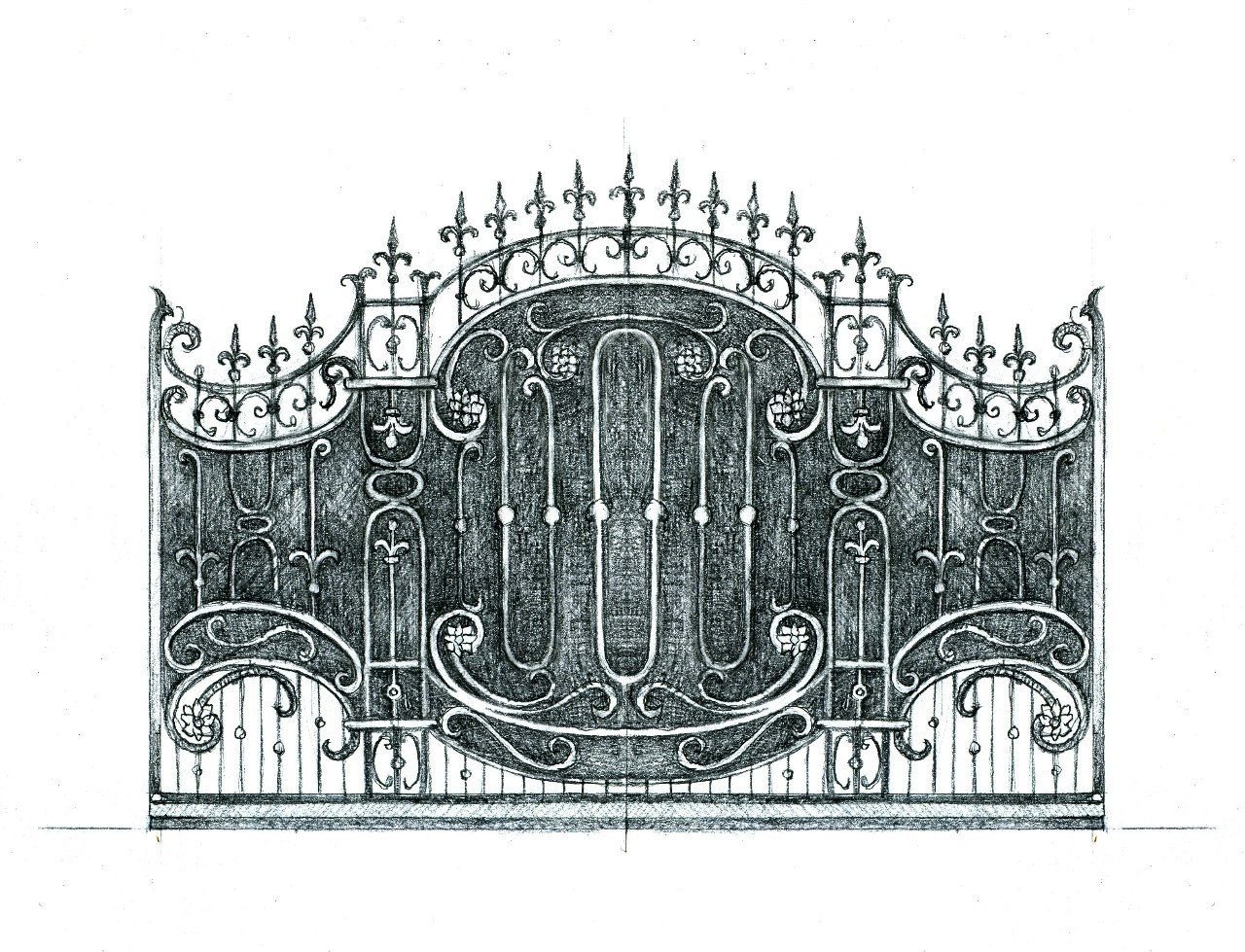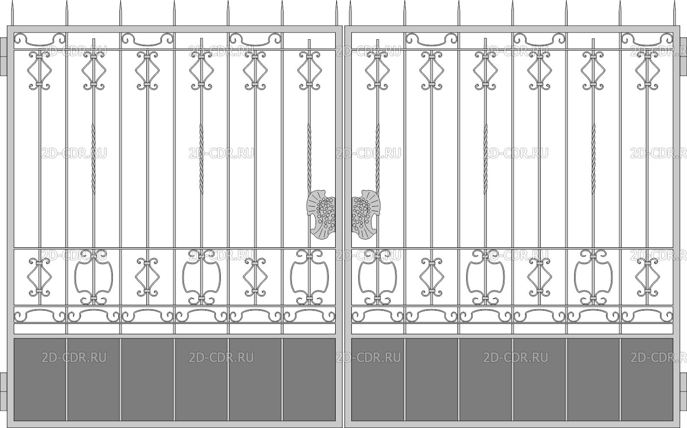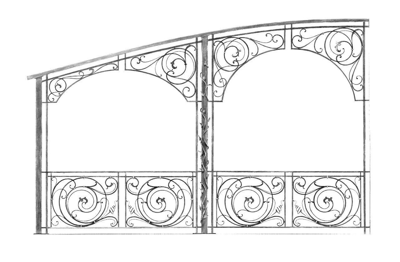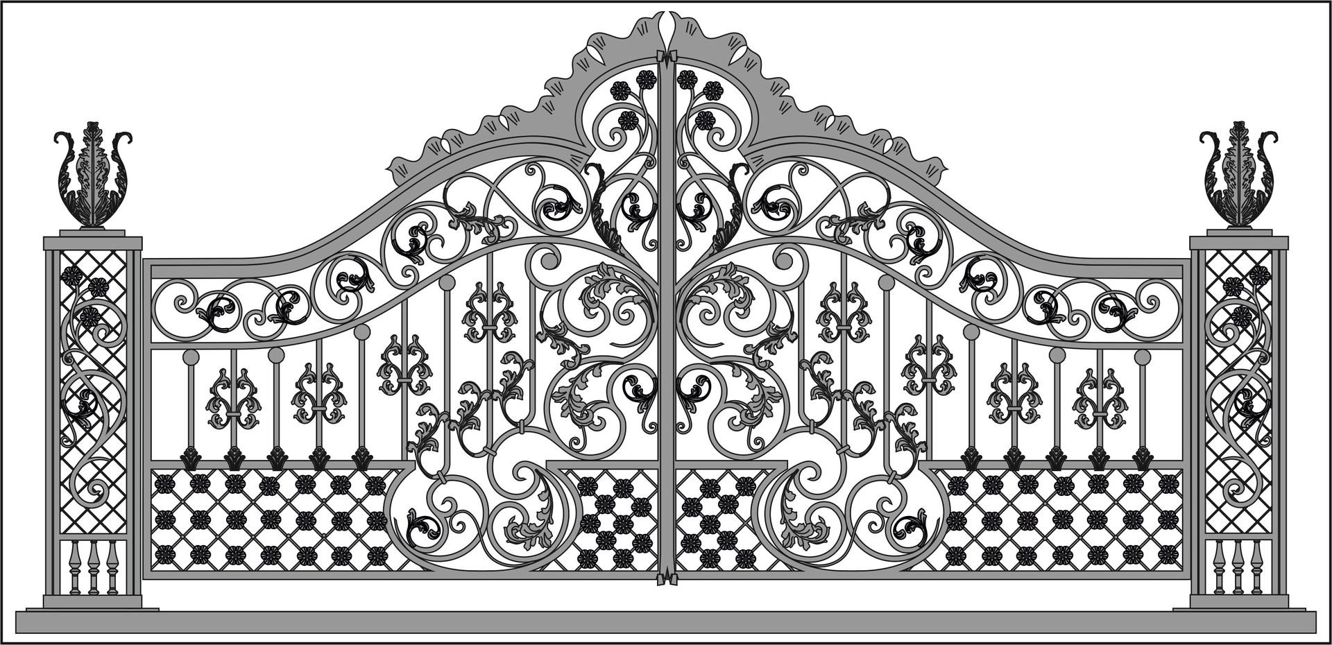Ворота металлические распашные 4000х4300 с калиткой чертеж