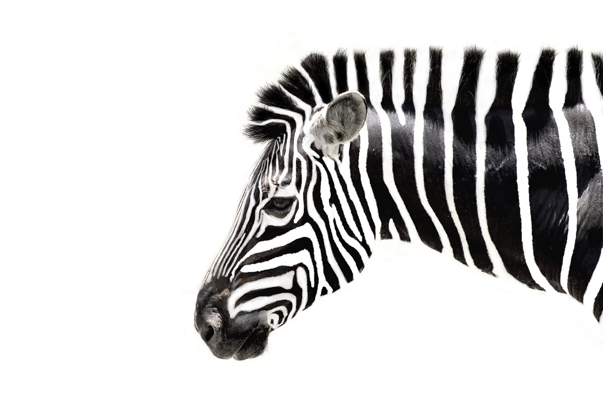 Белая Зебра на чёрном фоне