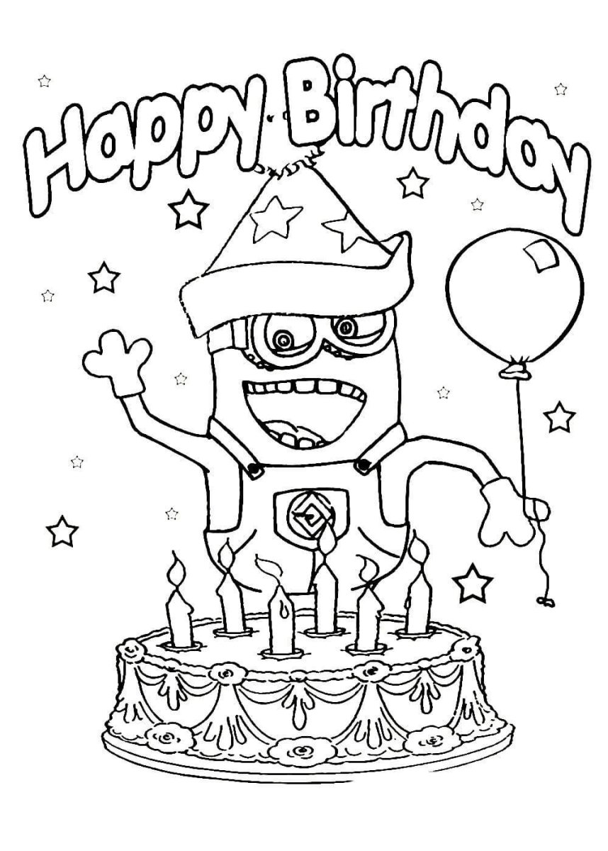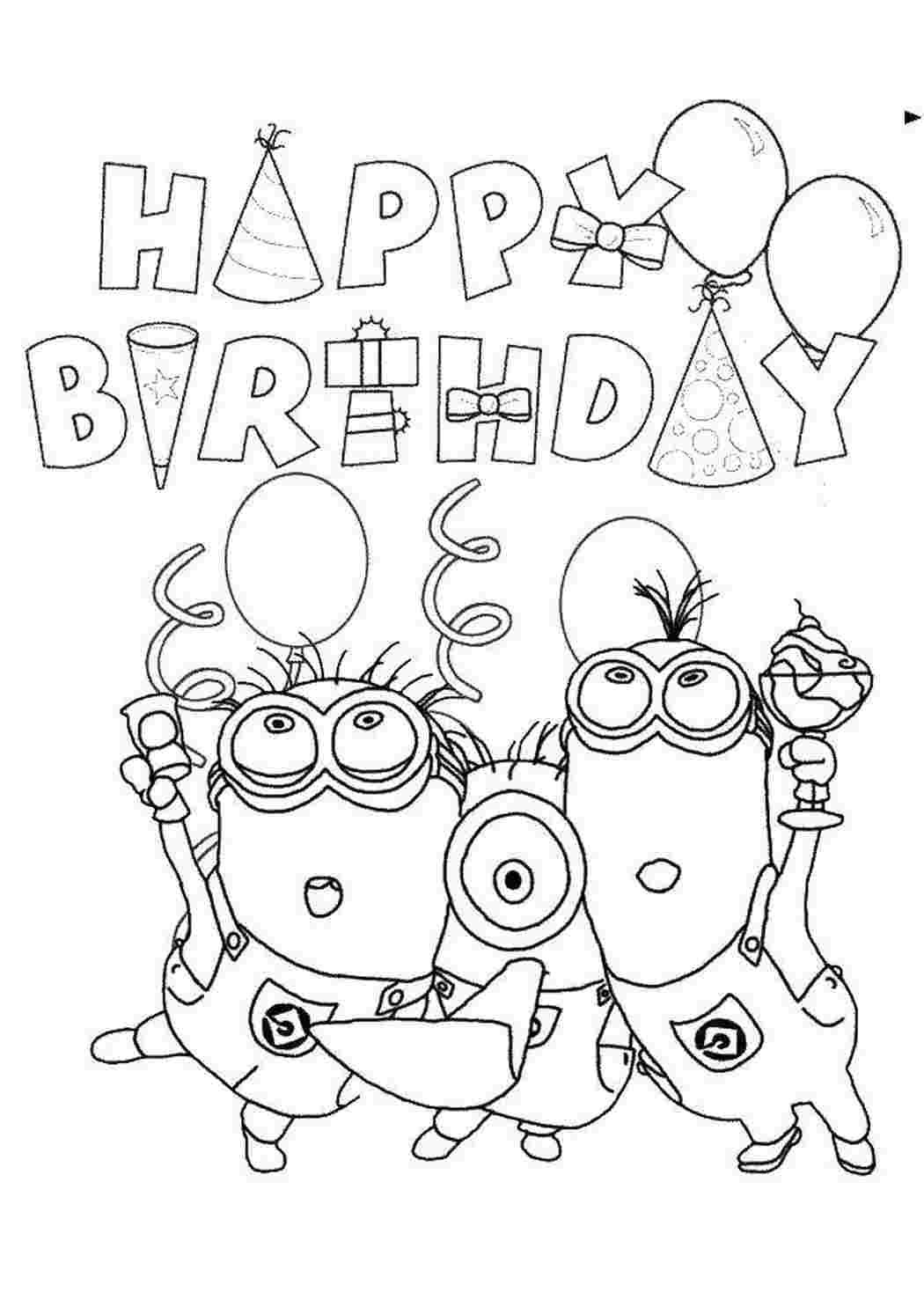 Миньоны раскраска с днем рождения