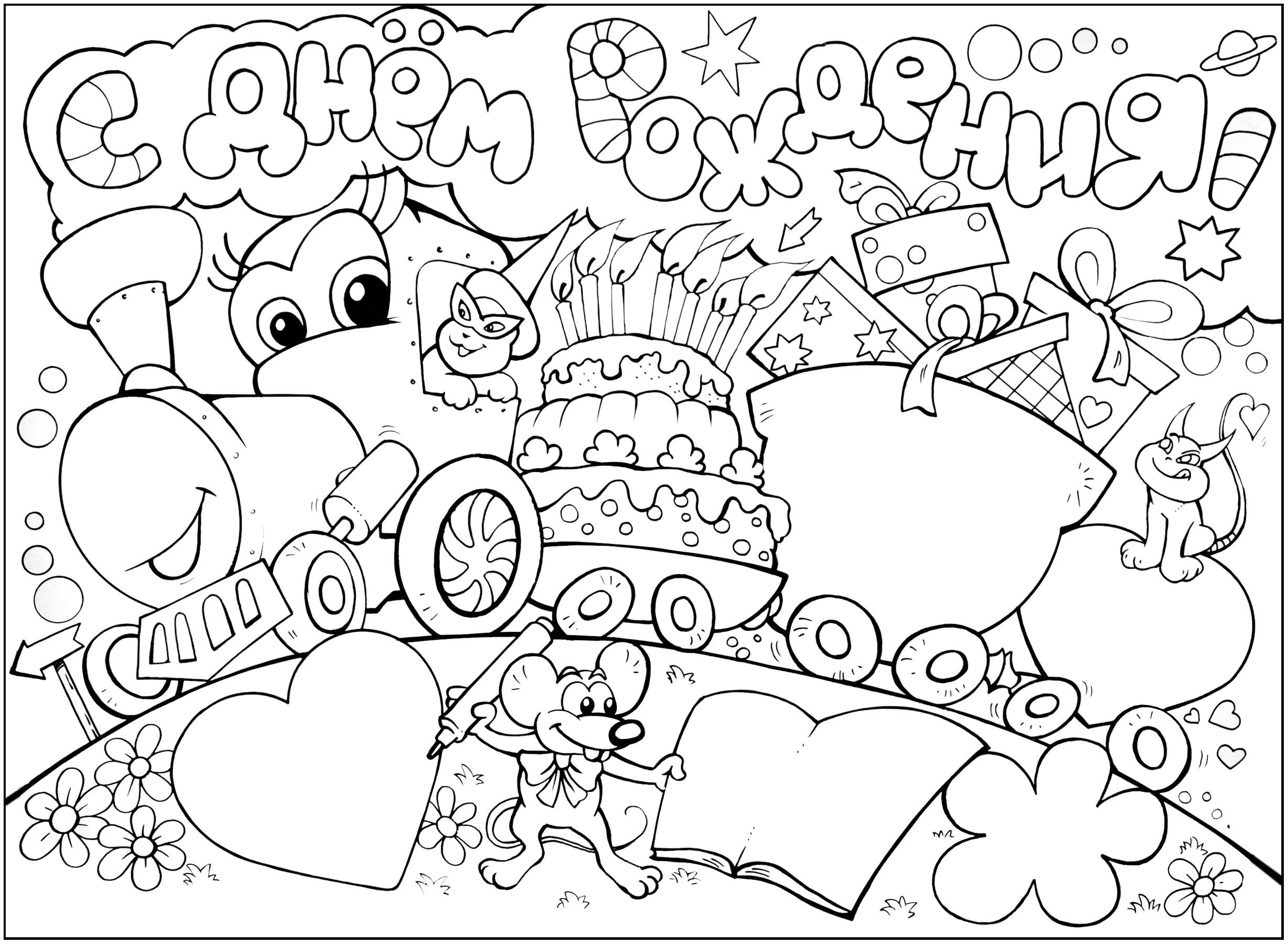 Рисунки для раскрашивания с днем рождения