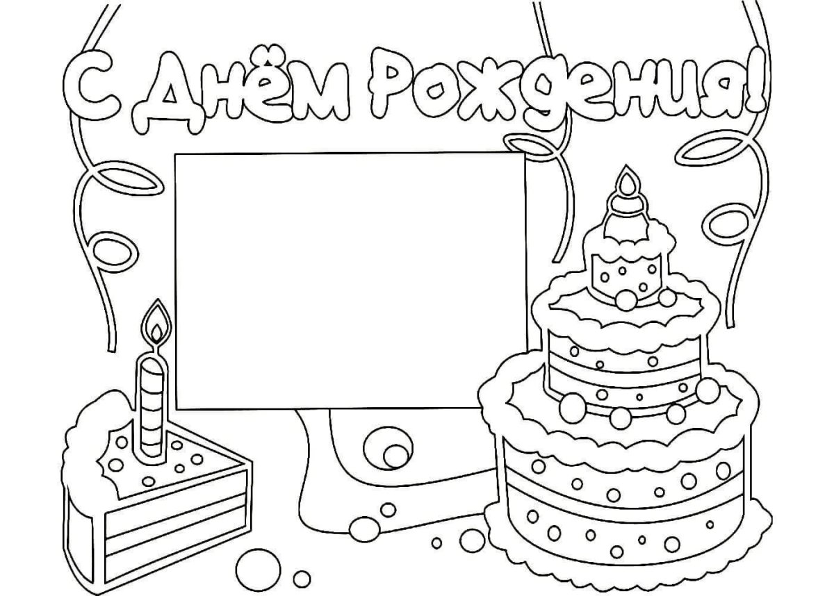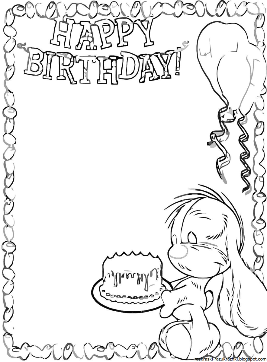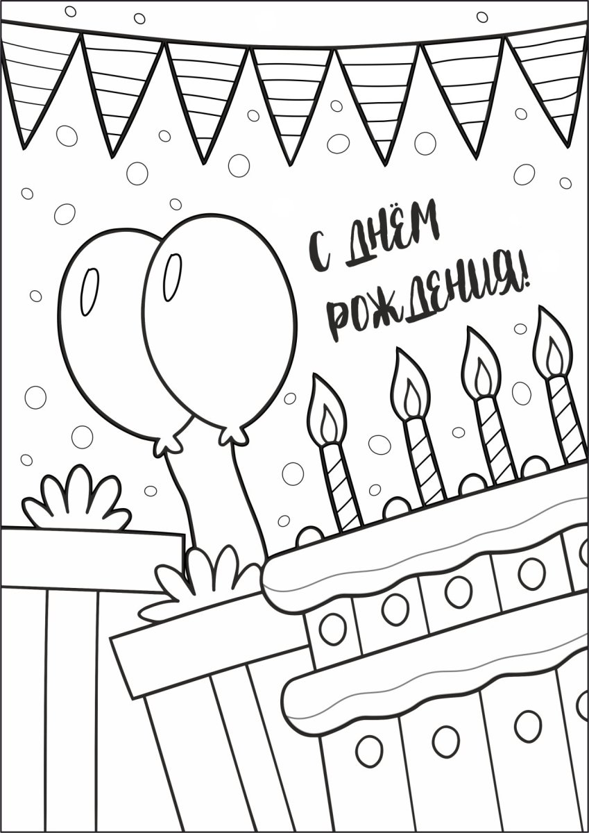 Открытка раскраска с днем рождения