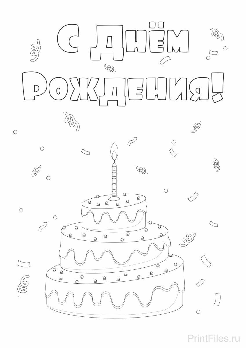 С дне рождения раскраска