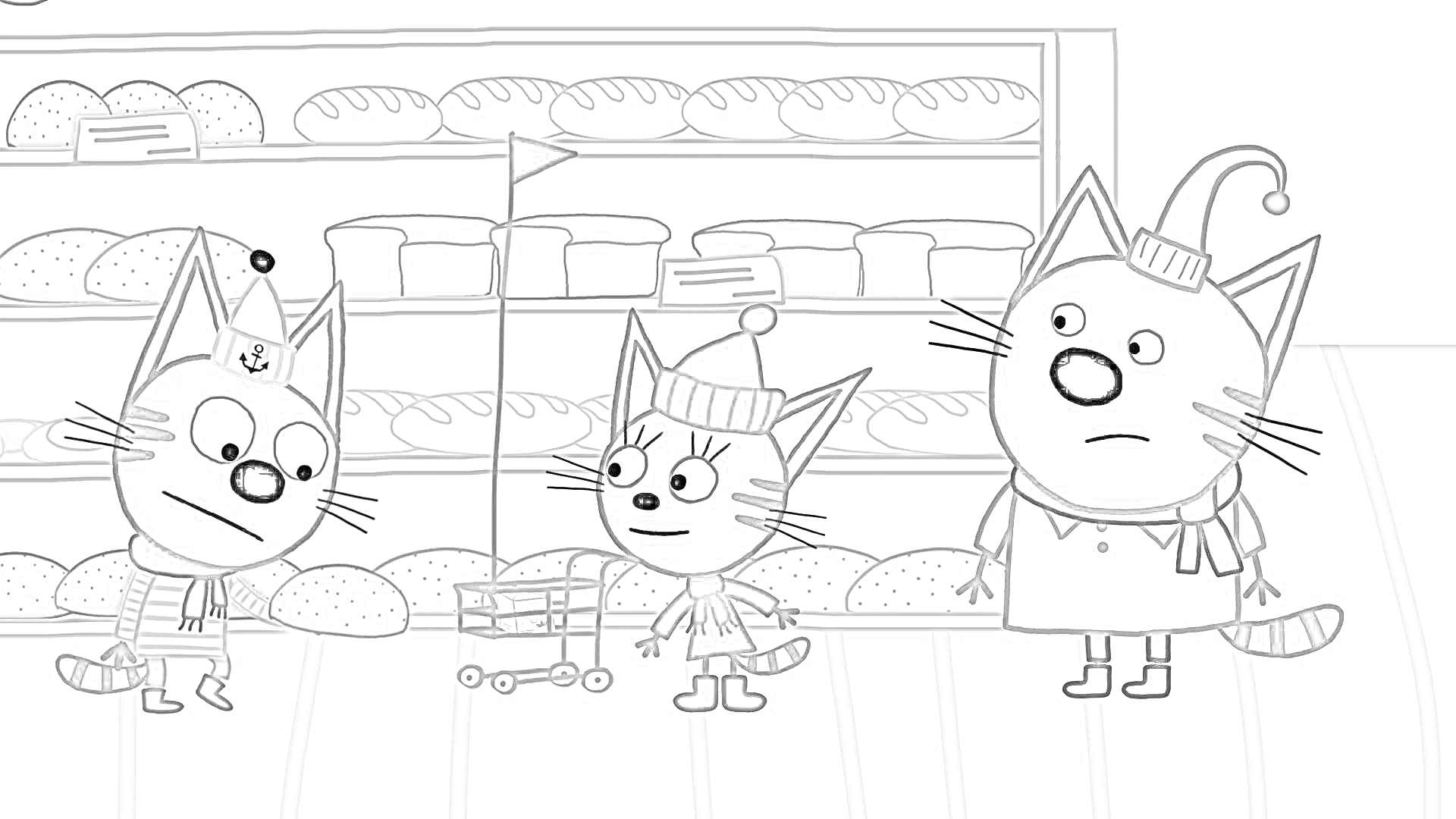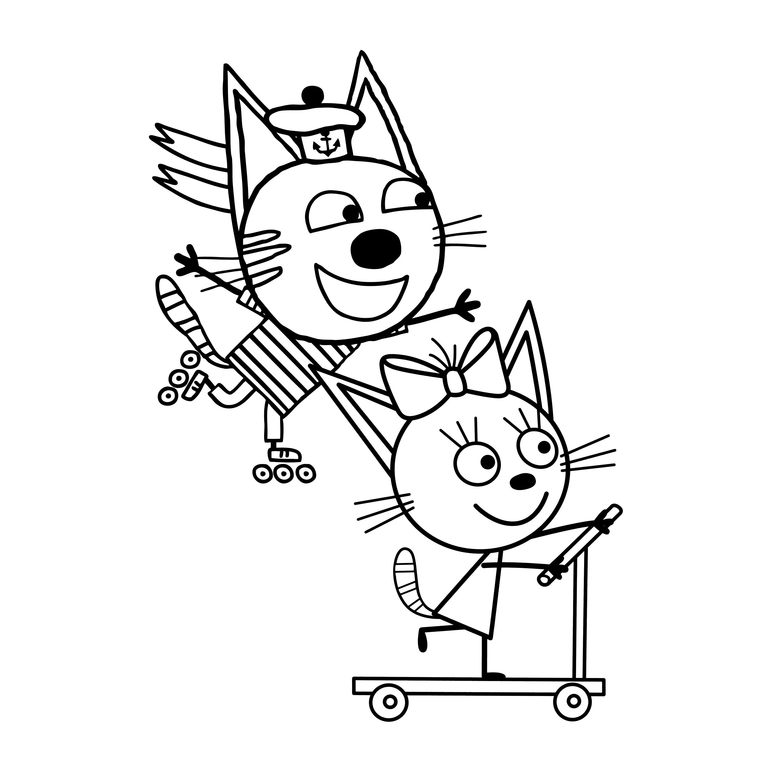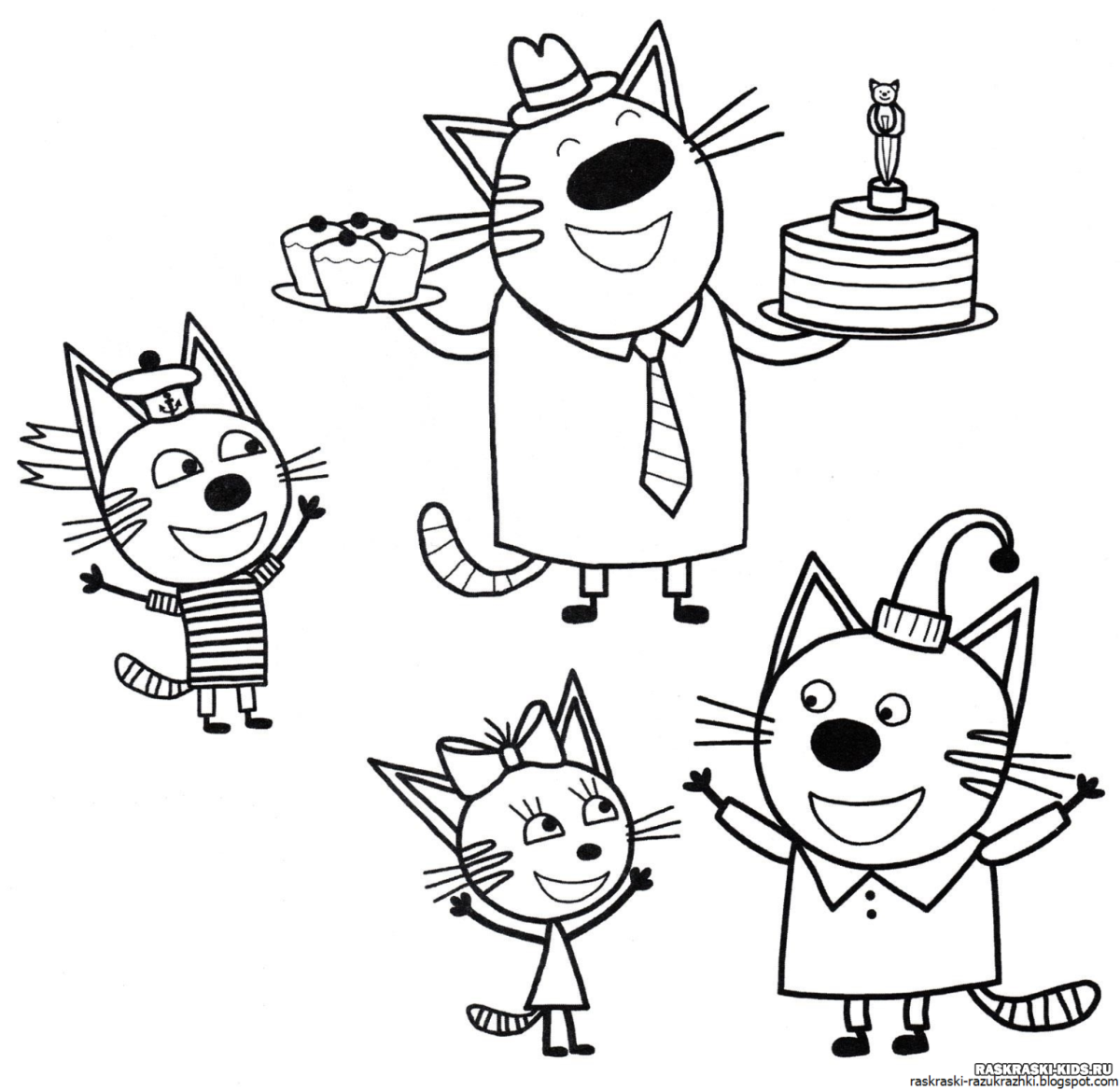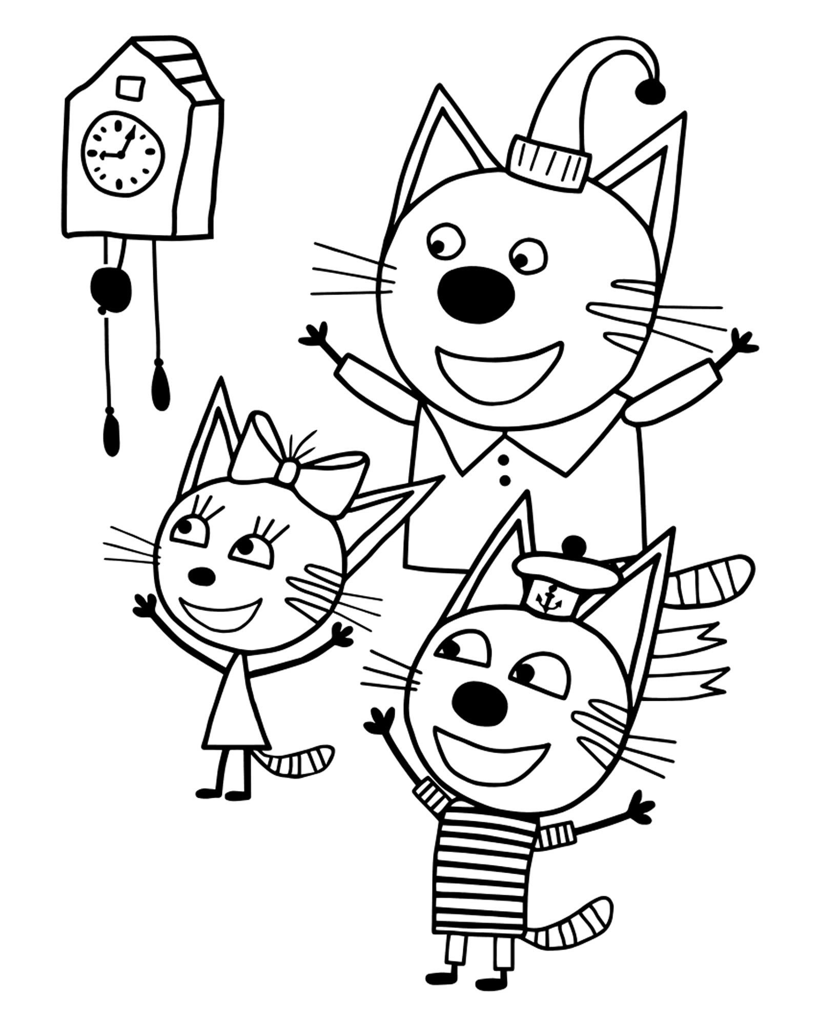 Три кота раскраска для детей