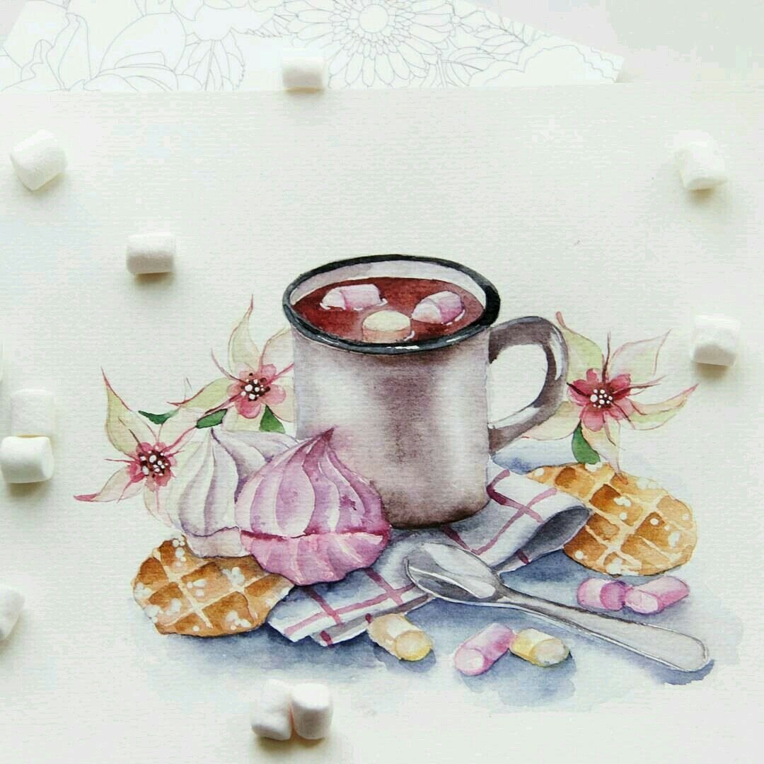 Зефирки рисунок акварелью