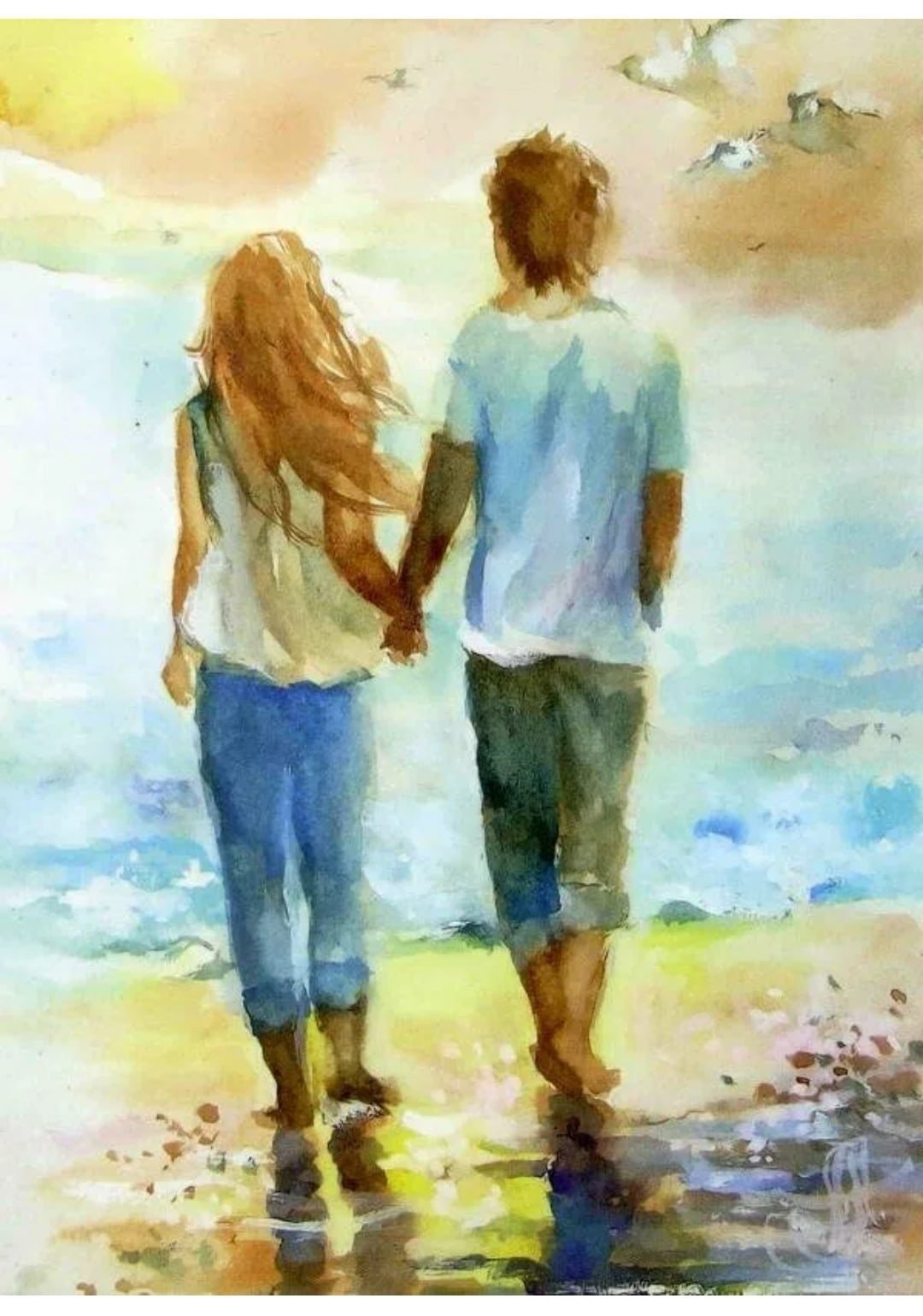 Влюбленные акварель