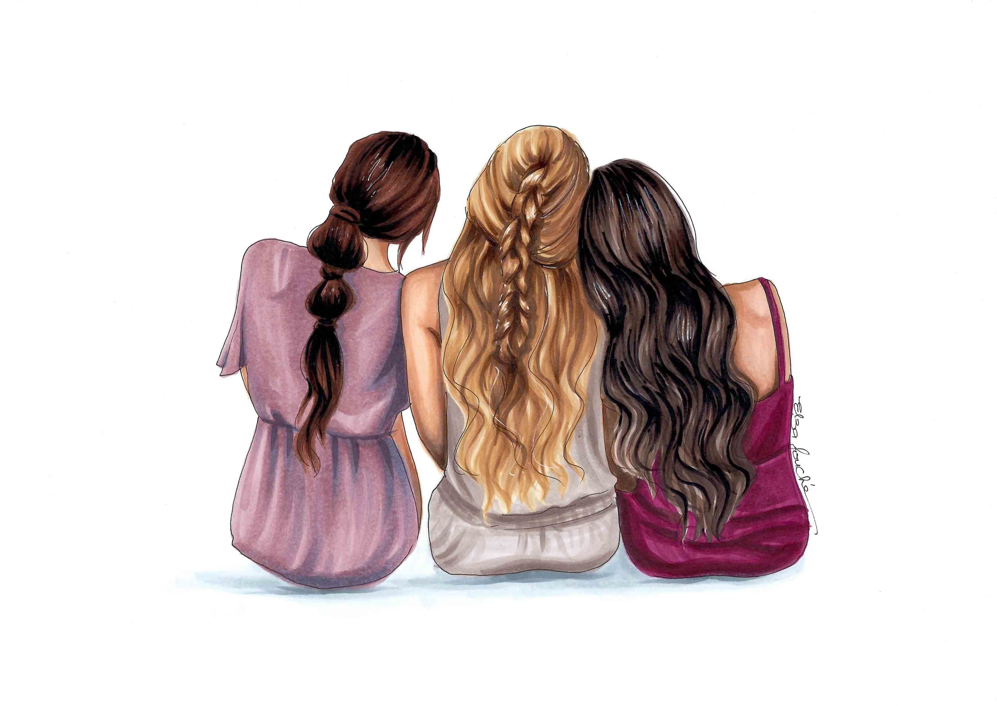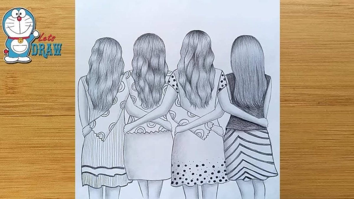 Рисунки для срисовки 3 подруги
