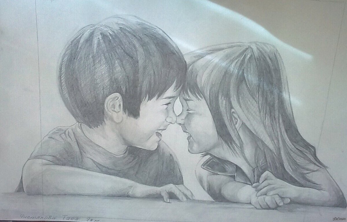 Мальчик и девочка рисунок карандашом