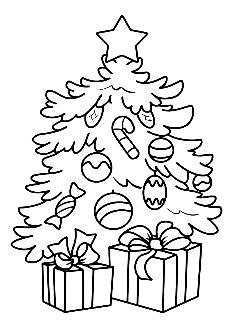Раскраска Новогодняя ёлка с подарками