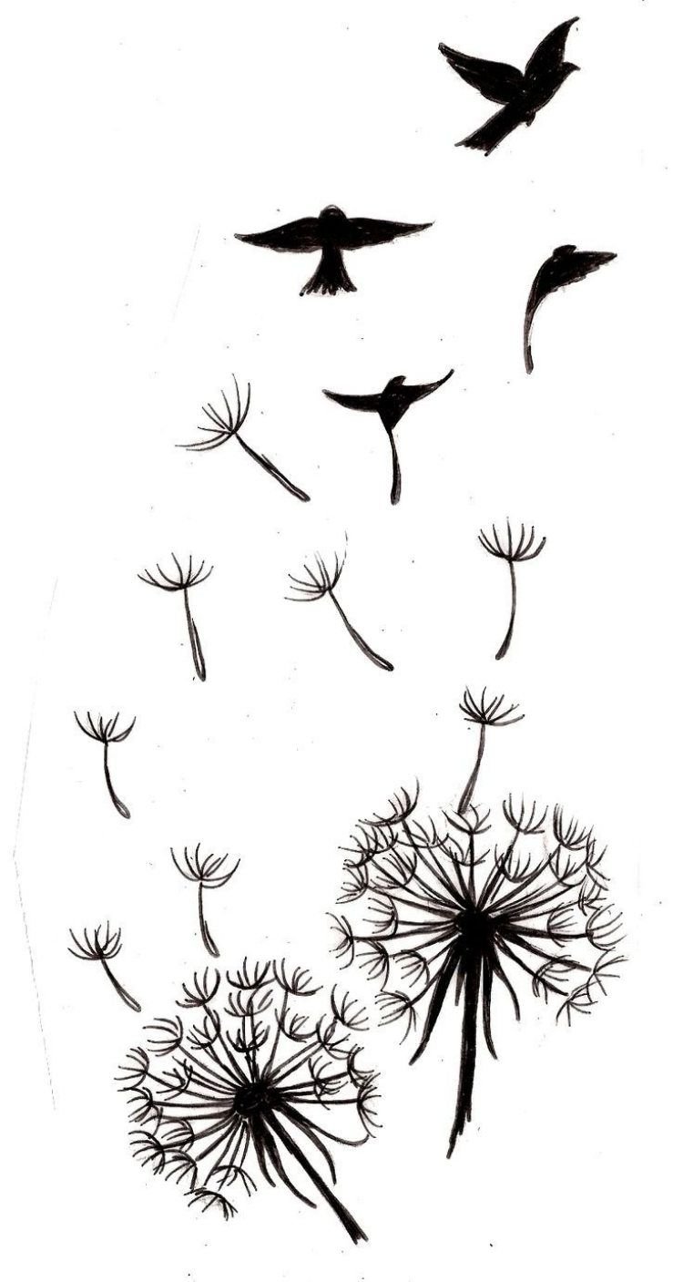 Тату эскиз одуванчик с птичками