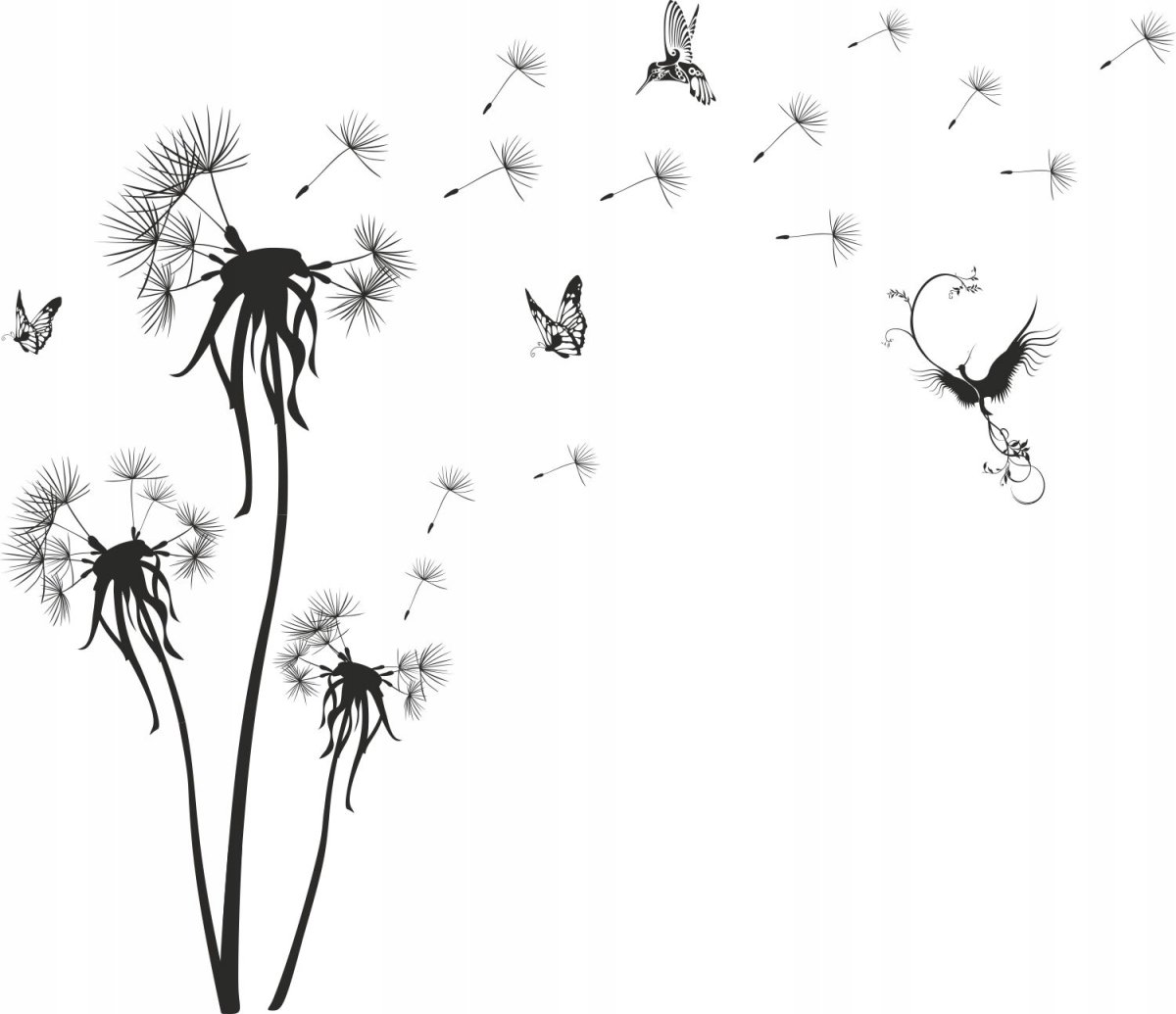 Эскиз тату одуванчик с птицами