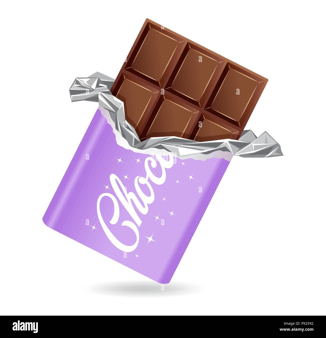 Плитка шоколада на белом фоне с оберткой