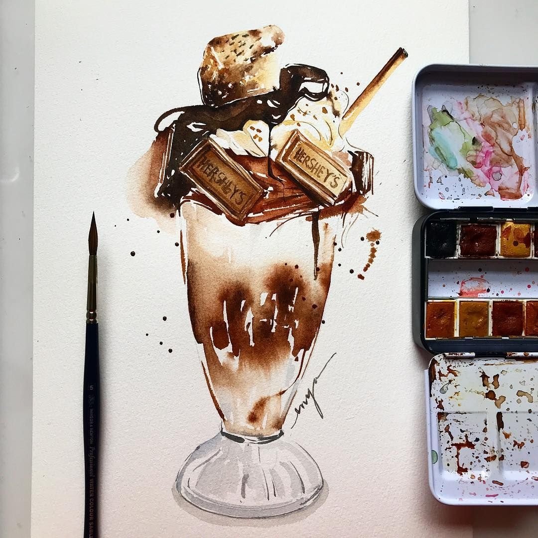 Шоколад рисунок акварелью