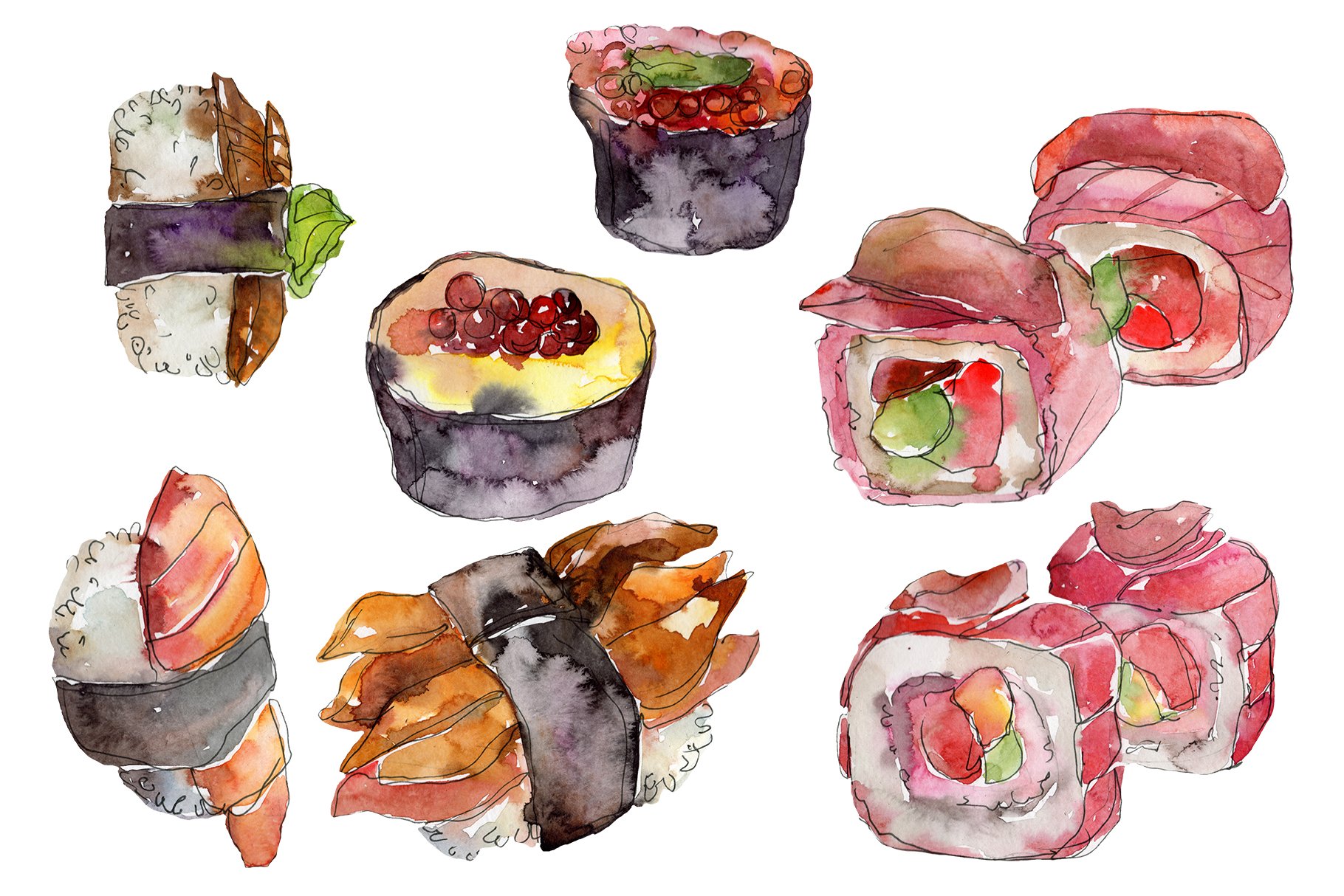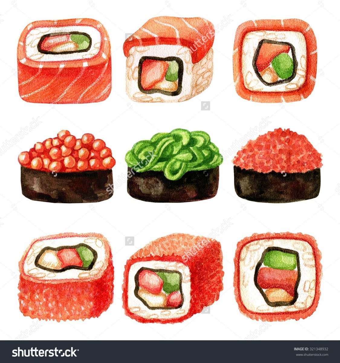 Суши роллы акварель