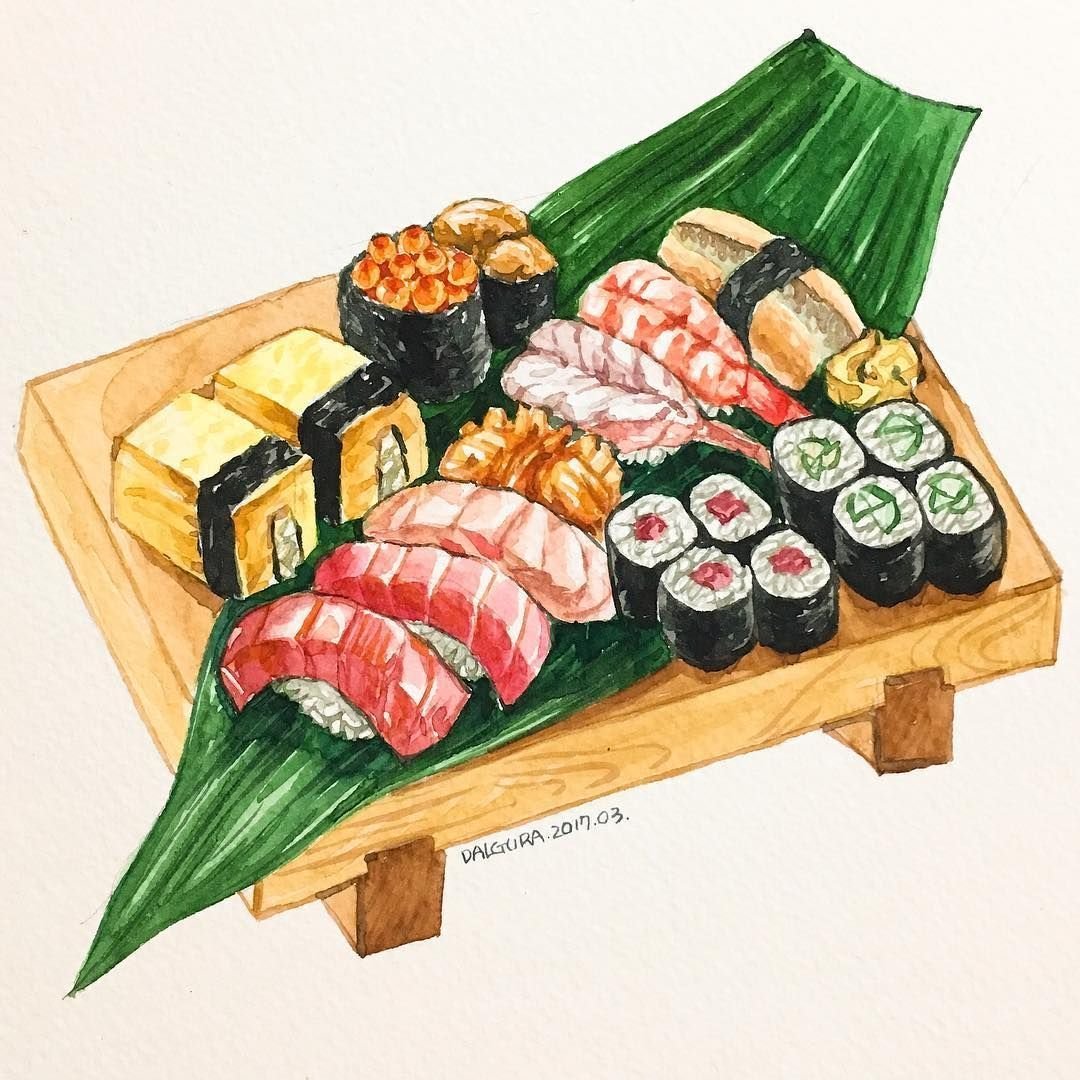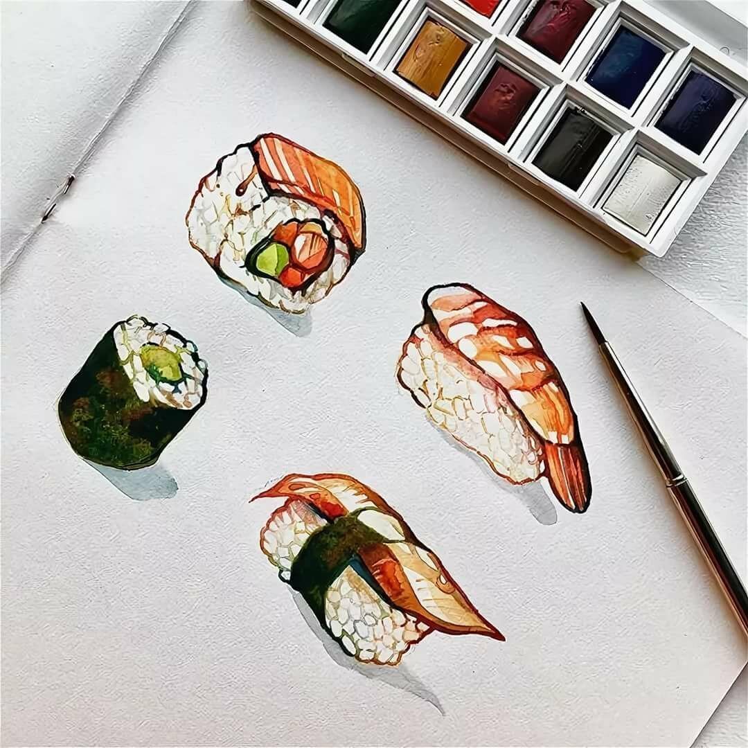 Суши акварель