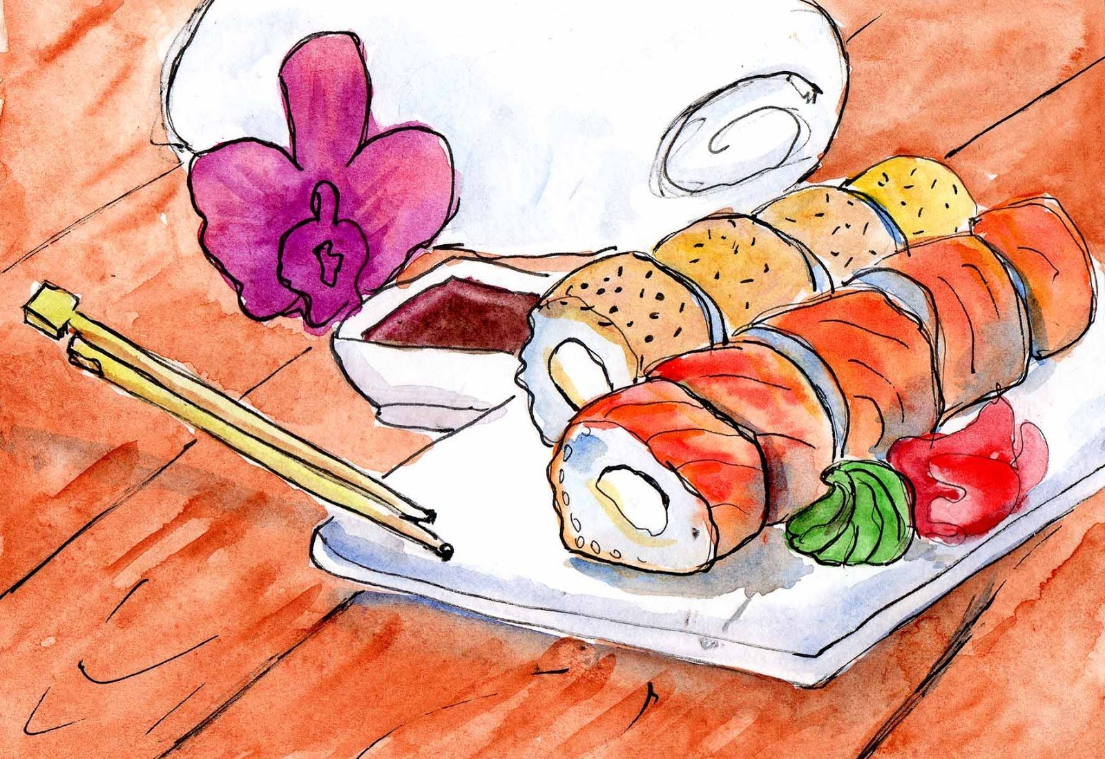 Скетч суши акварелью