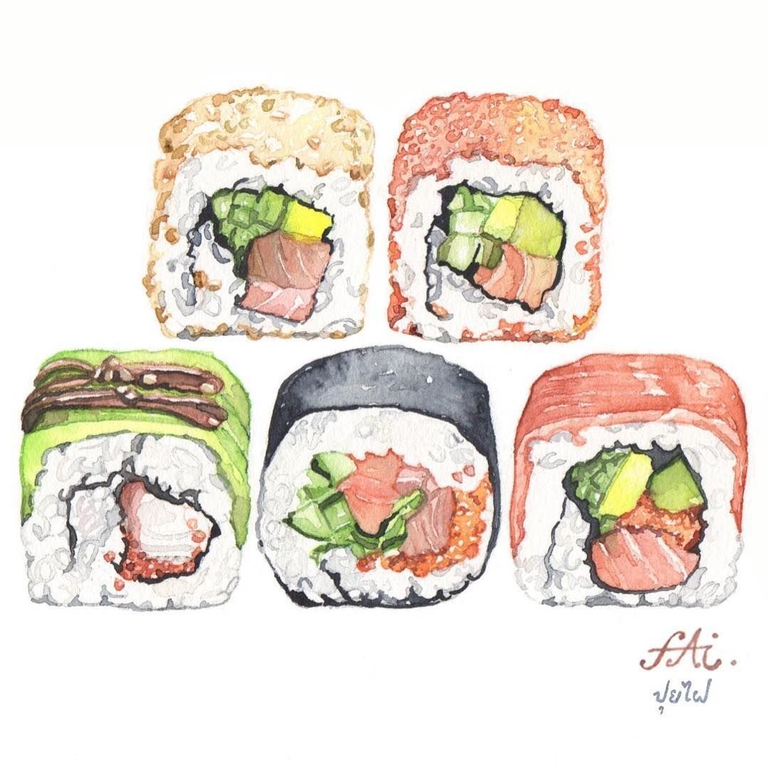 Рисунки суши и роллы прикольные