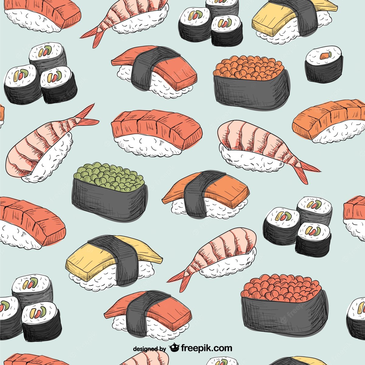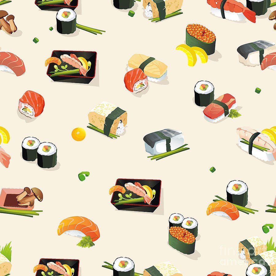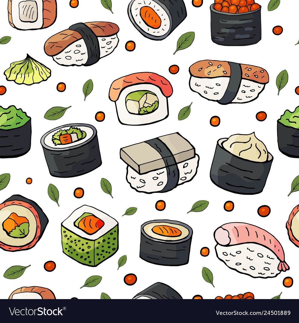 Роллы нарисованные на белом фоне